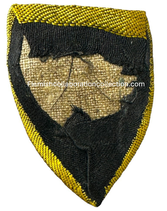 This type, along with the Legion shield, is among the most iconic insignia worn by Flemings within the Waffen-SS. It was worn by Flemish volunteers in the Langemarck Storm Brigade and Division. In a few rare photographs, this type of shield can also be seen worn by Flemish DRK nurses.