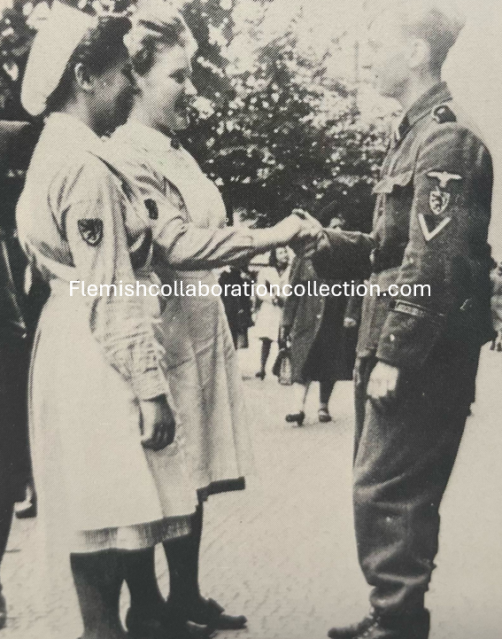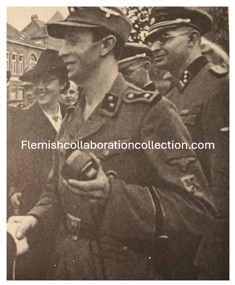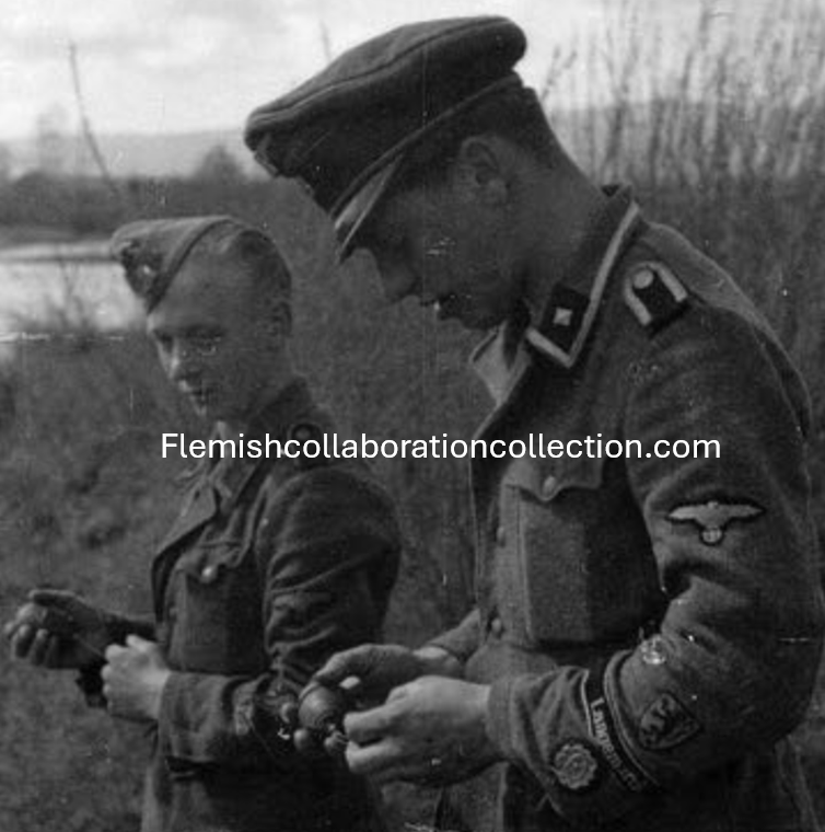 There is a well-known photograph showing this shield worn by a Fleming in the ‘Das Reich’ unit, but it is merely a wedding photograph. In practice, the Flemish lion shield was not permitted for Flemings serving in regular German Waffen-SS units.