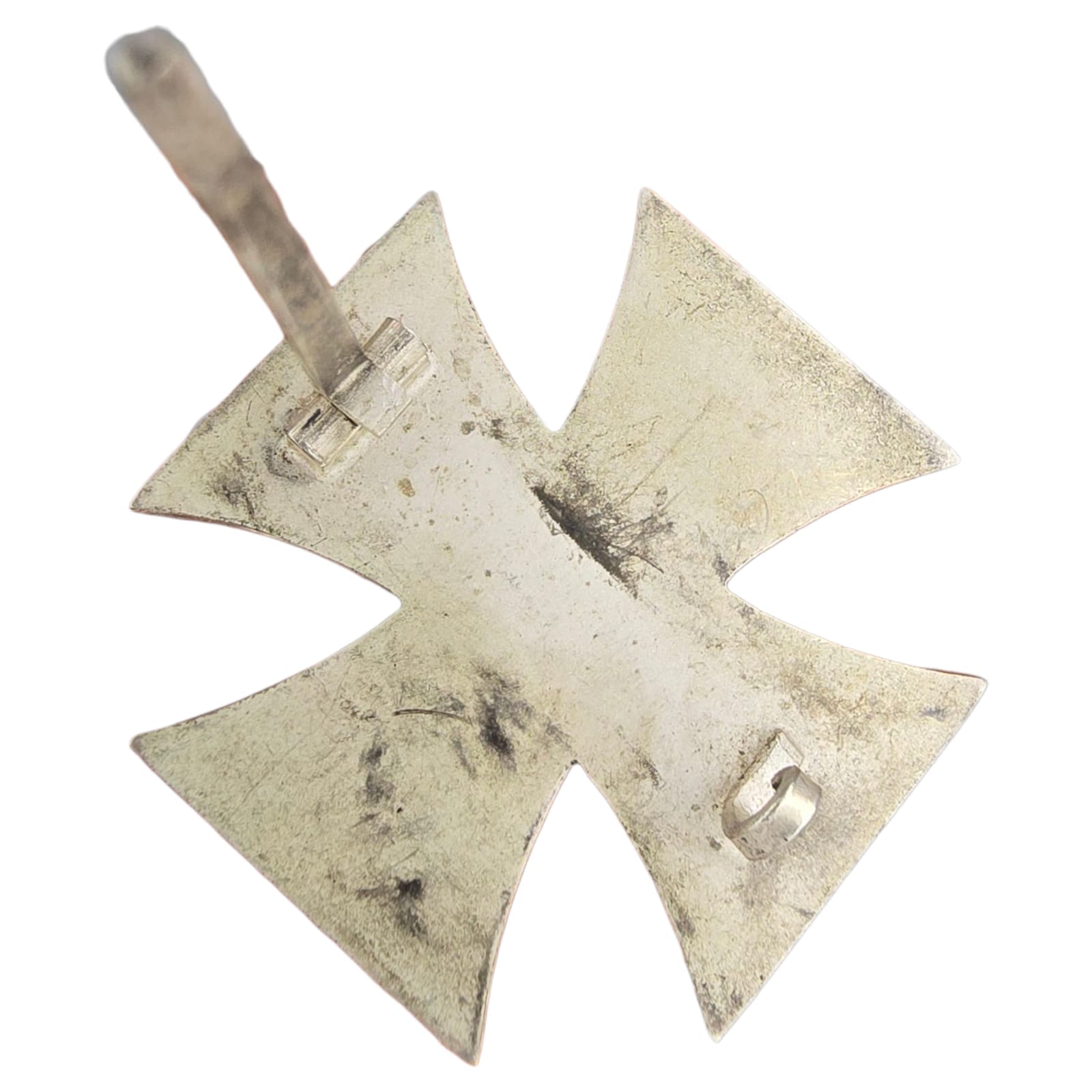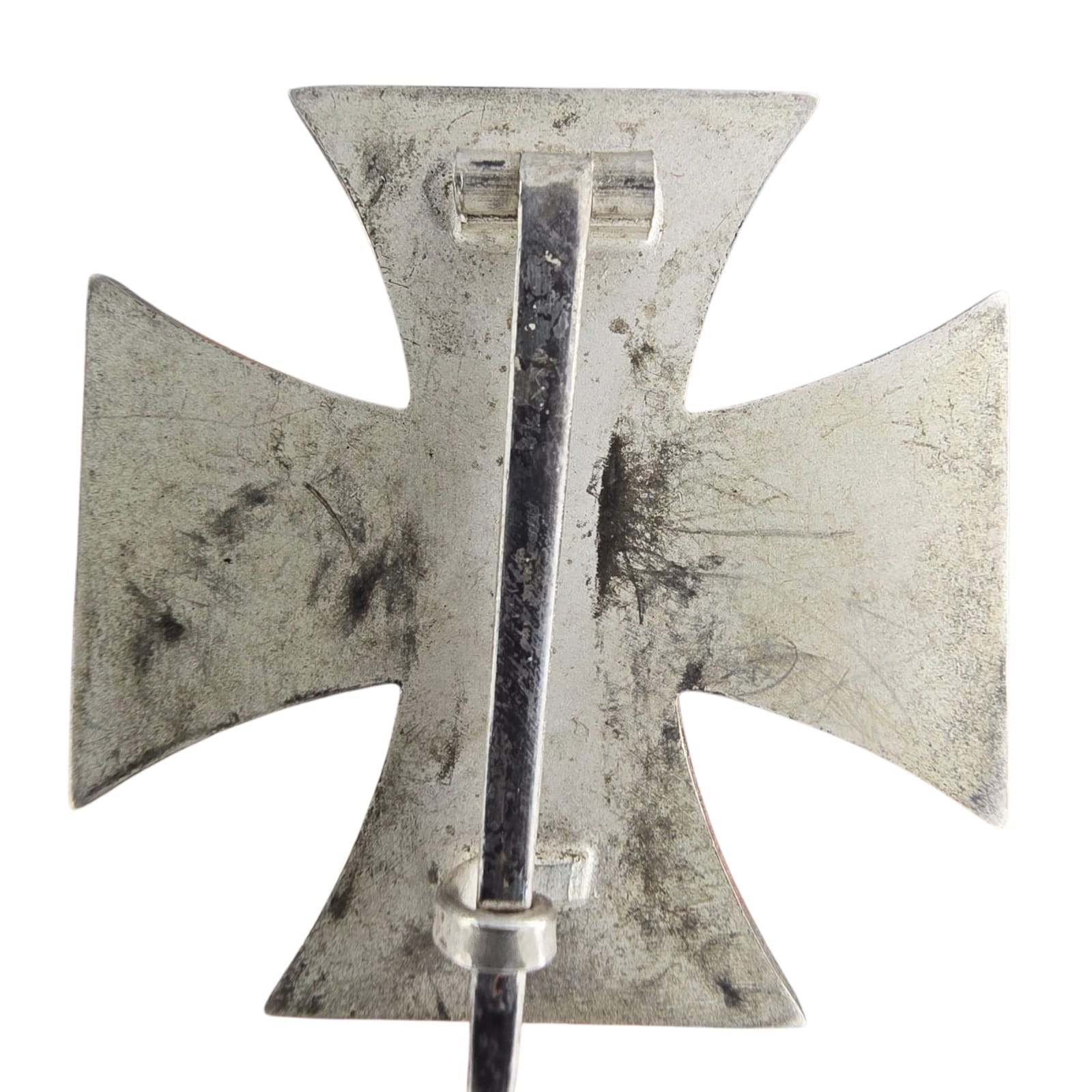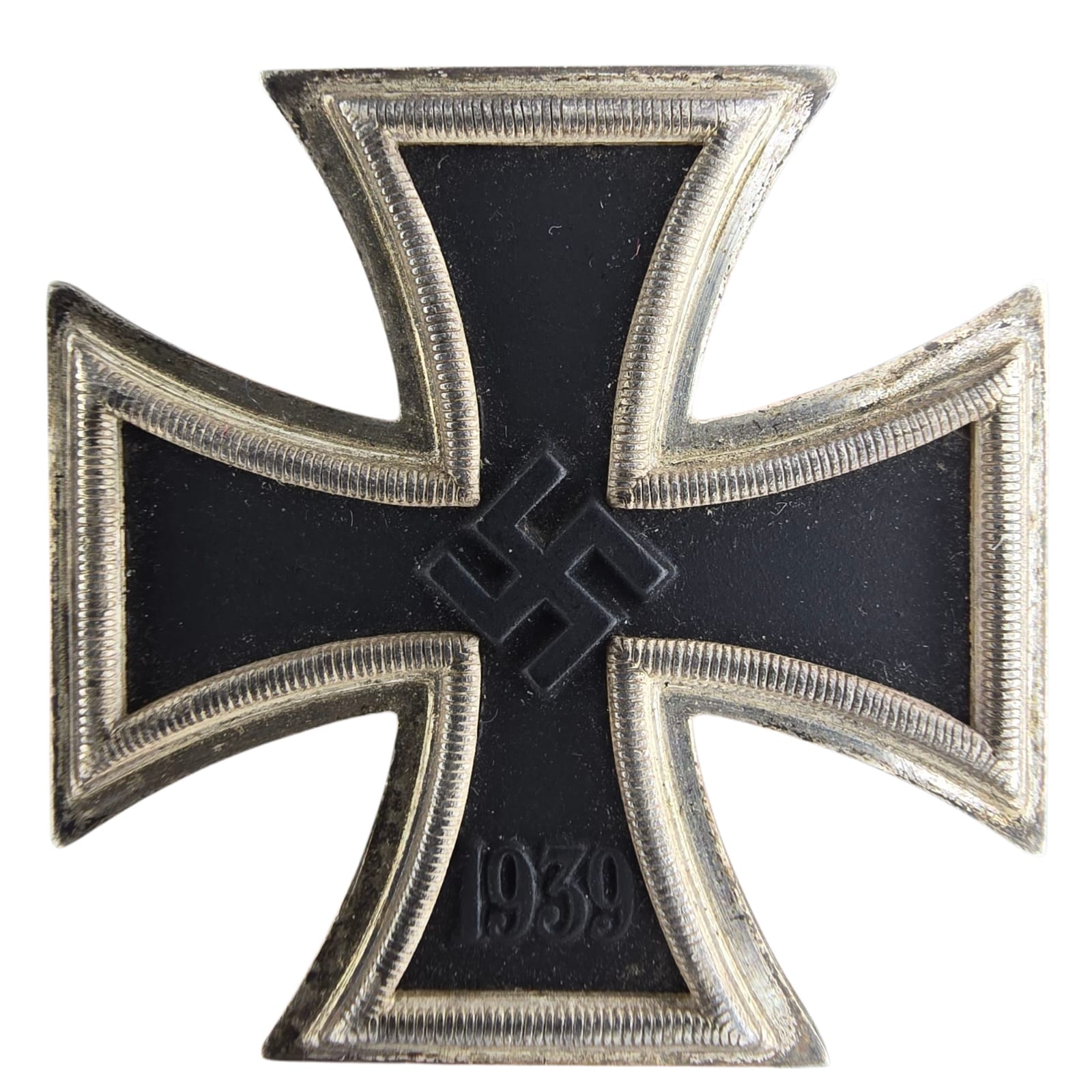 Item: De IJzeren Kruis Eerste Klasse, een militaire onderscheiding uit nazi-Duitsland tijdens de Tweede Wereldoorlog, werd toegekend voor uitzonderlijke moed of militaire prestaties. Het kruis heeft een herkenbaar ontwerp met een ijzeren kern, zilveren rand, een hakenkruis en het jaartal "1939". In tegenstelling tot de Tweede Klasse werd het direct op de linkerborst gedragen. Het was een prestigieuze decoratie die vaak eerst het verkrijgen van de Tweede Klasse vereiste.