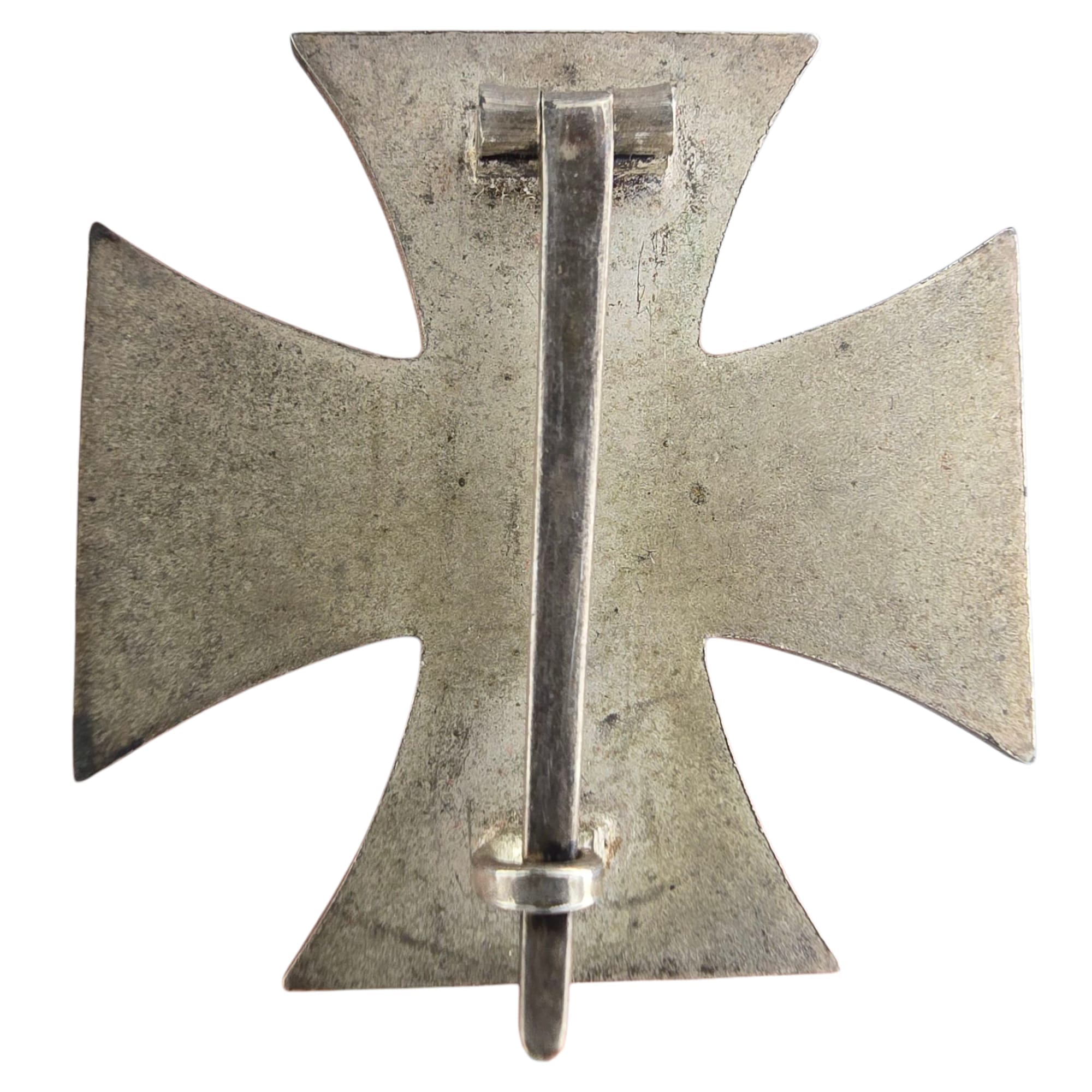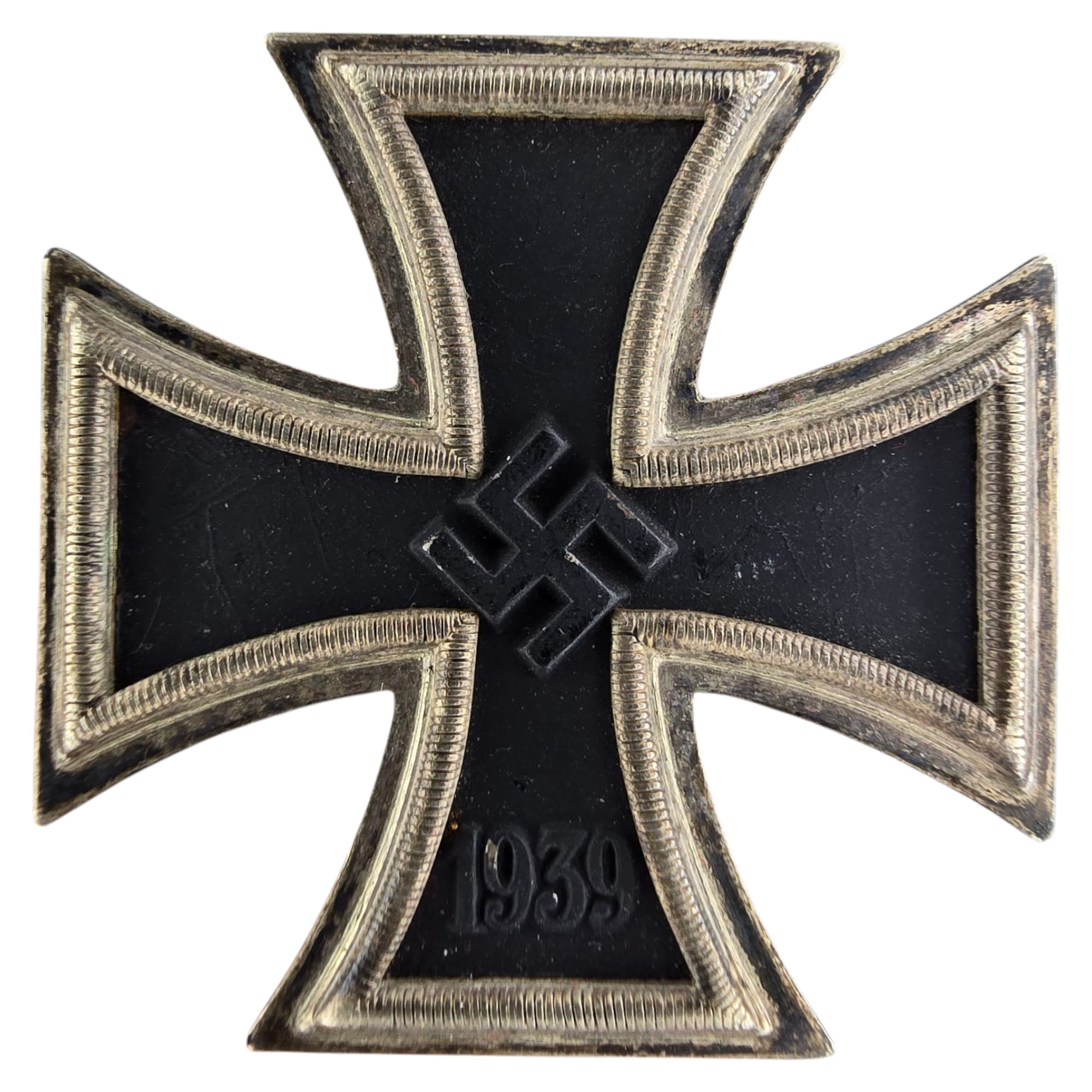 Item: De IJzeren Kruis Eerste Klasse, een militaire onderscheiding uit nazi-Duitsland tijdens de Tweede Wereldoorlog, werd toegekend voor uitzonderlijke moed of militaire prestaties. Het kruis heeft een herkenbaar ontwerp met een ijzeren kern, zilveren rand, een hakenkruis en het jaartal "1939". In tegenstelling tot de Tweede Klasse werd het direct op de linkerborst gedragen. Het was een prestigieuze decoratie die vaak eerst het verkrijgen van de Tweede Klasse vereiste.