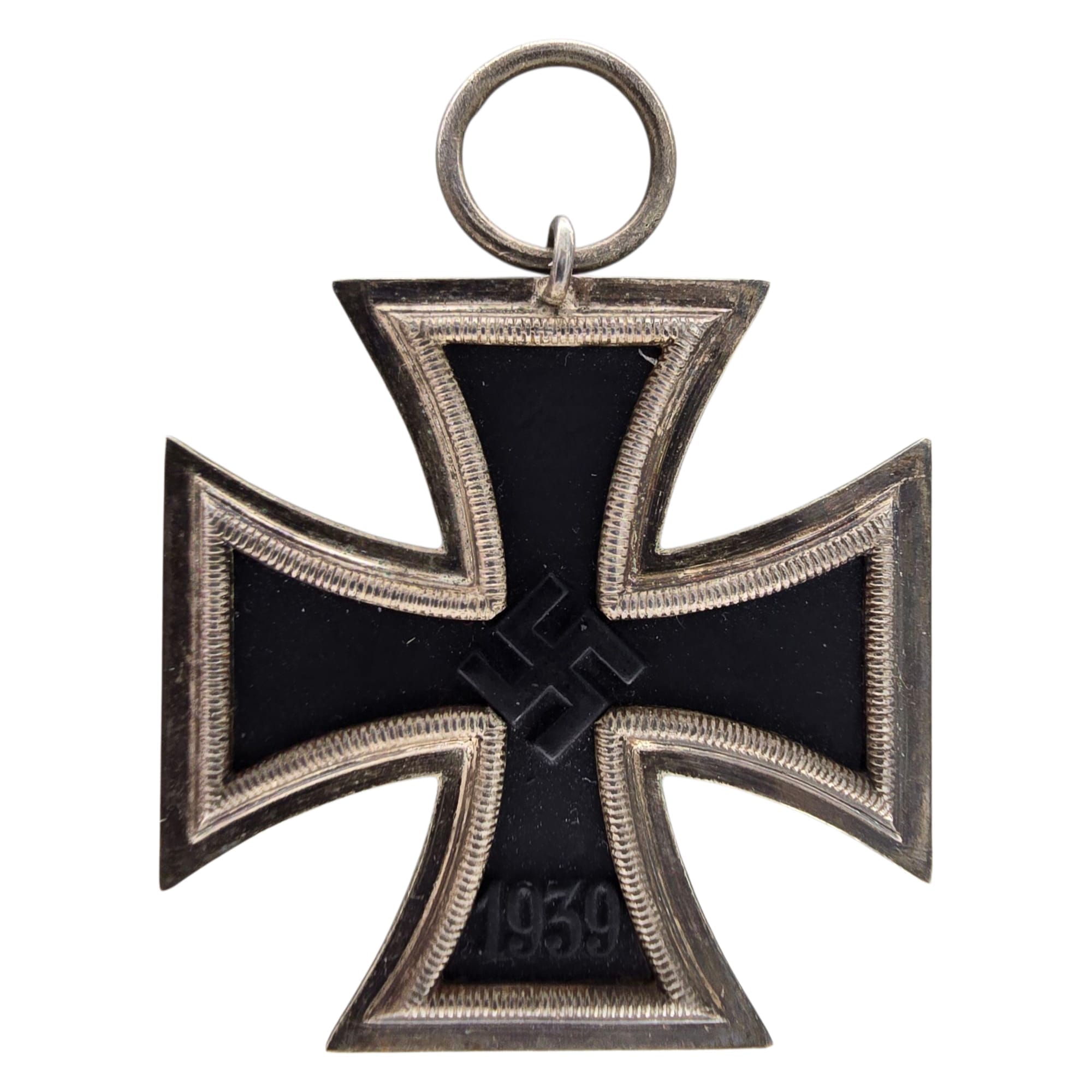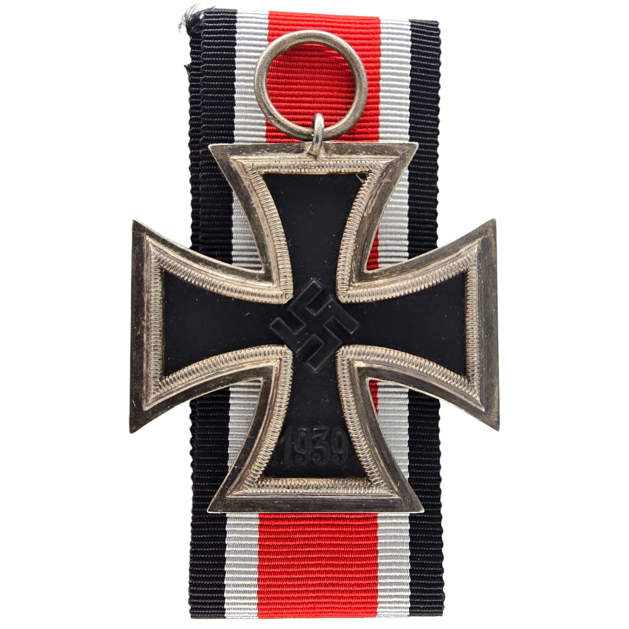 Item: IJzeren Kruis tweede klasse – Maker gemarkeerd met "138" Louis Gottlieb & Söhne met lint. Op 1 september 1939 voerde Hitler het IJzeren Kruis opnieuw in (voor de eerste keer in 1813). Het 2e klasse kruis was bedoeld voor personeel dat tijdens een gevecht ook maar één daad van moed had verricht.