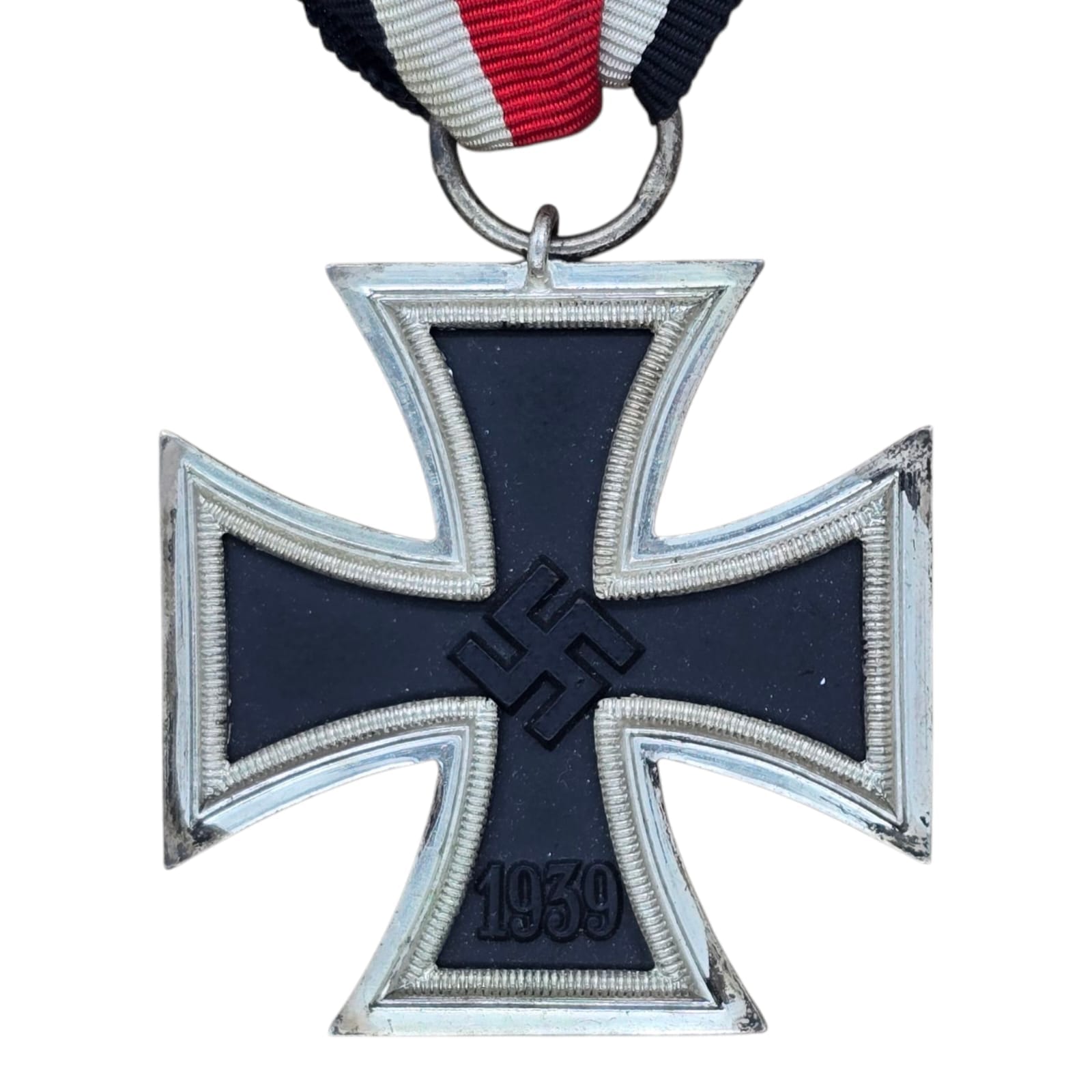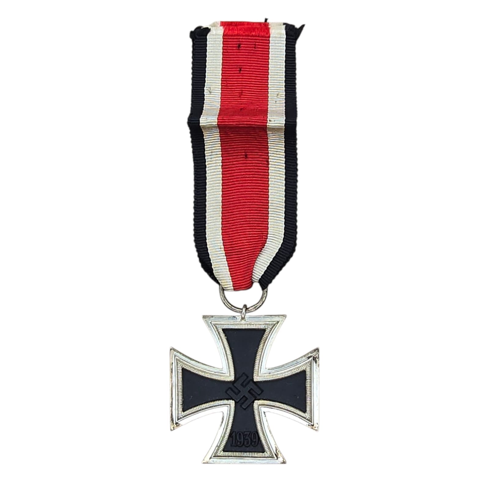 Item: IJzeren Kruis tweede klasse – ongemarkeerde Steinhauer & Lück met lint. Op 1 september 1939 voerde Hitler het IJzeren Kruis opnieuw in (voor de eerste keer in 1813). Het 2e klasse kruis was bedoeld voor personeel dat tijdens een gevecht ook maar één daad van moed had verricht.