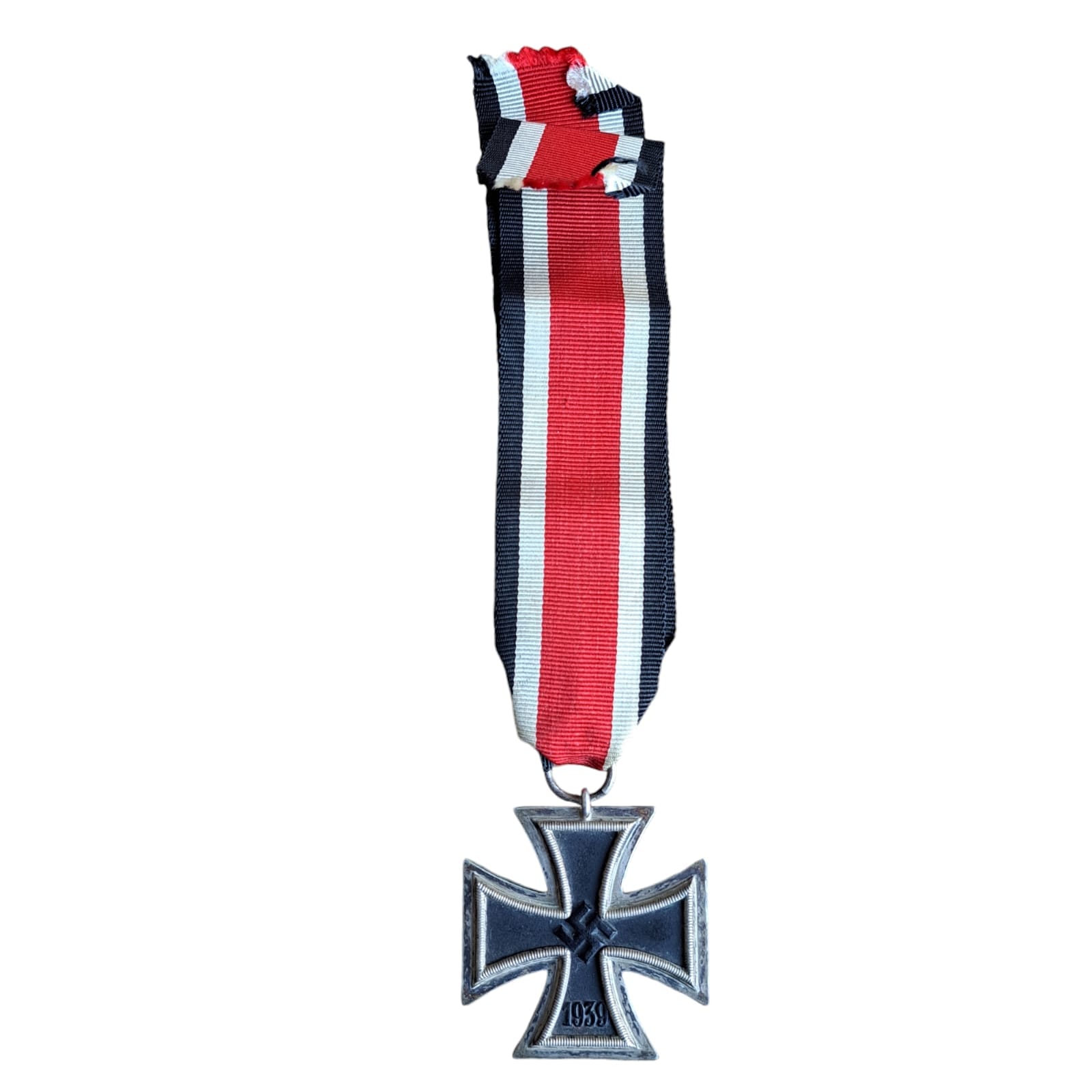 Item: IJzeren Kruis tweede klasse – ongemarkeerde Steinhauer & Lück met lint. Op 1 september 1939 voerde Hitler het IJzeren Kruis opnieuw in (voor de eerste keer in 1813). Het 2e klasse kruis was bedoeld voor personeel dat tijdens een gevecht ook maar één daad van moed had verricht.