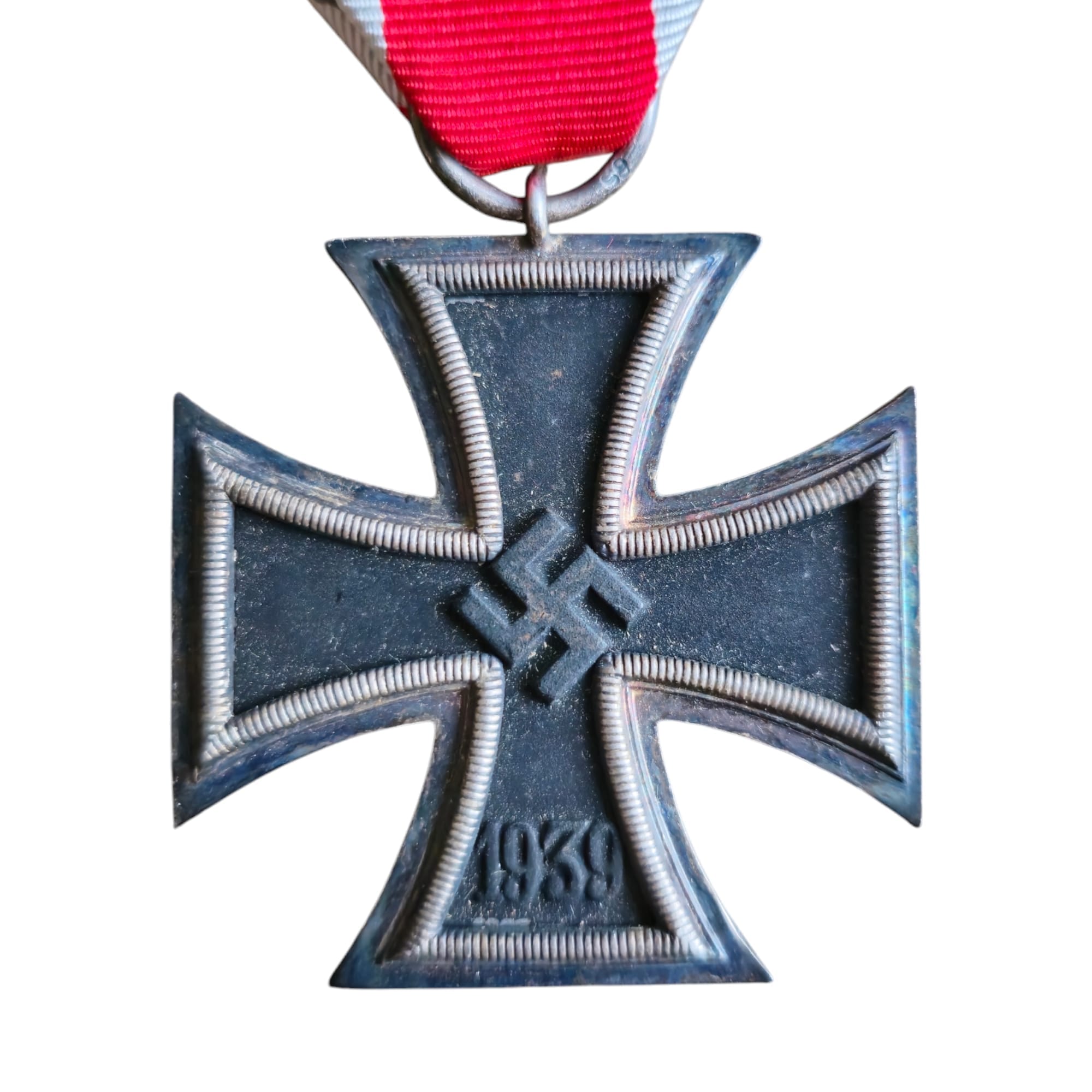 Item: IJzeren Kruis Tweede Klasse – gemarkeerd exemplaar van Klein Und Quenzer met lint en gemarkeerd etui. Op 1 september 1939 herintroduceerde Hitler het IJzeren Kruis (voor het eerst ingesteld in 1813). Het Kruis Tweede Klasse werd toegekend aan personeel dat een enkele daad van moed in gevecht had verricht.