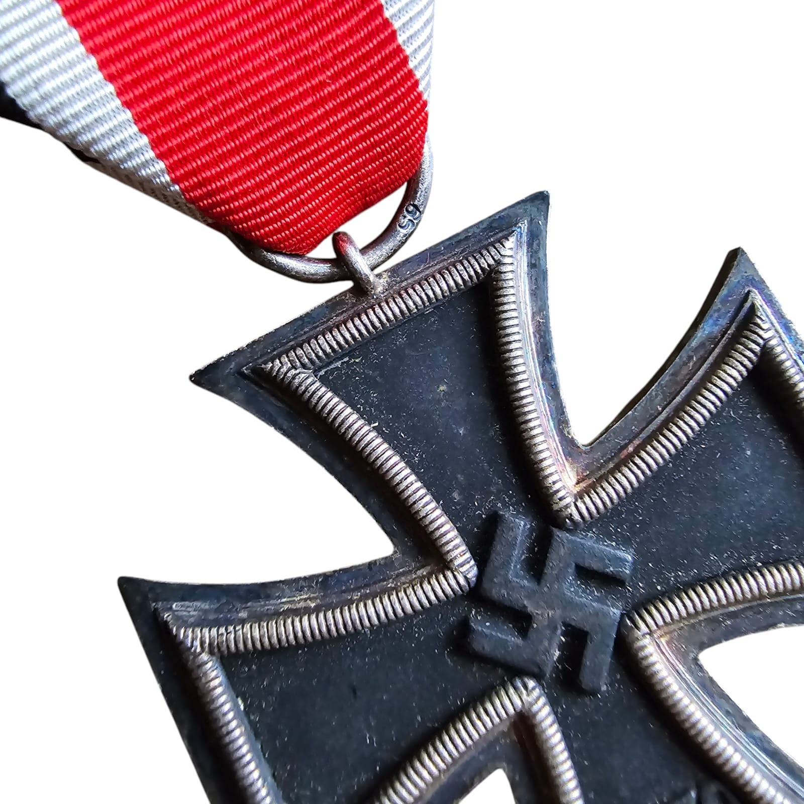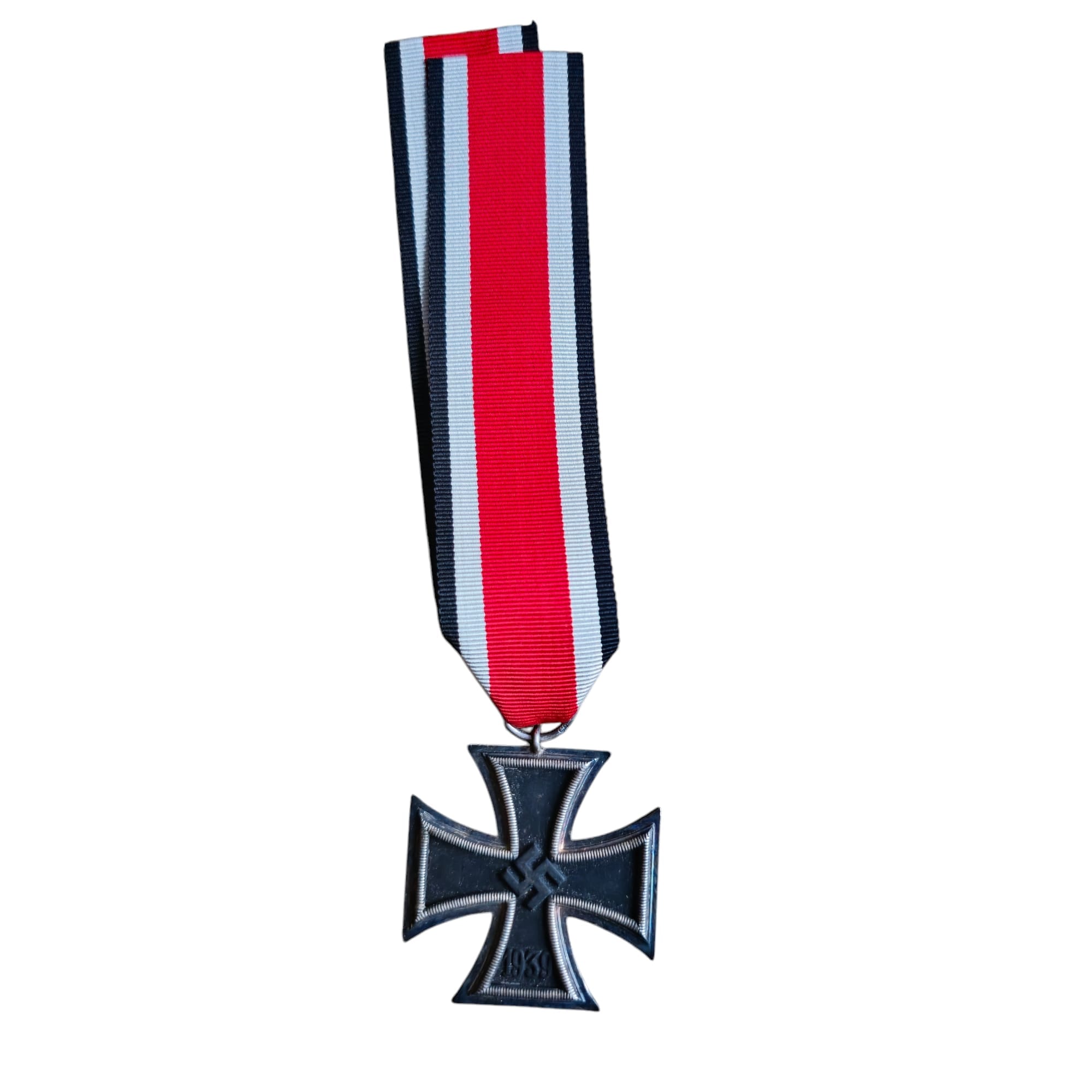 Item: Iron Cross Second Class – maker marked example Klein Und Quenzer with ribbon and maker marked pouch. On the 1st of September 1939 Hitler reinstituted the Iron Cross (First time in 1813). The 2nd class cross was for award to personnel who performed a single act of bravery in combat.