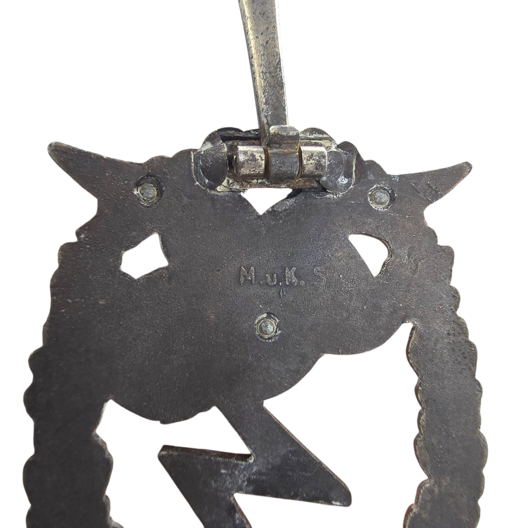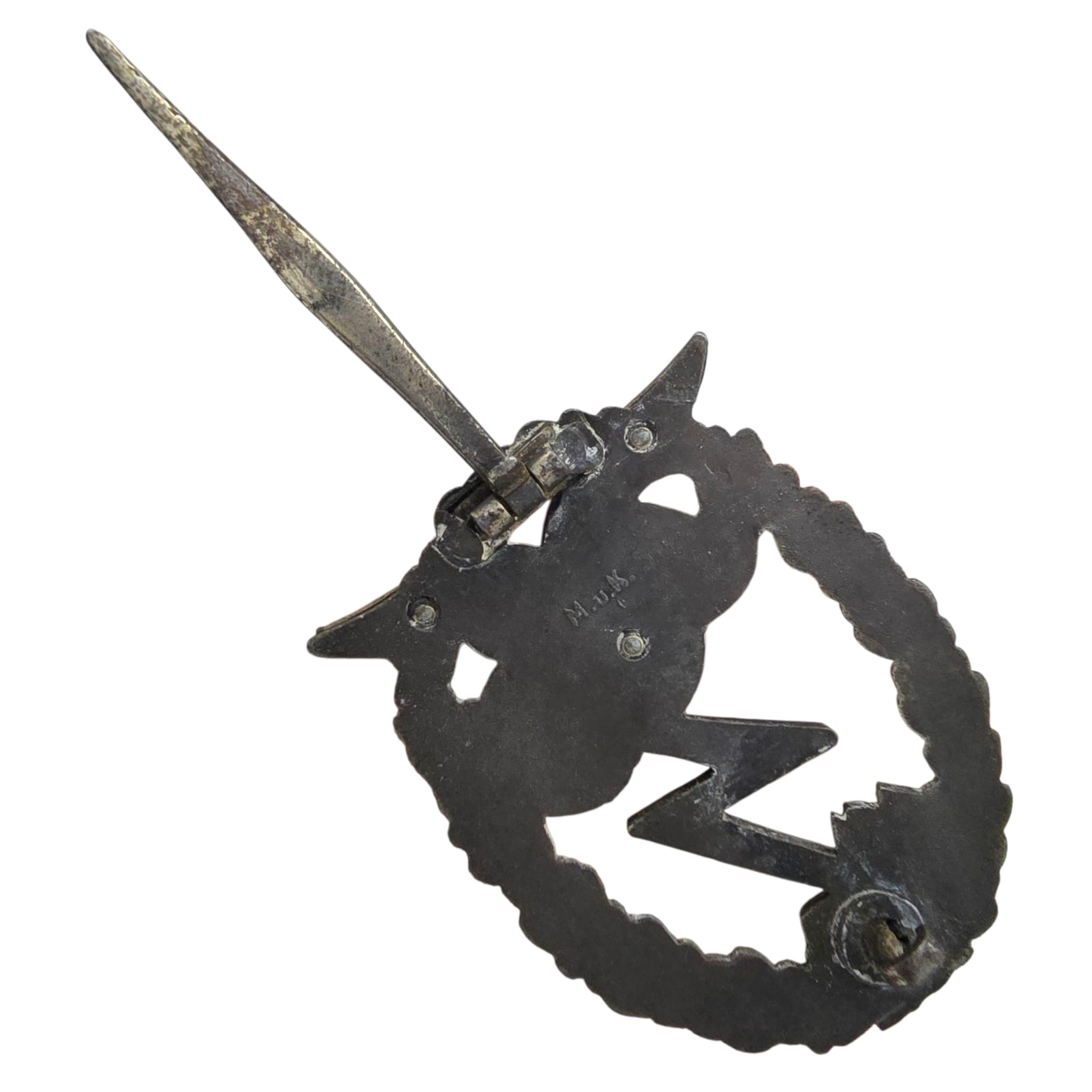 Condition: in good condition. no damages or repairs, Mid to late war two piece construction ‘Erdkampfabzeichen’ with riveted zinc eagle and M.u.K. 5 makers mark. very hard piece to come by!