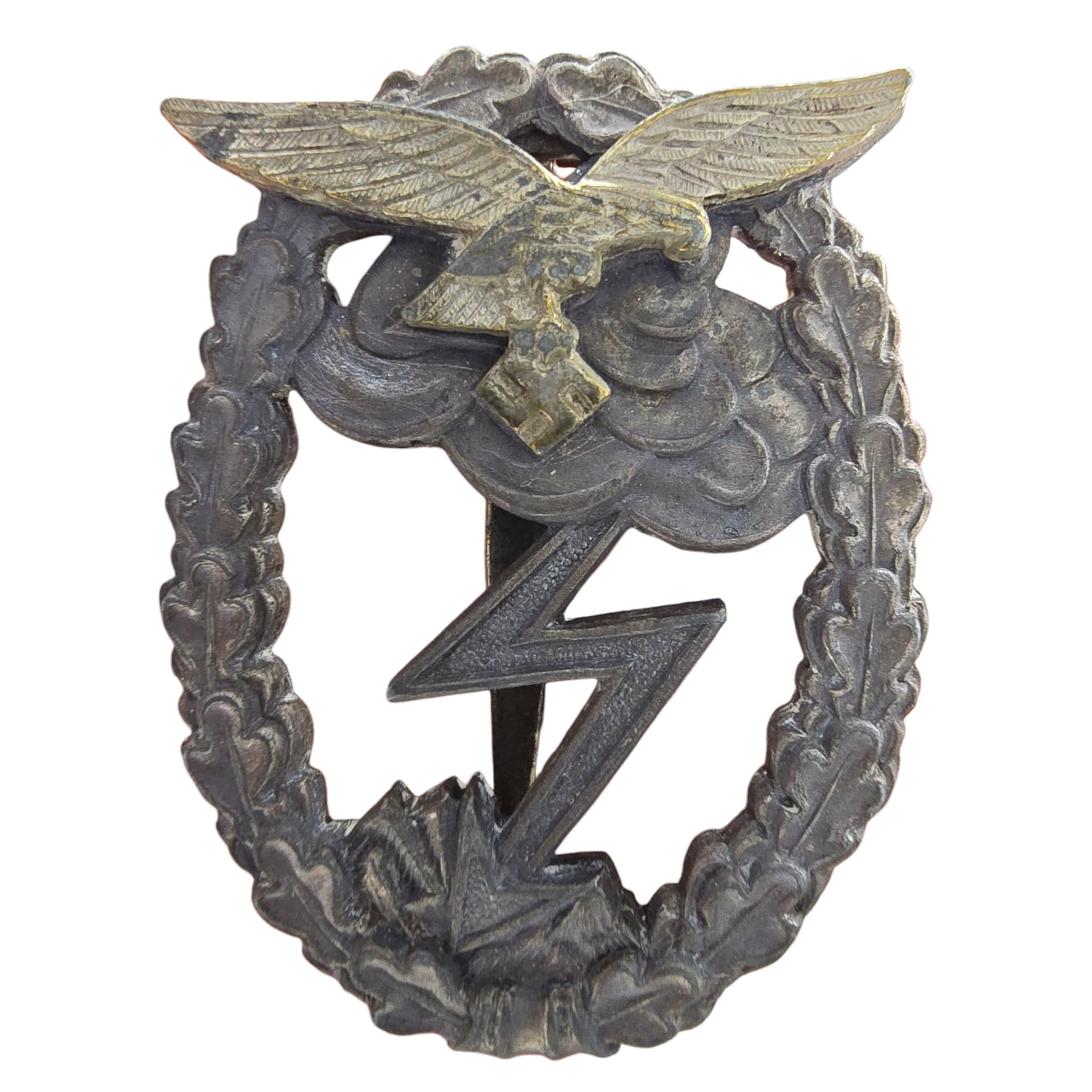 Item: Het Luftwaffe Grondenstrijdkrachteninsigne (Luftwaffe Ground Combat Badge) werd ingesteld op 31 maart 1942 door de opperbevelhebber van de Luftwaffe, Hermann Göring, en werd uitgereikt aan Luftwaffe-personeel dat zich had onderscheiden door "uitstekende gevechtsprestaties" bij gevechten op de grond — vergelijkbaar met het Infanterie-Sturmabzeichen van het leger.