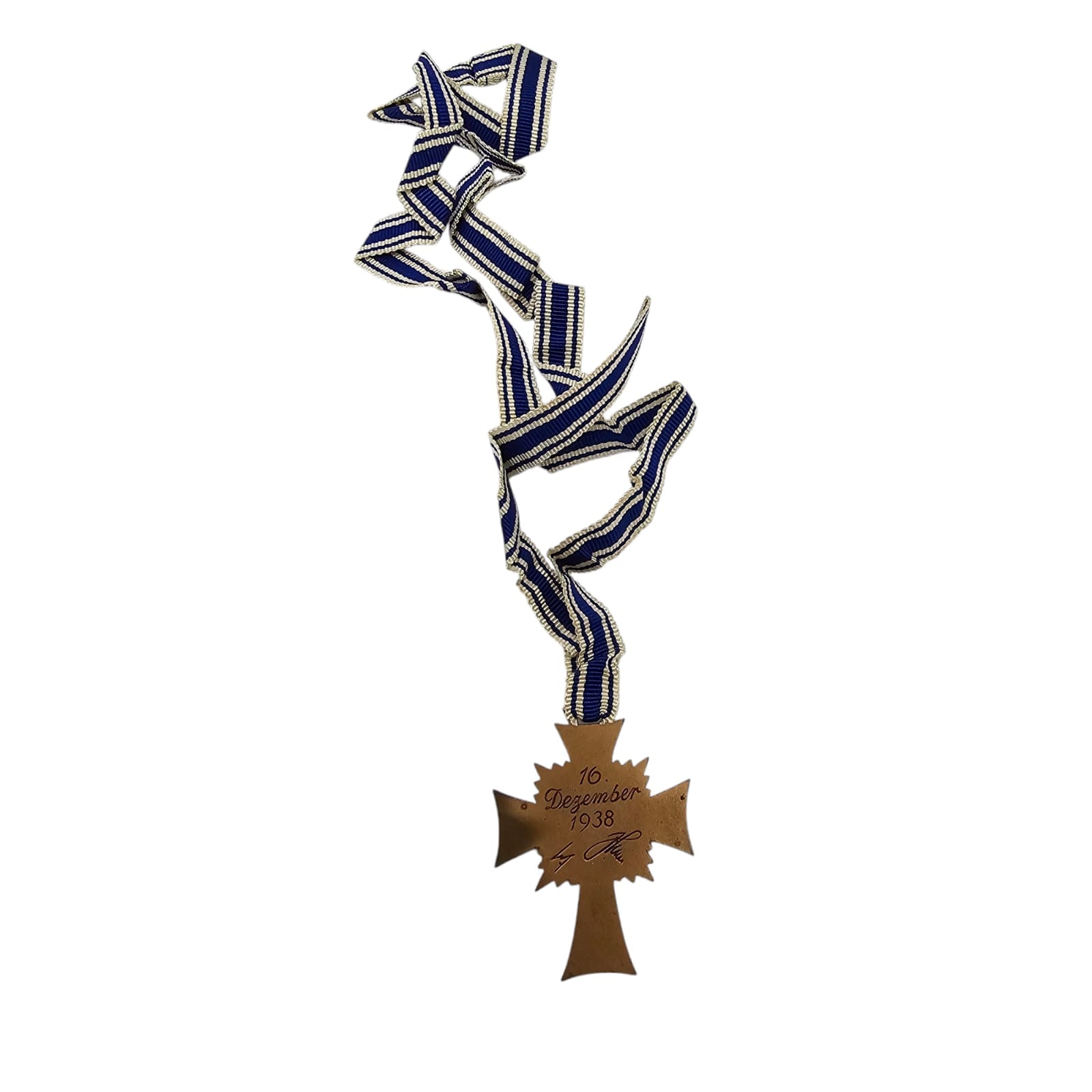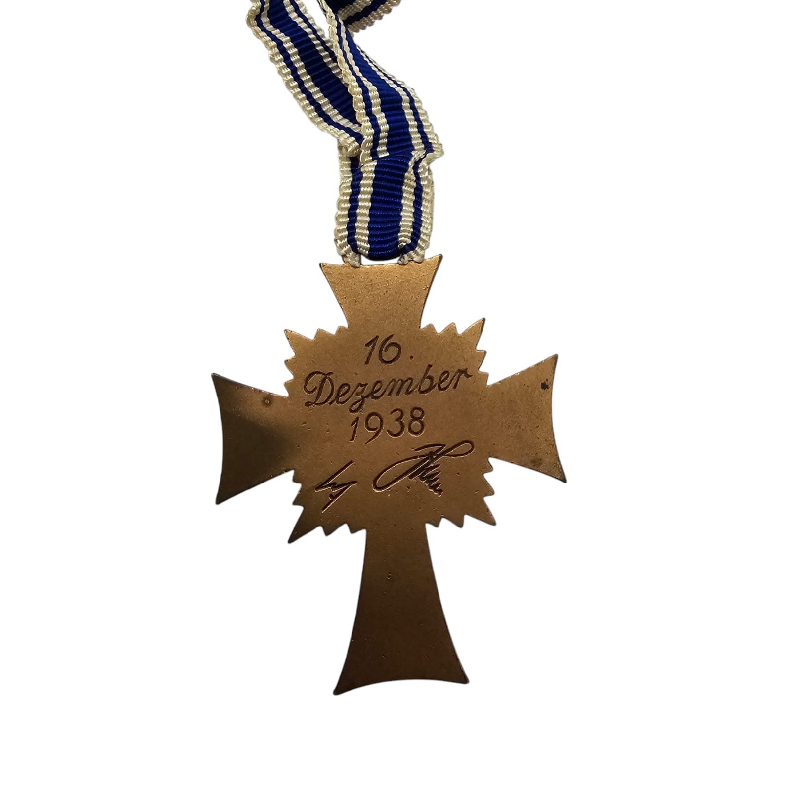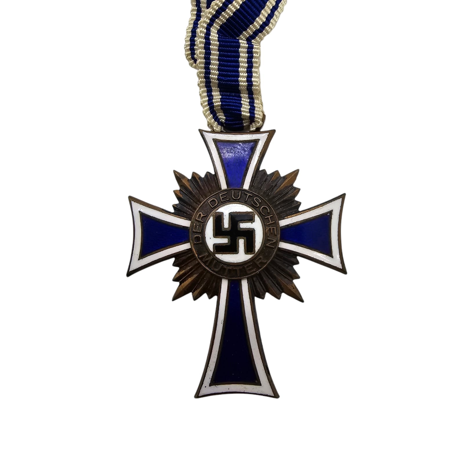 Item: The Cross of Honour of the German Mother (German: Ehrenkreuz der Deutschen Mutter), referred to colloquially as the Mutterehrenkreuz (Mother’s Cross of Honour) or simply Mutterkreuz (Mother’s Cross), was a state decoration conferred by the government of the German Reich to honour a Reichsdeutsche German mother for exceptional merit to the German nation. Eligibility later extended to include Volksdeutsche (ethnic German) mothers from, for example, Austria and Sudetenland, that had earlier been incorporated into the German Reich.