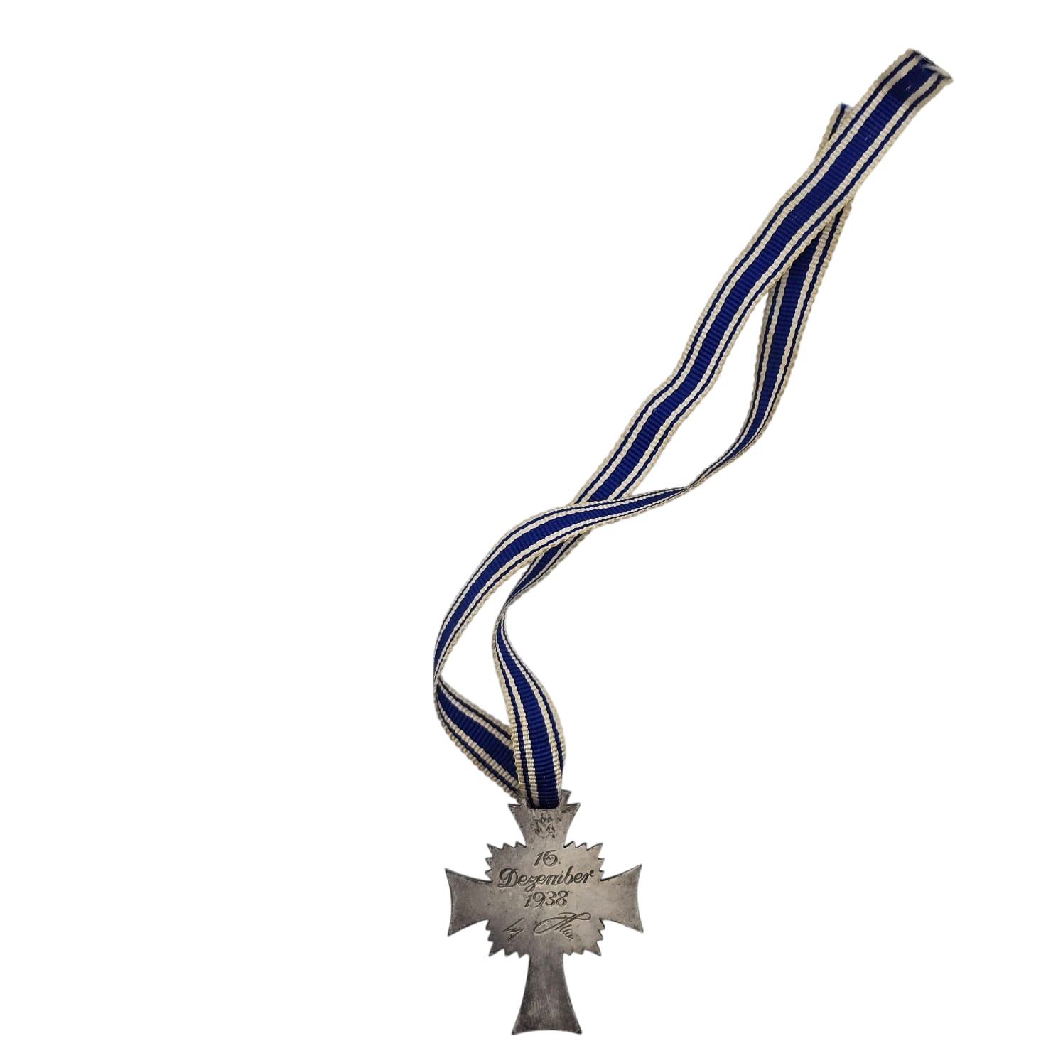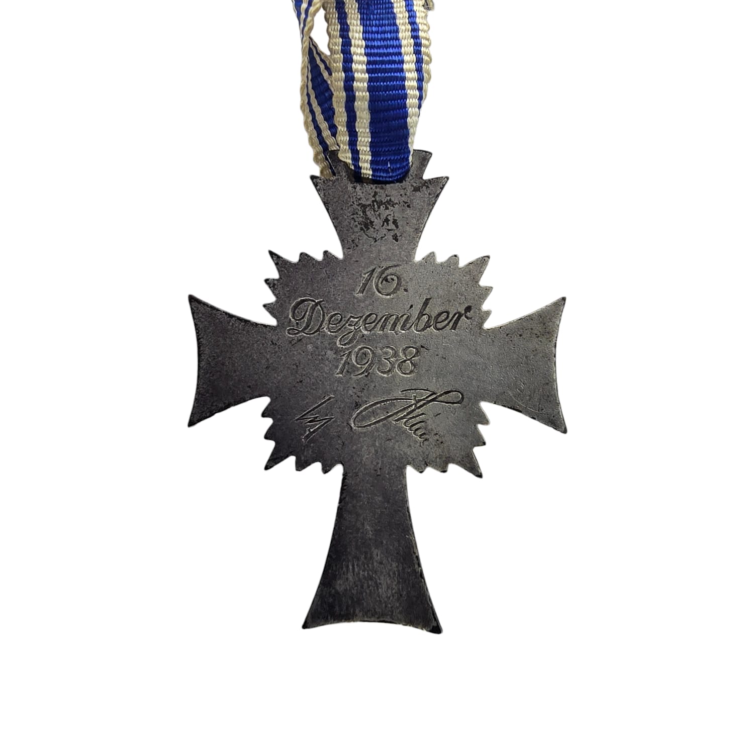 Item: The Cross of Honour of the German Mother (German: Ehrenkreuz der Deutschen Mutter), referred to colloquially as the Mutterehrenkreuz (Mother’s Cross of Honour) or simply Mutterkreuz (Mother’s Cross), was a state decoration conferred by the government of the German Reich to honour a Reichsdeutsche German mother for exceptional merit to the German nation. Eligibility later extended to include Volksdeutsche (ethnic German) mothers from, for example, Austria and Sudetenland, that had earlier been incorporated into the German Reich.