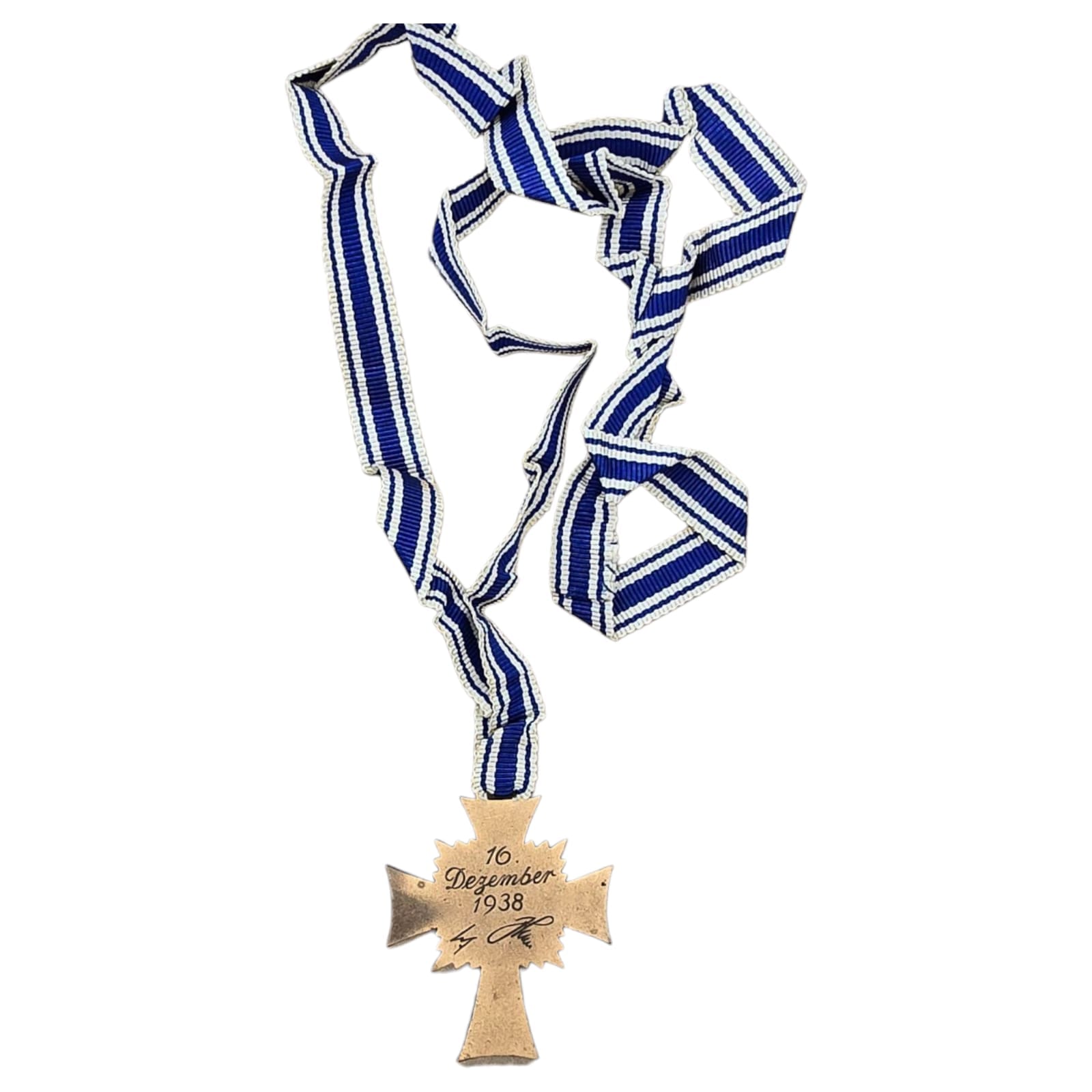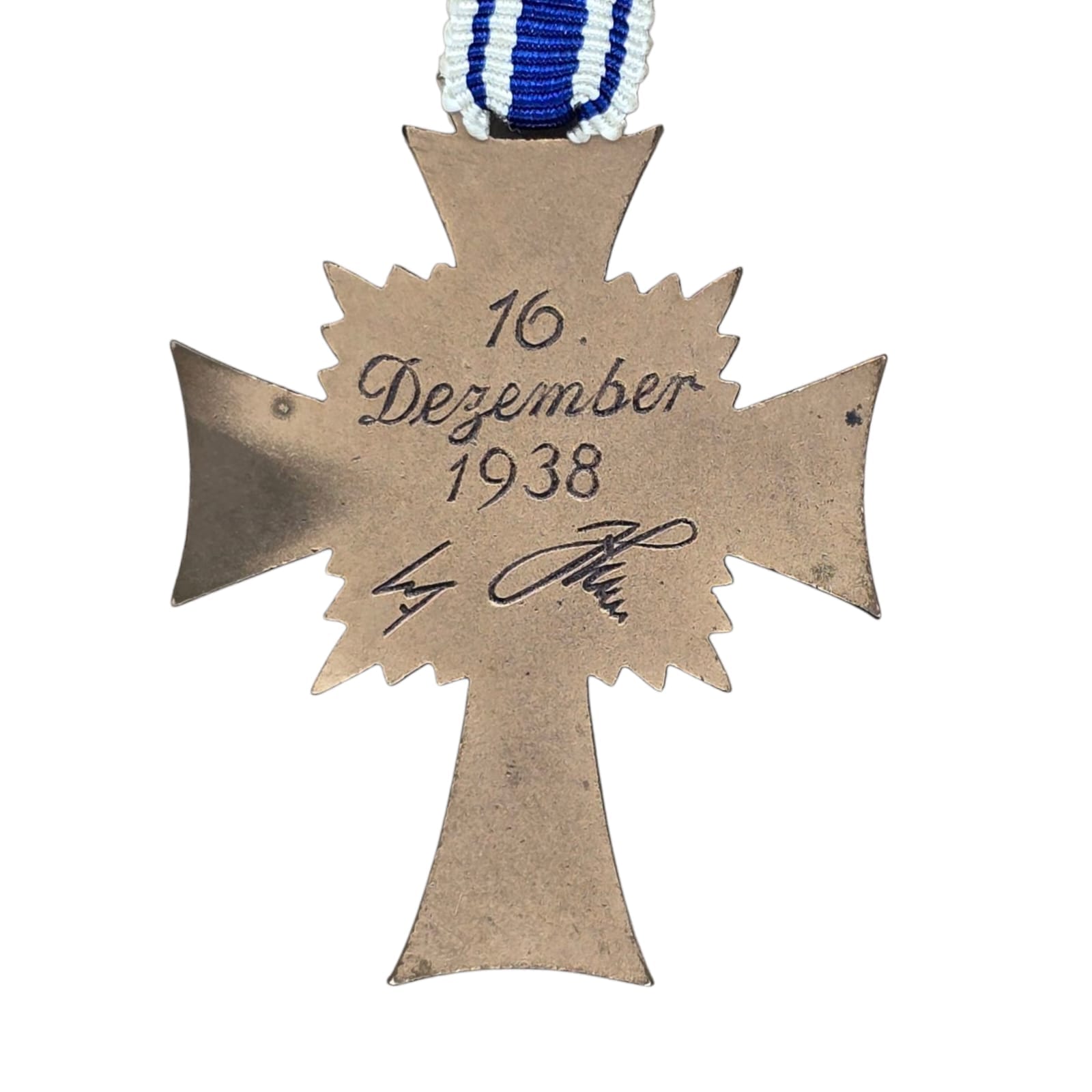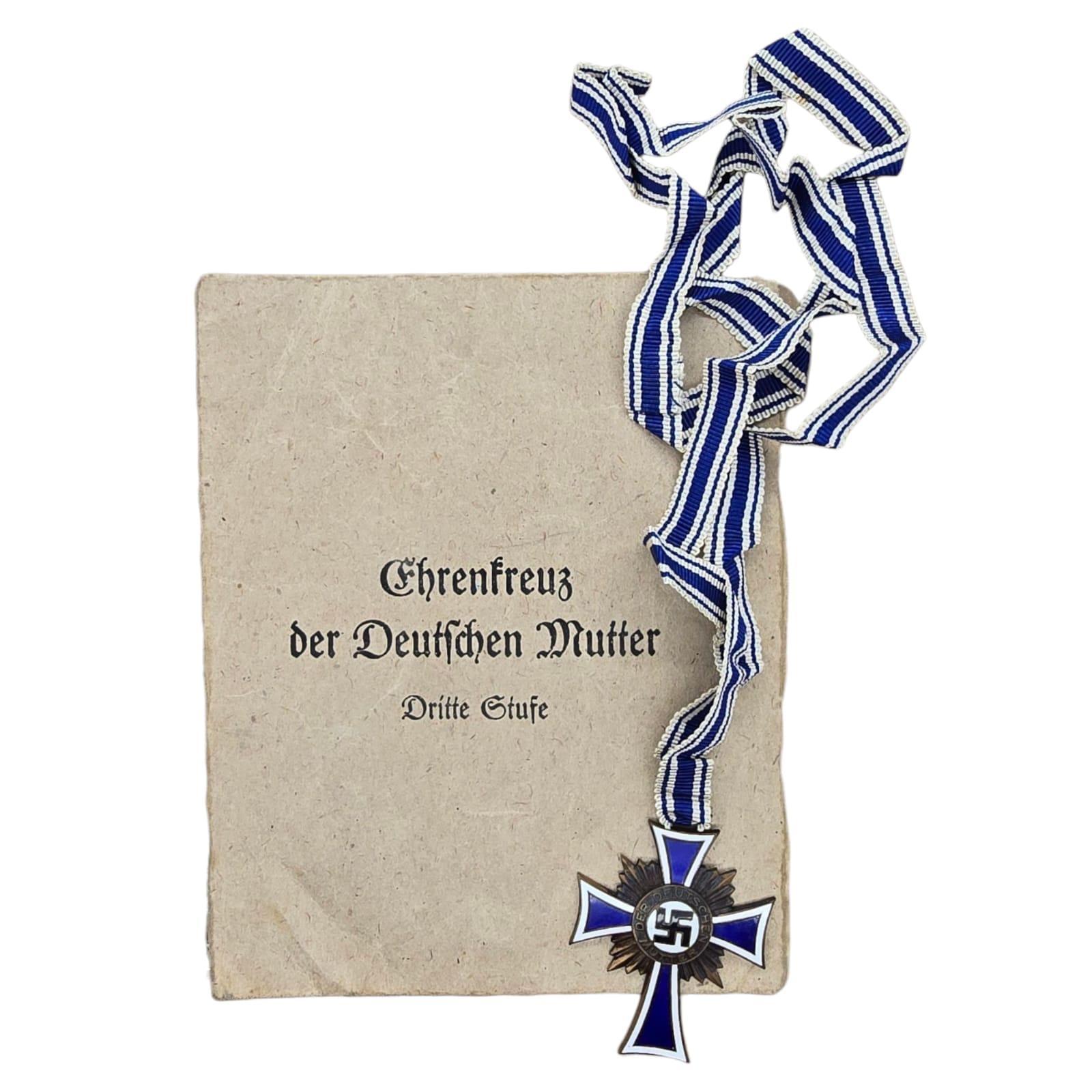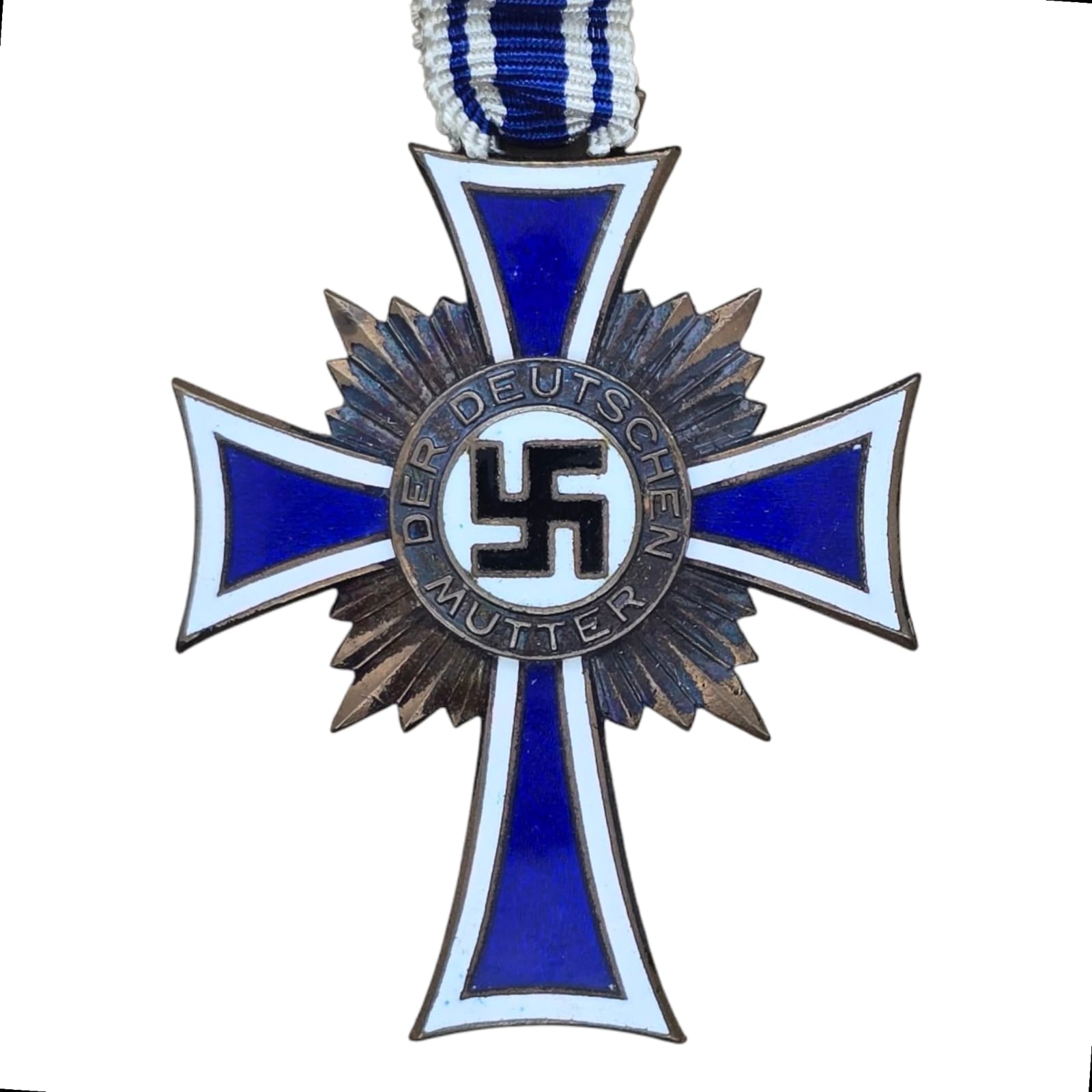 Item: The Cross of Honour of the German Mother (German: Ehrenkreuz der Deutschen Mutter), referred to colloquially as the Mutterehrenkreuz (Mother’s Cross of Honour) or simply Mutterkreuz (Mother’s Cross), was a state decoration conferred by the government of the German Reich to honour a Reichsdeutsche German mother for exceptional merit to the German nation. Eligibility later extended to include Volksdeutsche (ethnic German) mothers from, for example, Austria and Sudetenland, that had earlier been incorporated into the German Reich.