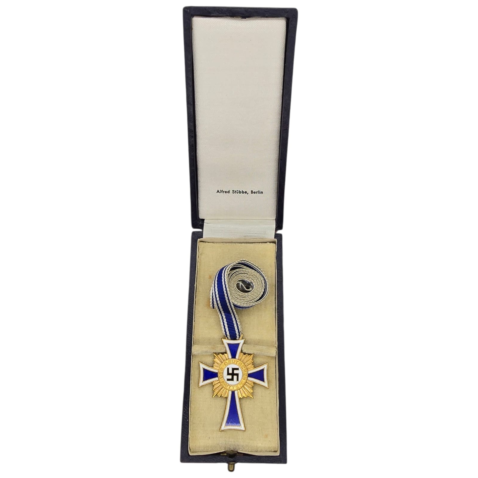 Item: The Cross of Honour of the German Mother (German: Ehrenkreuz der Deutschen Mutter), referred to colloquially as the Mutterehrenkreuz (Mother’s Cross of Honour) or simply Mutterkreuz (Mother’s Cross), was a state decoration conferred by the government of the German Reich to honour a Reichsdeutsche German mother for exceptional merit to the German nation. Eligibility later extended to include Volksdeutsche (ethnic German) mothers from, for example, Austria and Sudetenland, that had earlier been incorporated into the German Reich.