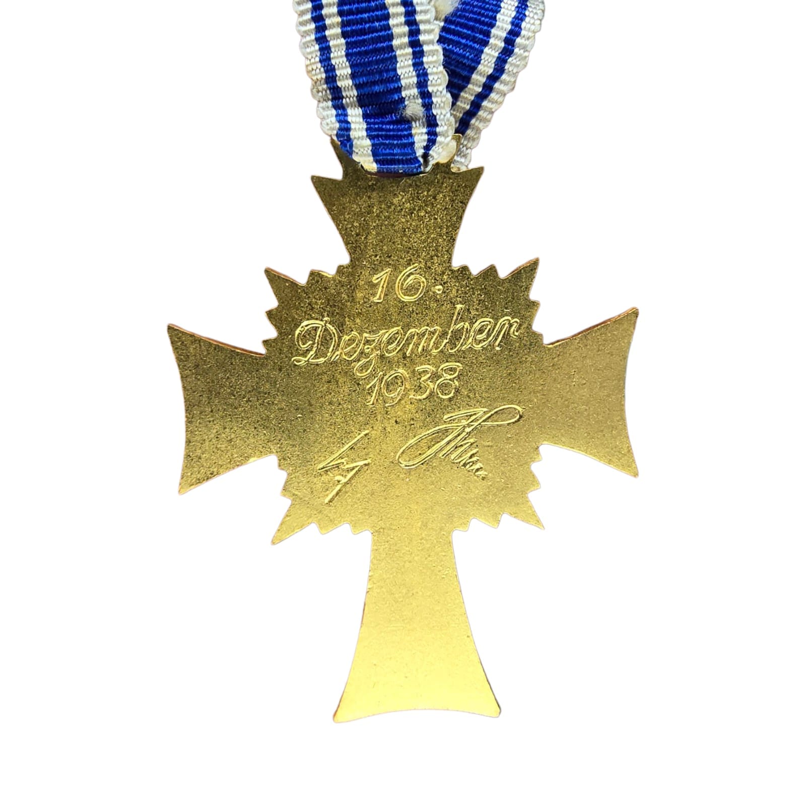 Item: The Cross of Honour of the German Mother (German: Ehrenkreuz der Deutschen Mutter), referred to colloquially as the Mutterehrenkreuz (Mother’s Cross of Honour) or simply Mutterkreuz (Mother’s Cross), was a state decoration conferred by the government of the German Reich to honour a Reichsdeutsche German mother for exceptional merit to the German nation. Eligibility later extended to include Volksdeutsche (ethnic German) mothers from, for example, Austria and Sudetenland, that had earlier been incorporated into the German Reich.