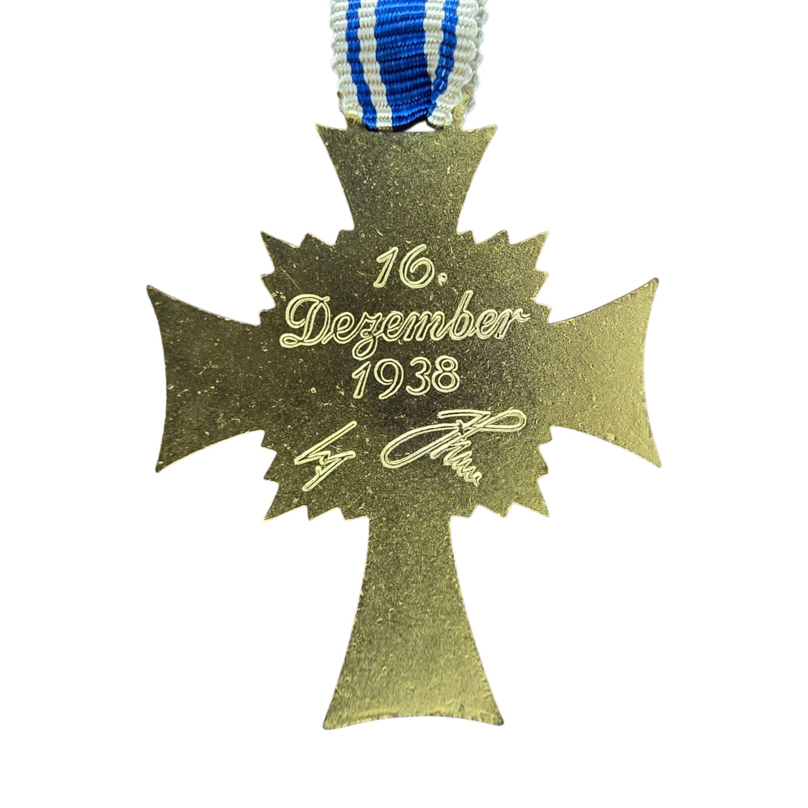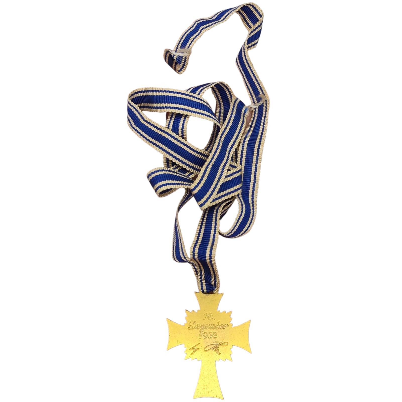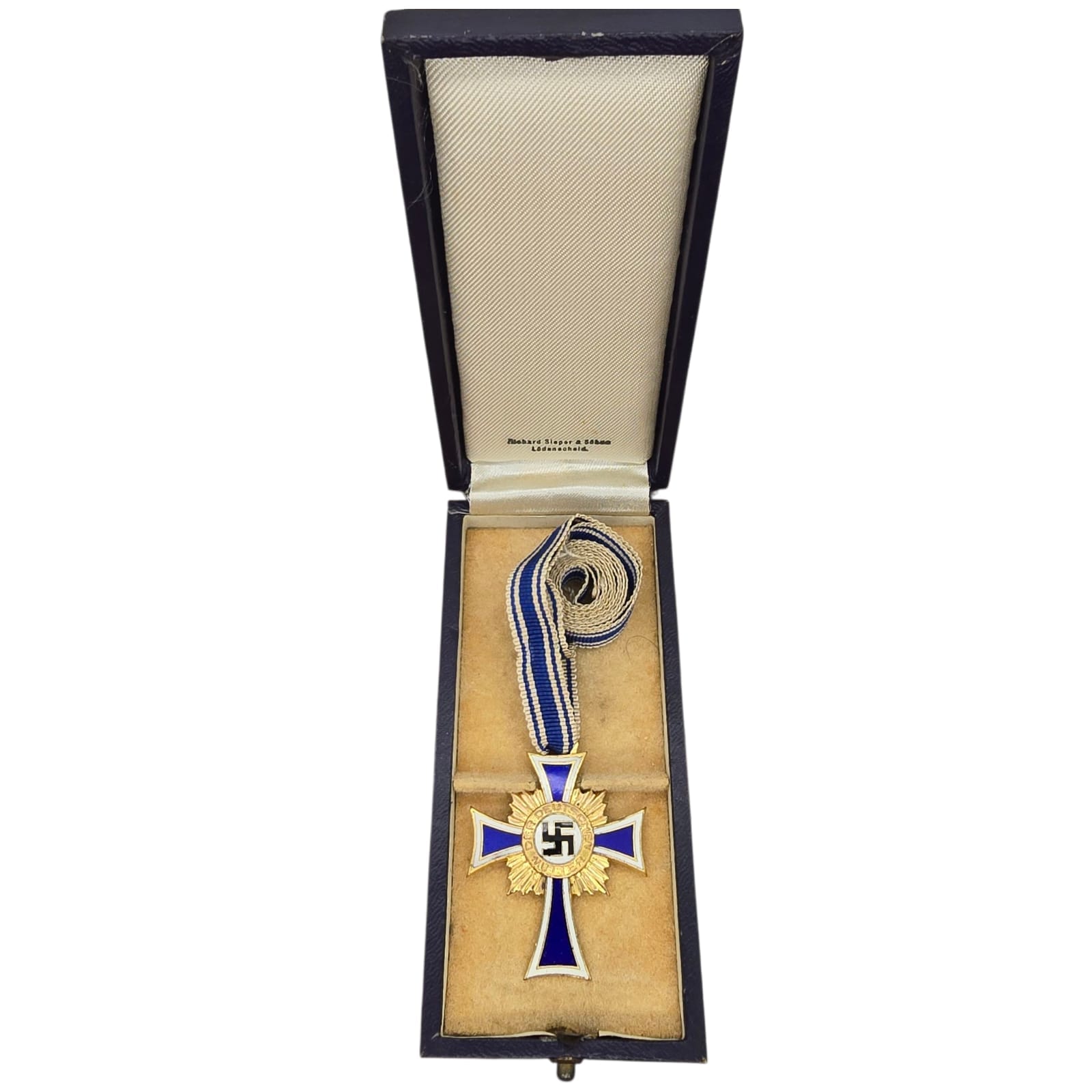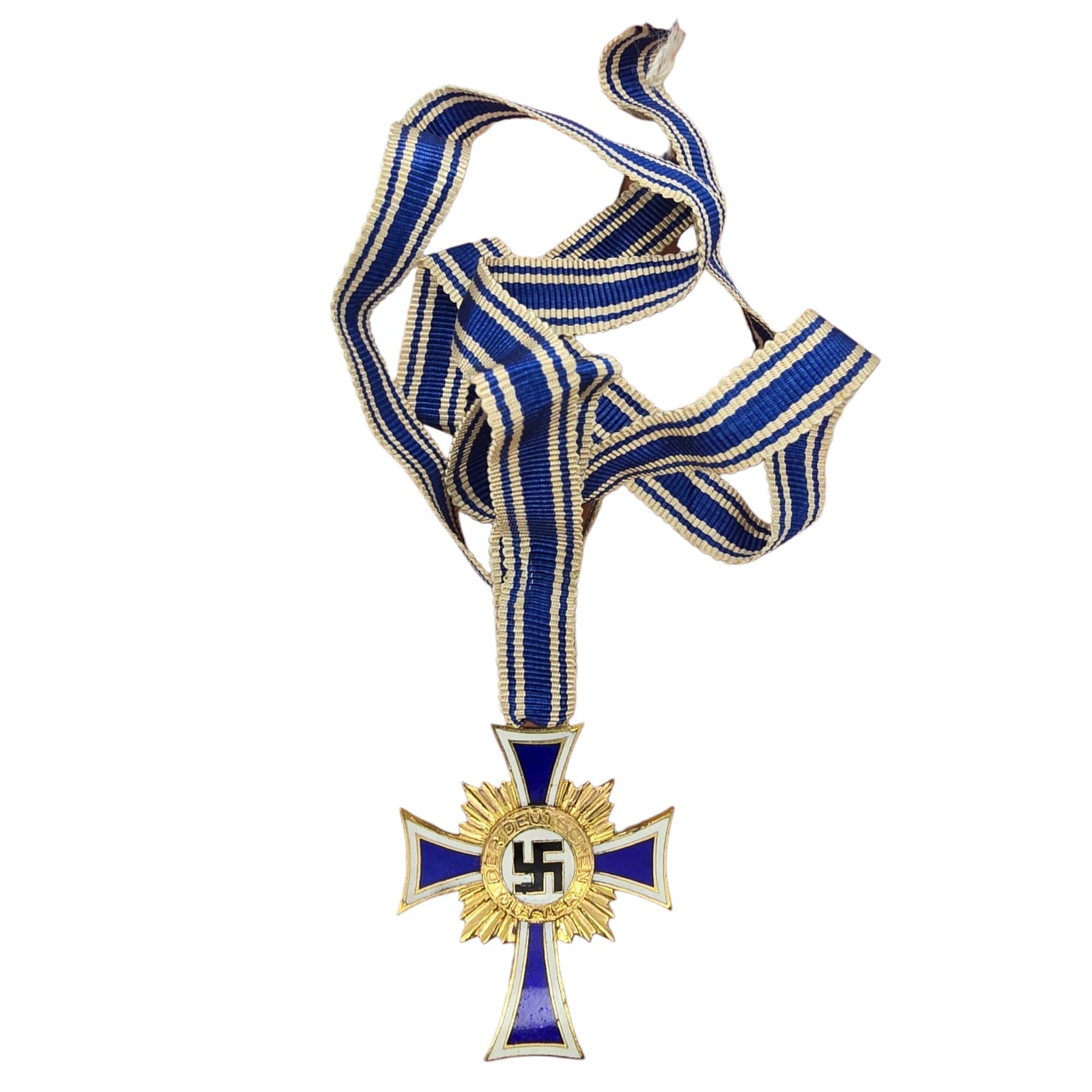 Item: The Cross of Honour of the German Mother (German: Ehrenkreuz der Deutschen Mutter), referred to colloquially as the Mutterehrenkreuz (Mother’s Cross of Honour) or simply Mutterkreuz (Mother’s Cross), was a state decoration conferred by the government of the German Reich to honour a Reichsdeutsche German mother for exceptional merit to the German nation. Eligibility later extended to include Volksdeutsche (ethnic German) mothers from, for example, Austria and Sudetenland, that had earlier been incorporated into the German Reich.