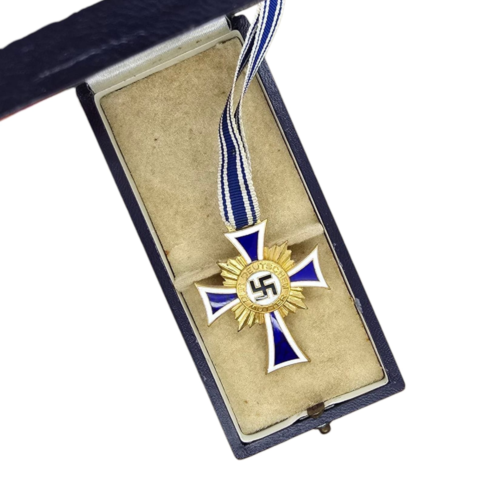 Item: The Cross of Honour of the German Mother (German: Ehrenkreuz der Deutschen Mutter), referred to colloquially as the Mutterehrenkreuz (Mother’s Cross of Honour) or simply Mutterkreuz (Mother’s Cross), was a state decoration conferred by the government of the German Reich to honour a Reichsdeutsche German mother for exceptional merit to the German nation. Eligibility later extended to include Volksdeutsche (ethnic German) mothers from, for example, Austria and Sudetenland, that had earlier been incorporated into the German Reich.