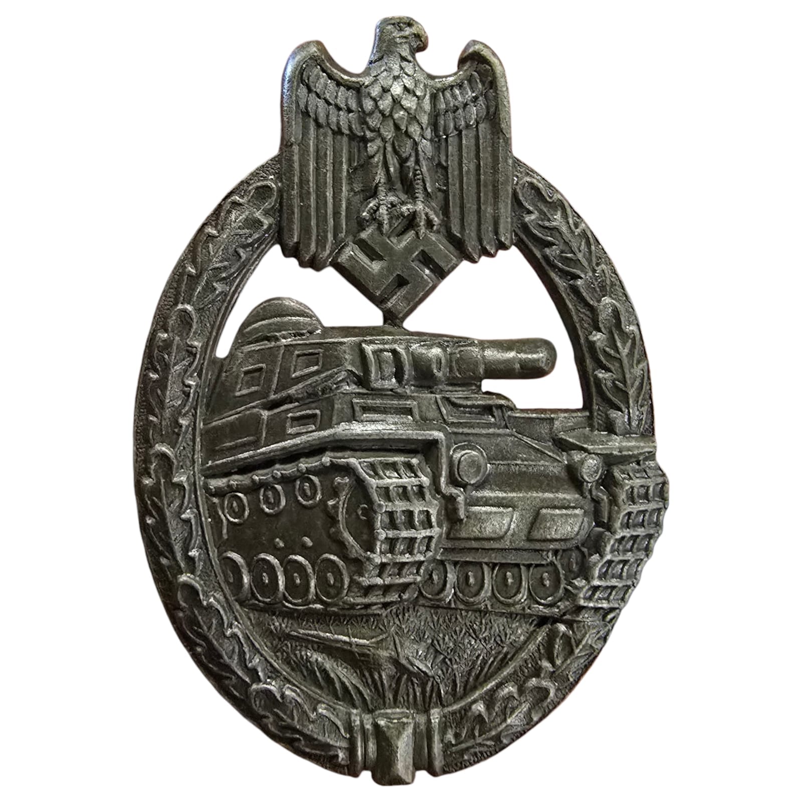 Item: The Silver Tank Combat Badge was the first of its kind to be established. It could be awarded to all soldiers in the tank corps. The prerequisite was that they had proven themselves in three different combat missions on three different days as a member of a tank crew . The crew had to have actively participated in the fighting.