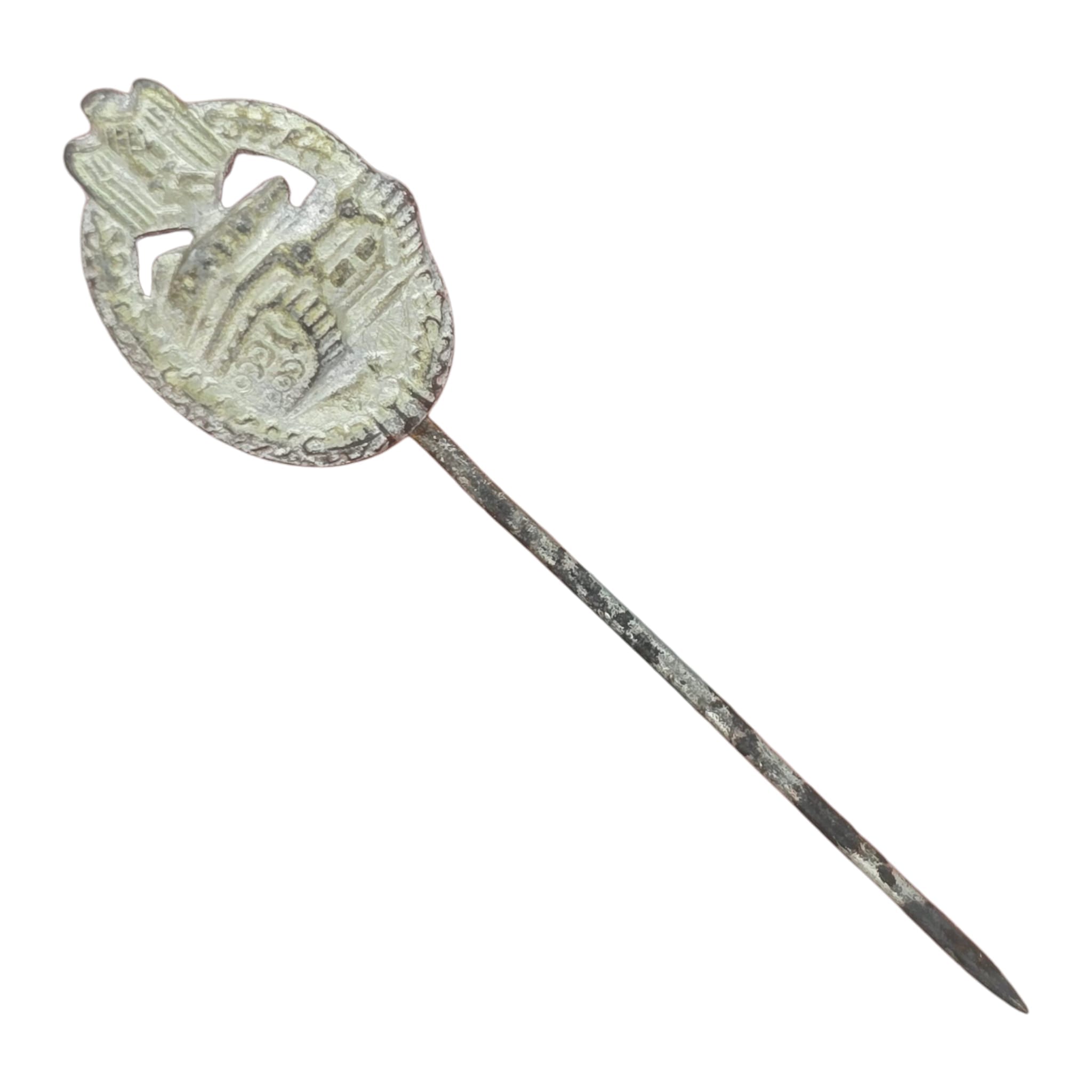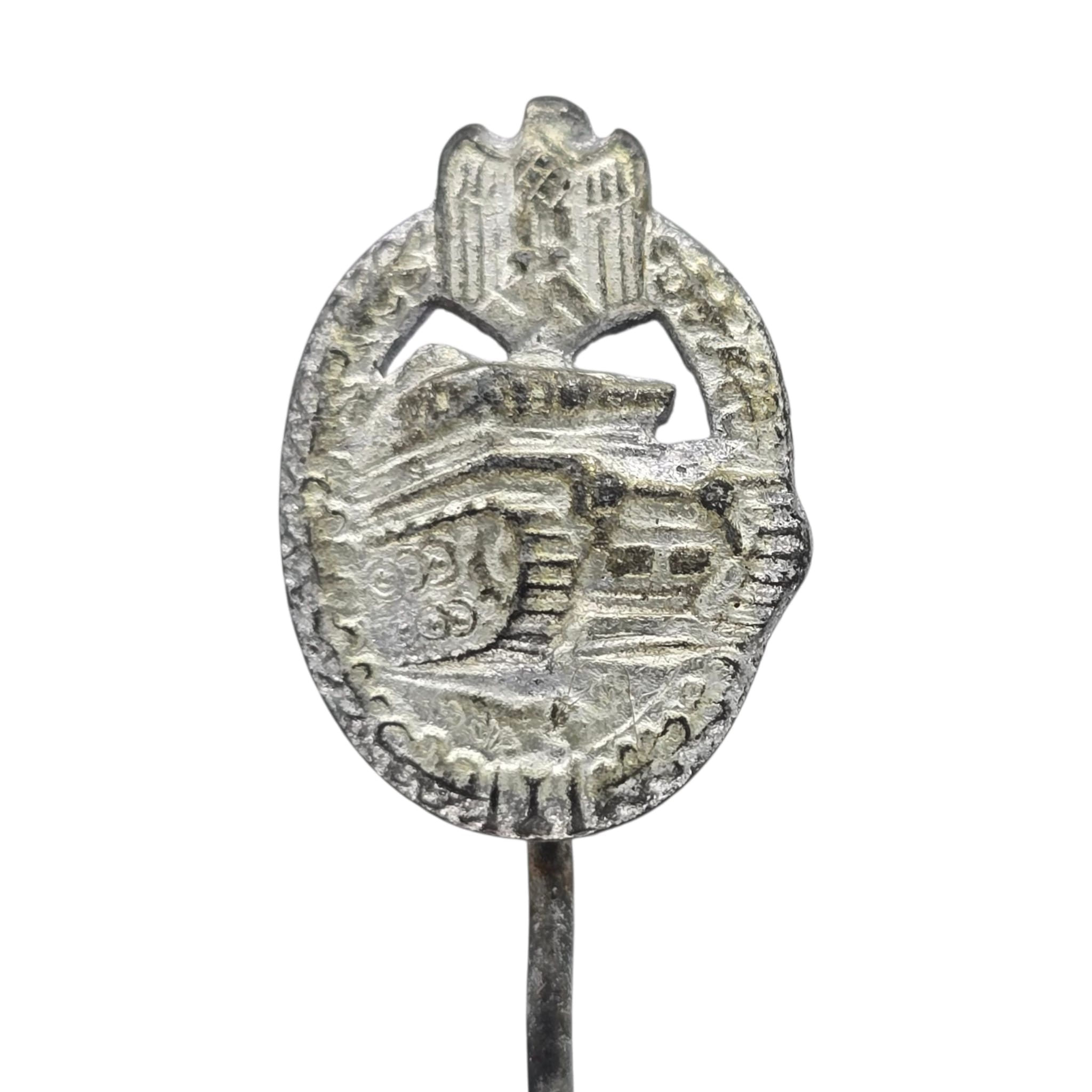 Condition: in good condition, nice unmarked example of the Panzer Assault Badge Miniature In Silver