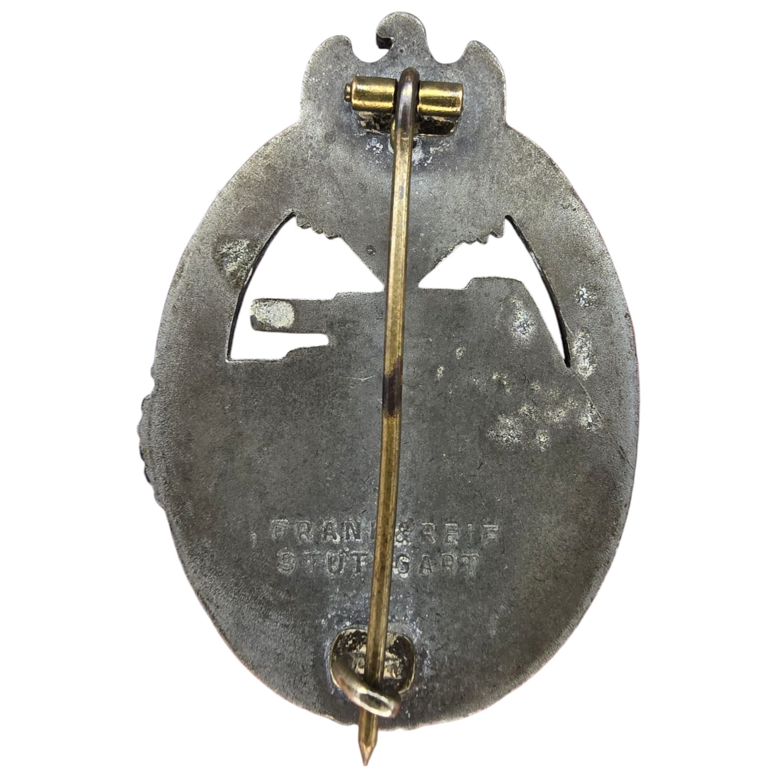 Item: The Silver Tank Combat Badge was the first of its kind to be established. It could be awarded to all soldiers in the tank corps. The prerequisite was that they had proven themselves in three different combat missions on three different days as a member of a tank crew . The crew had to have actively participated in the fighting.