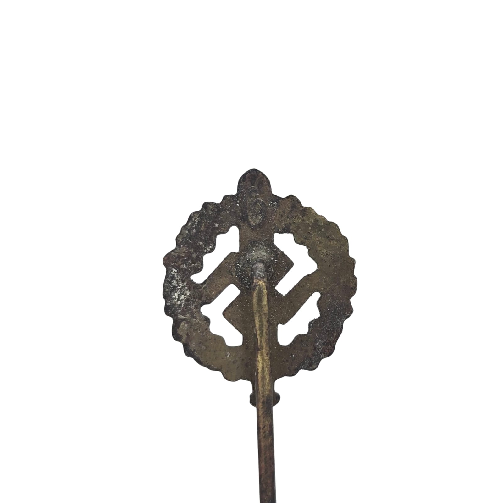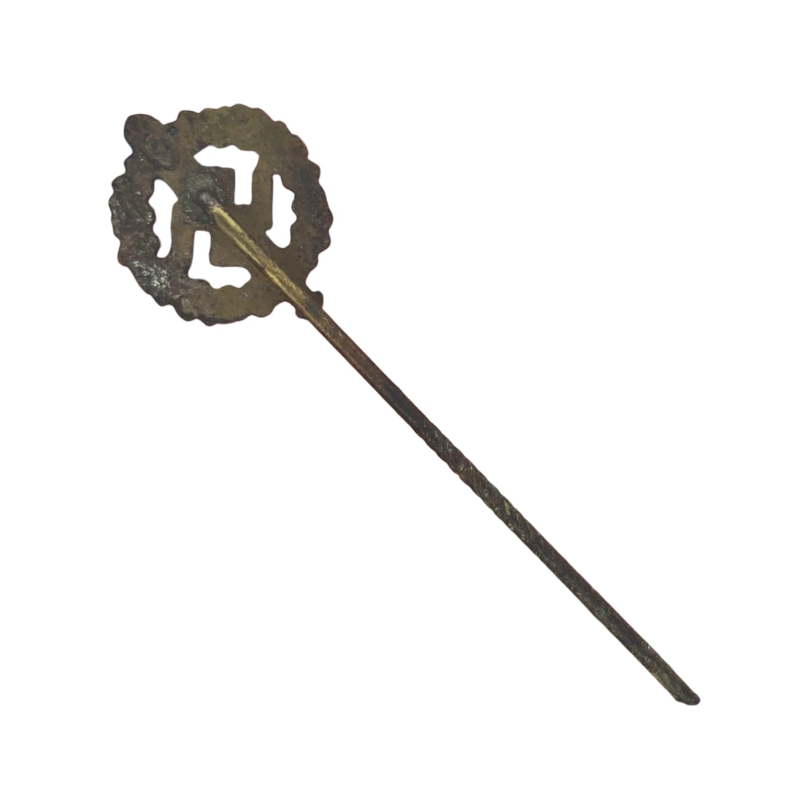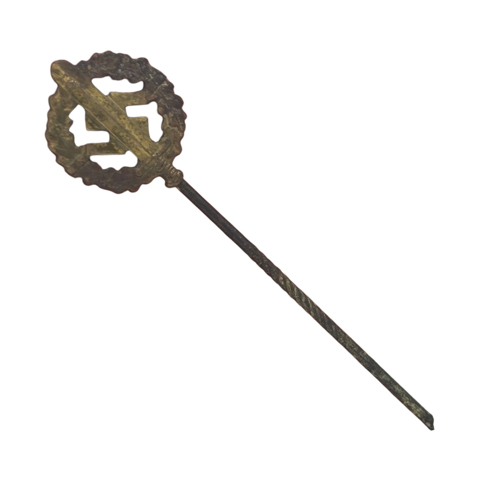 Item: SA Sports Medal in Bronze (SA-Sportabzeichen). The SA (Sturmabteilung) was founded in August 1921 as a protection unit of the political leaders of the NSDAP. The SA sports medal in bronze was instituted by SA Chief of Staff ‘Ernst Röhm’ on November 28, 1933, to distinguish SA and SS personnel who had achieved the set criteria (fitness, military defense, field exercises, etc.). this is a miniature stickpin for clothing