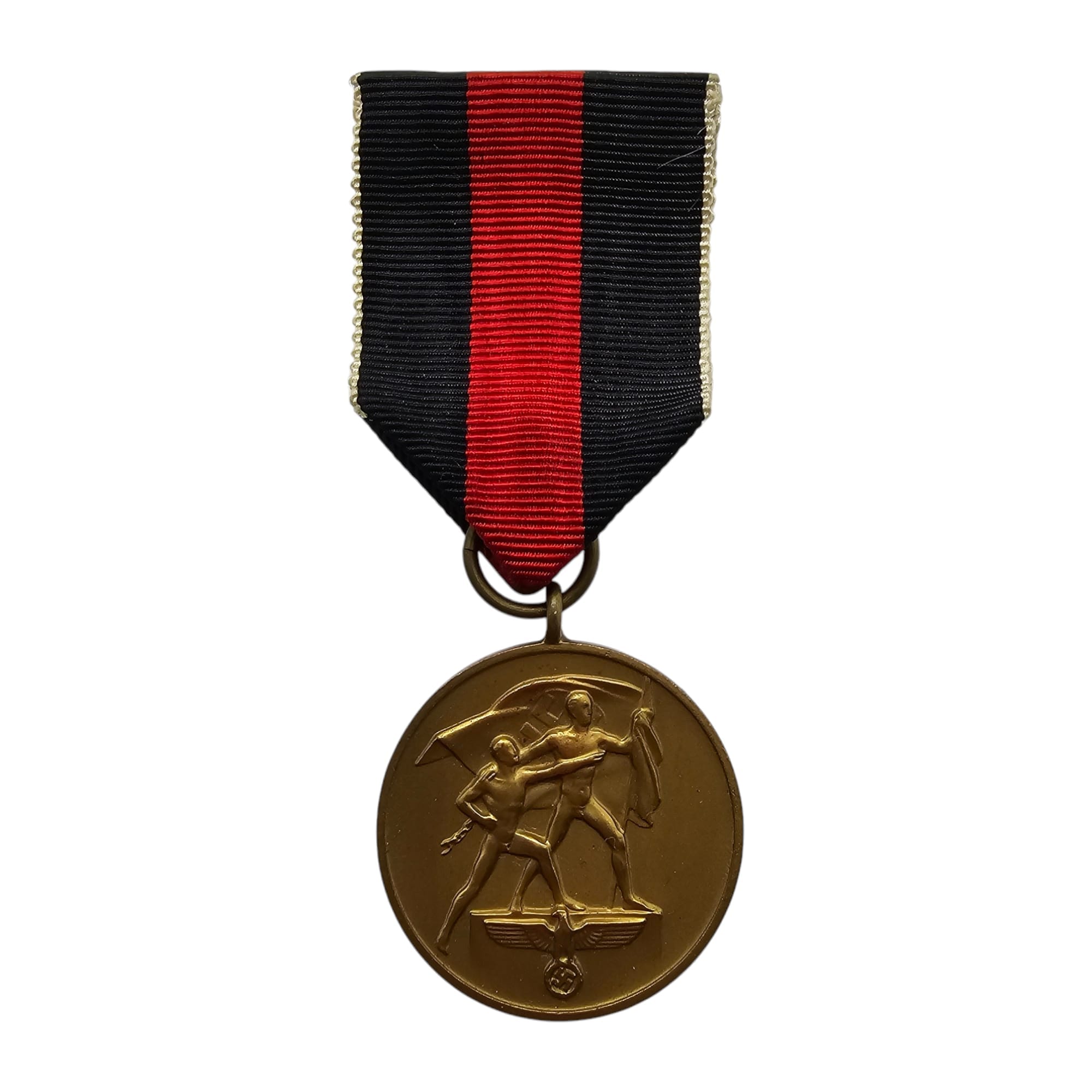 The medal was awarded to all German State officials and members of the German Wehrmacht and SS who entered the Sudetenland on 18 October 1938,and to Sudeten Nazis who had worked for union with Germany. Later a special bar for attachment to the ribbon was introduced for participation in the occupation of the remnants of Czechoslovakia on 15 March 1939, and to others who rendered valuable support. Last awarded on 31 December 1940