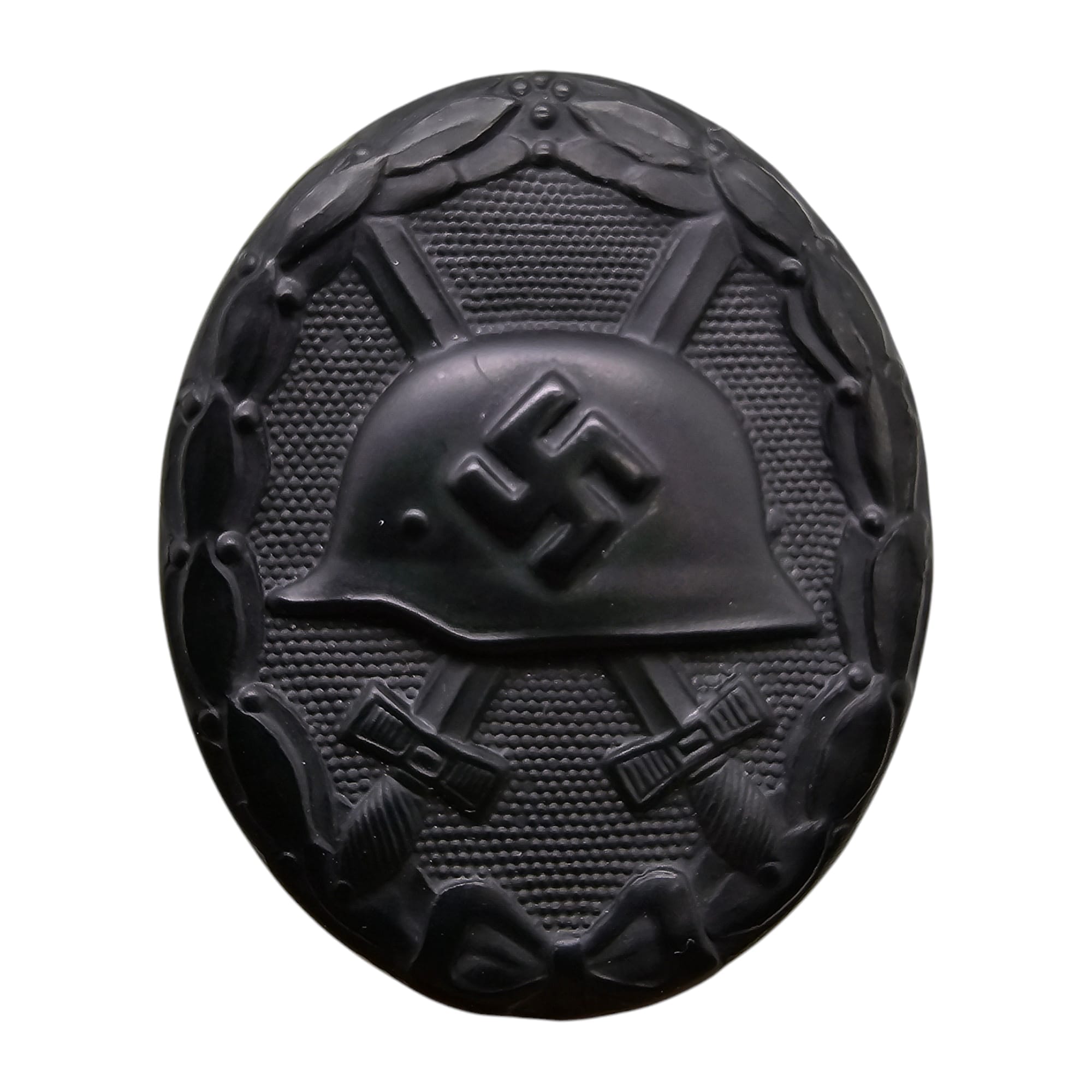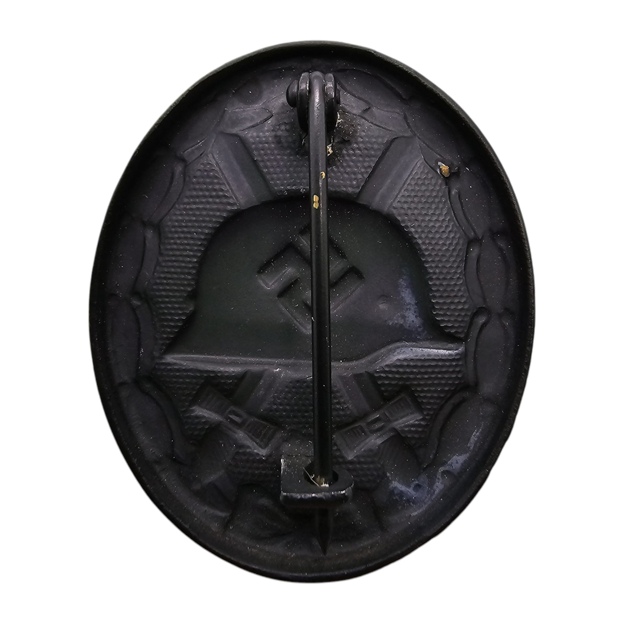 Item: The Wound Badge (German: Verwundetenabzeichen) was a German military decoration first promulgated by Wilhelm II, German Emperor on 3 March 1918, which was first awarded to soldiers of the German Army who were wounded during World War I. Between the world wars, it was awarded to members of the German armed forces who fought on the Nationalist side of the Spanish Civil War, 1938–39, and received combat related wounds. It was awarded to members in the Reichswehr, the Wehrmacht, SS and the auxiliary service organizations during World War II. After March 1943, due to the increasing number of Allied bombings, it was also awarded to civilians wounded in air raids. It was awarded when the wound was the result of enemy hostile action. In 1957, the West German government authorized a denazified (Swastika removed) version of the basic (black, silver, & gold) badges for wear on the Bundeswehr uniform, among other certain Nazi-era wartime awards.