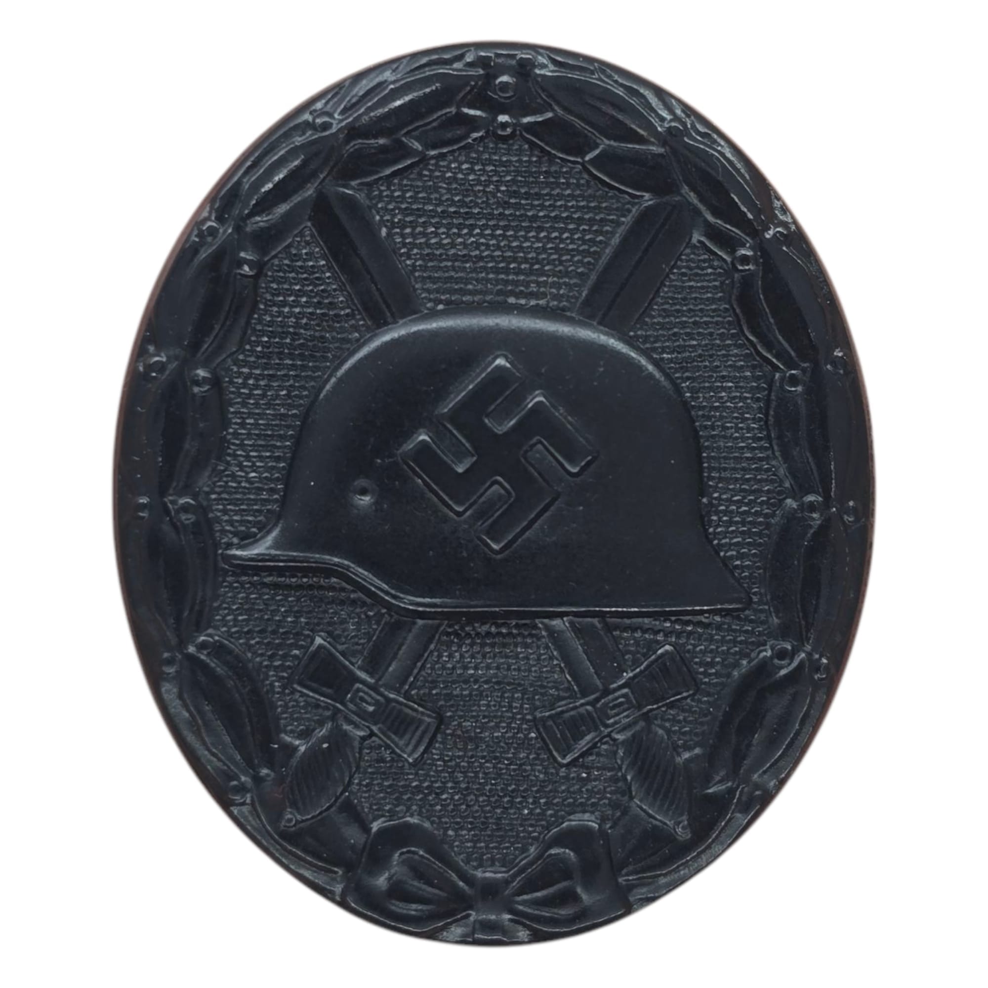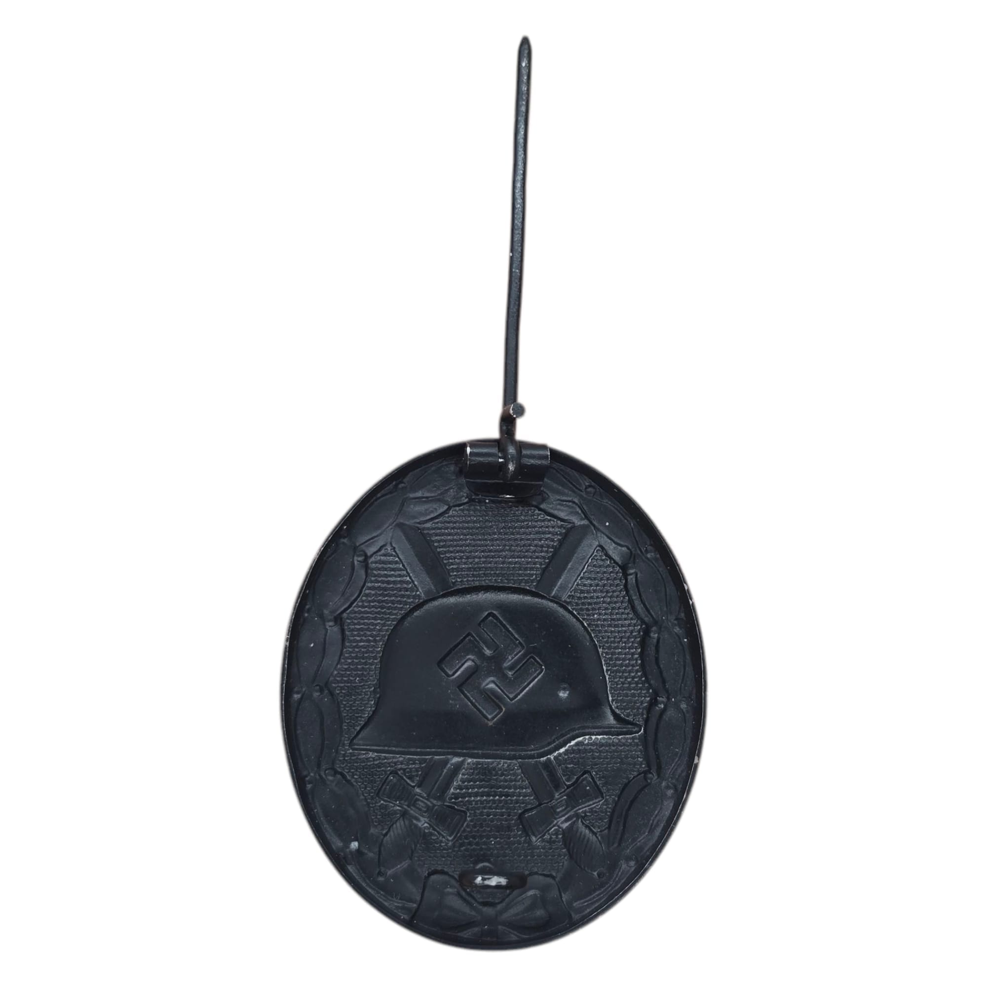 Item: The Wound Badge (German: Verwundetenabzeichen) was a German military decoration first promulgated by Wilhelm II, German Emperor on 3 March 1918, which was first awarded to soldiers of the German Army who were wounded during World War I. Between the world wars, it was awarded to members of the German armed forces who fought on the Nationalist side of the Spanish Civil War, 1938–39, and received combat related wounds. It was awarded to members in the Reichswehr, the Wehrmacht, SS and the auxiliary service organizations during World War II. After March 1943, due to the increasing number of Allied bombings, it was also awarded to civilians wounded in air raids. It was awarded when the wound was the result of enemy hostile action. In 1957, the West German government authorized a denazified (Swastika removed) version of the basic (black, silver, & gold) badges for wear on the Bundeswehr uniform, among other certain Nazi-era wartime awards.