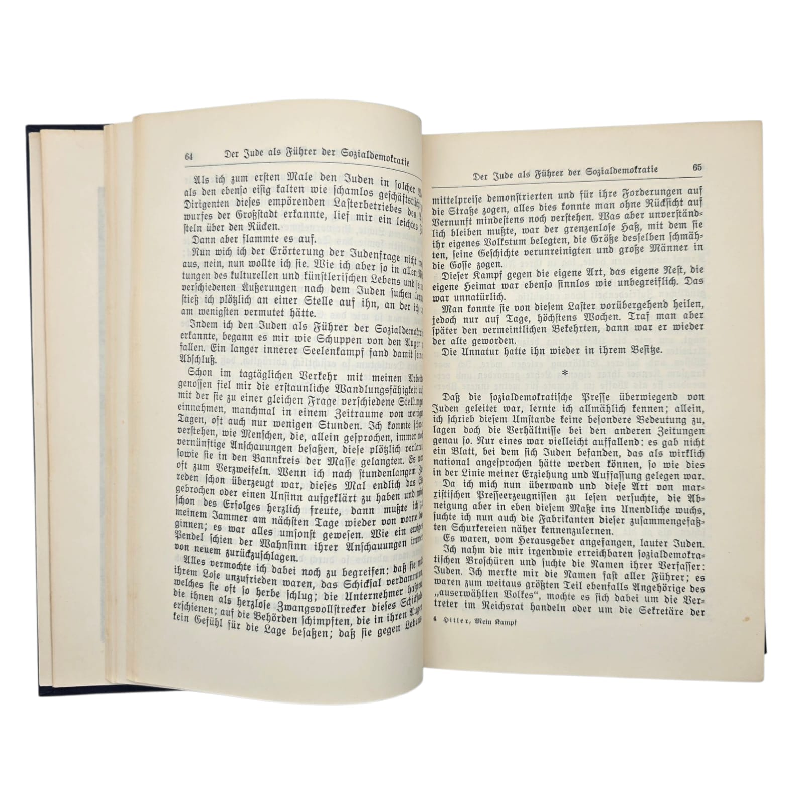Item: Mein Kampf ("Mijn Strijd") is een boek geschreven door Adolf Hitler, voor het eerst gepubliceerd in 1925. Het is een mix van autobiografie en politieke ideologie, waarin Hitler’s antisemitische overtuigingen, Duits nationalisme en expansieplannen worden uiteengezet. Het boek kreeg betekenis nadat Hitler in 1933 aan de macht kwam en werd verplichte lectuur in nazi-Duitsland. Na de Tweede Wereldoorlog werd het in veel landen verboden. Het auteursrecht, dat in handen was van Beieren, verliep in 2016, wat leidde tot nieuwe geannoteerde edities die historische context bieden om de propaganda tegen te gaan.