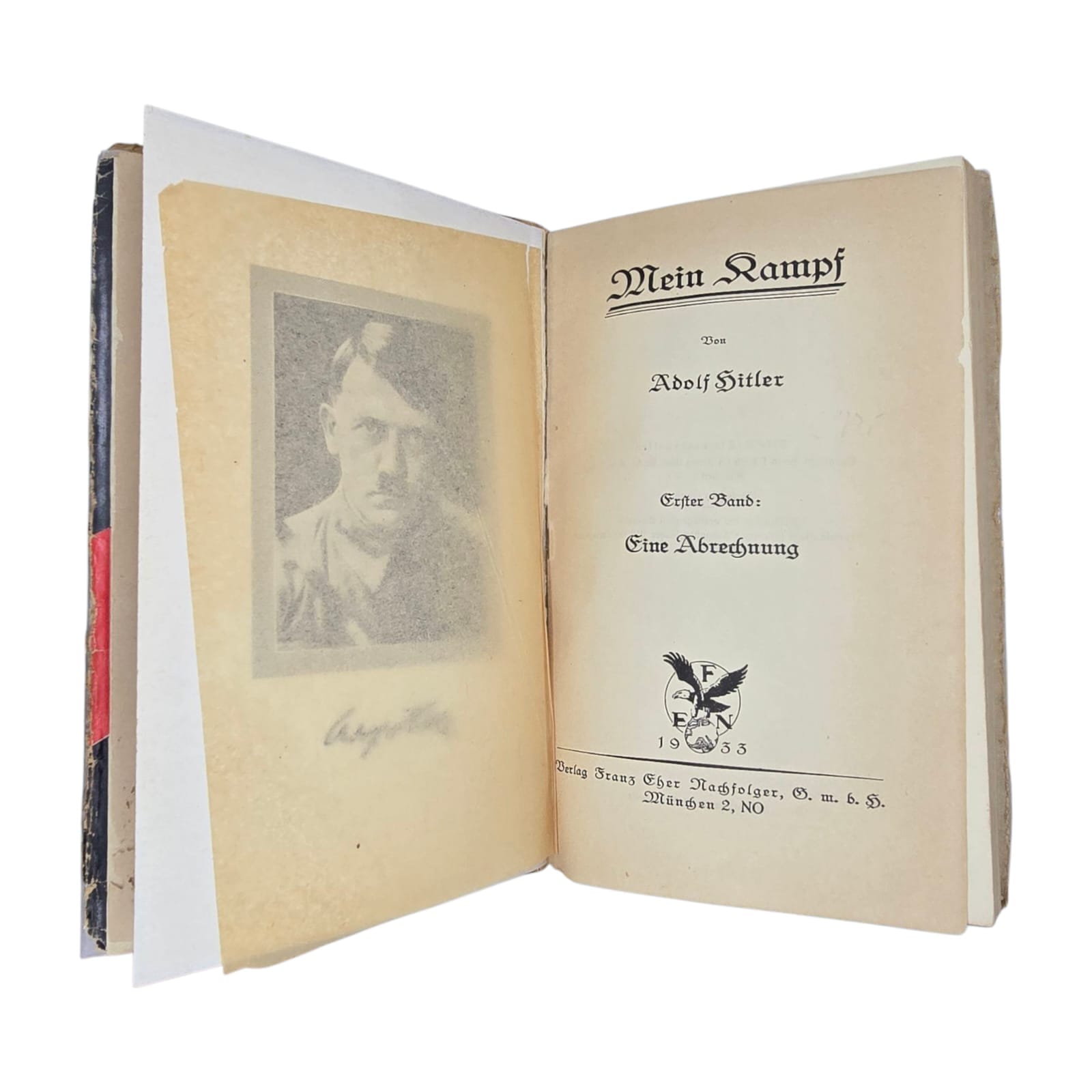 Item: Mein Kampf (“My Struggle”) is a book written by Adolf Hitler, first published in 1925. It is a mix of autobiography and political ideology, outlining Hitler’s anti-Semitic beliefs, German nationalism, and plans for expansion. The book gained significance after Hitler rose to power in 1933, becoming required reading in Nazi Germany. After World War II, it was banned in many countries. The copyright, held by Bavaria, expired in 2016, leading to new annotated editions that provide historical context to counter its propaganda.