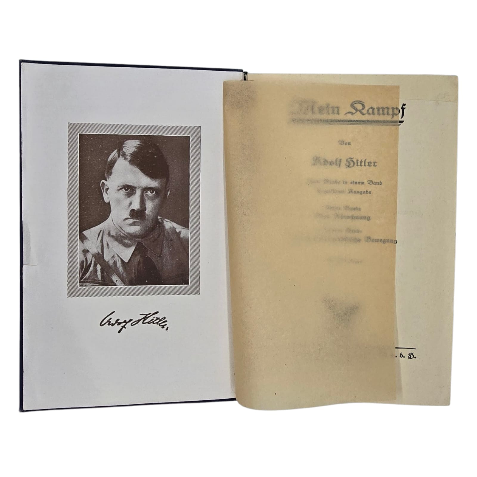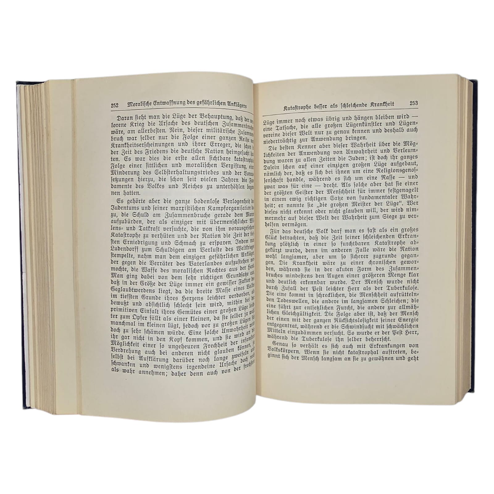 Conditie: In goede staat. een bladzijde van het boek is geplakt met zuurvrije tape. deze versie van Mein Kampf is zeldzaam