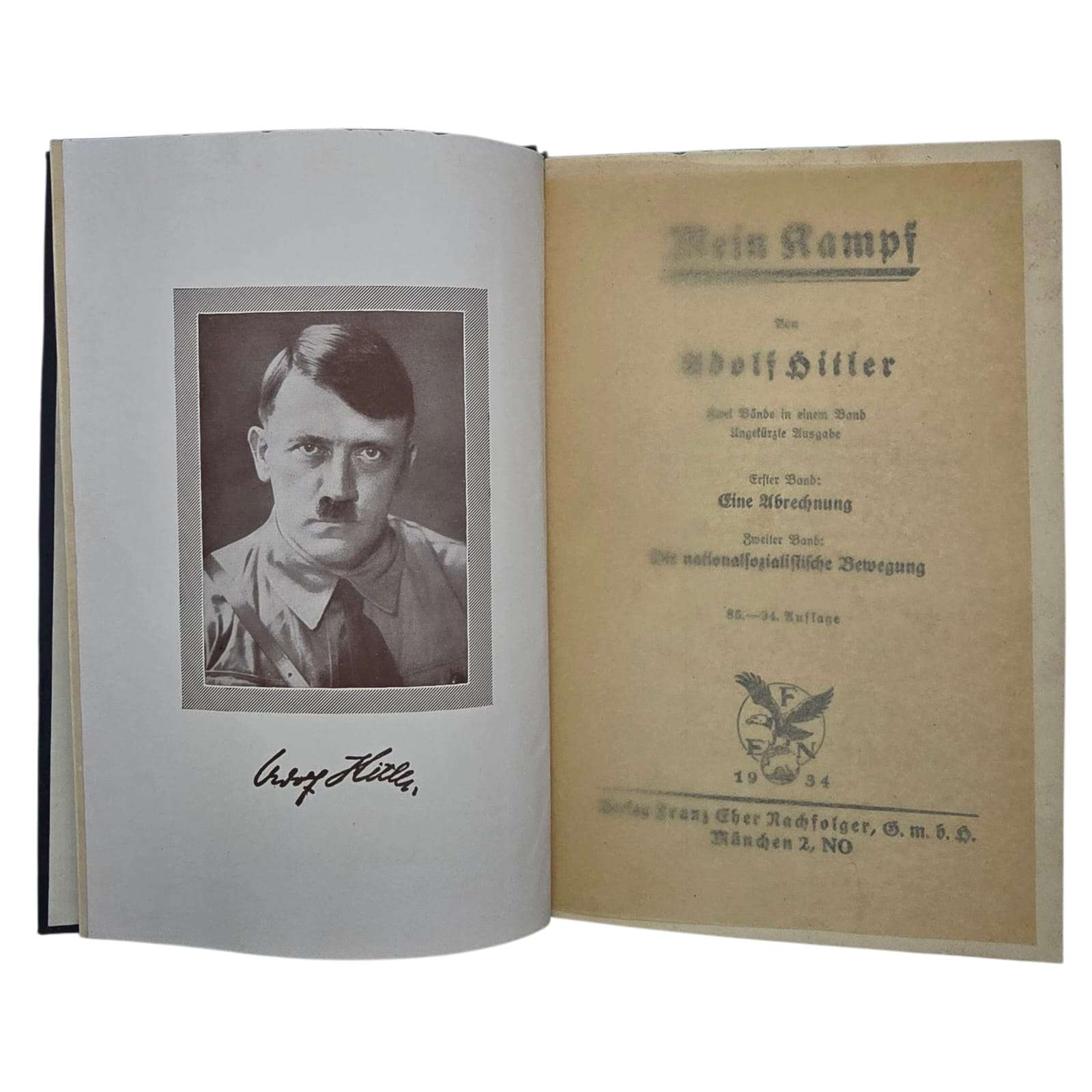 Item: Mein Kampf ("Mijn Strijd") is een boek geschreven door Adolf Hitler, voor het eerst gepubliceerd in 1925. Het is een mix van autobiografie en politieke ideologie, waarin Hitler’s antisemitische overtuigingen, Duits nationalisme en expansieplannen worden uiteengezet. Het boek kreeg betekenis nadat Hitler in 1933 aan de macht kwam en werd verplichte lectuur in nazi-Duitsland. Na de Tweede Wereldoorlog werd het in veel landen verboden. Het auteursrecht, dat in handen was van Beieren, verliep in 2016, wat leidde tot nieuwe geannoteerde edities die historische context bieden om de propaganda tegen te gaan.