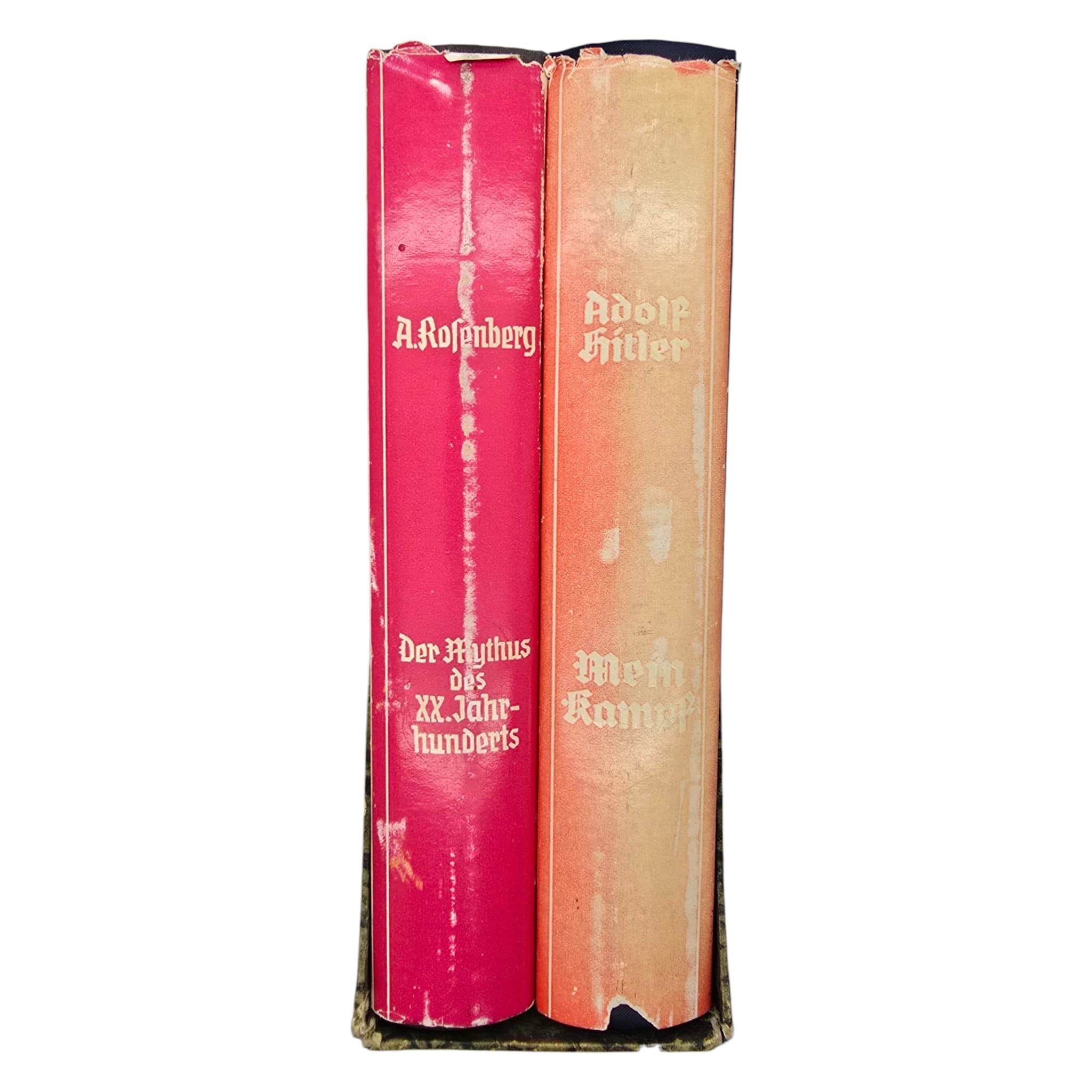 It is exceptionally rare to find these two books together and in such well-preserved condition. At the time, they offered the buyer a complete ideological overview from two of the most influential figures in Nazi Germany, who were closely aligned politically. A unique and historically significant item to own.