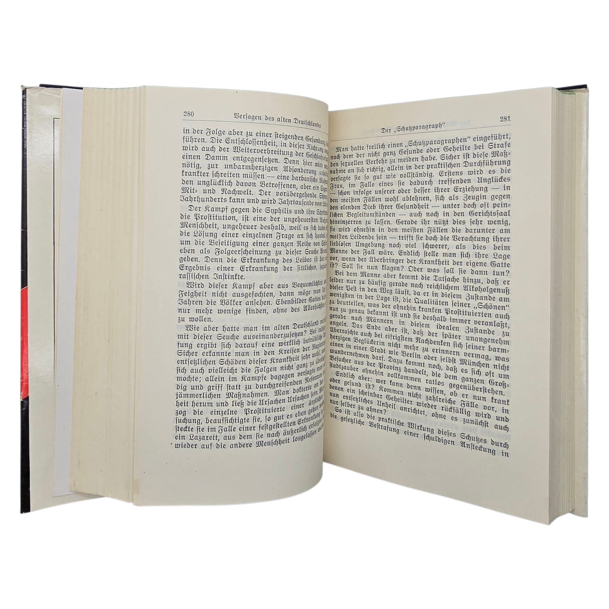 This book, like Mein Kampf, dates from 1935. The pages are still in excellent condition, as is the rest of the book. Thanks to the shared dust cover that protected both books over the years, they have remained in remarkably good condition.