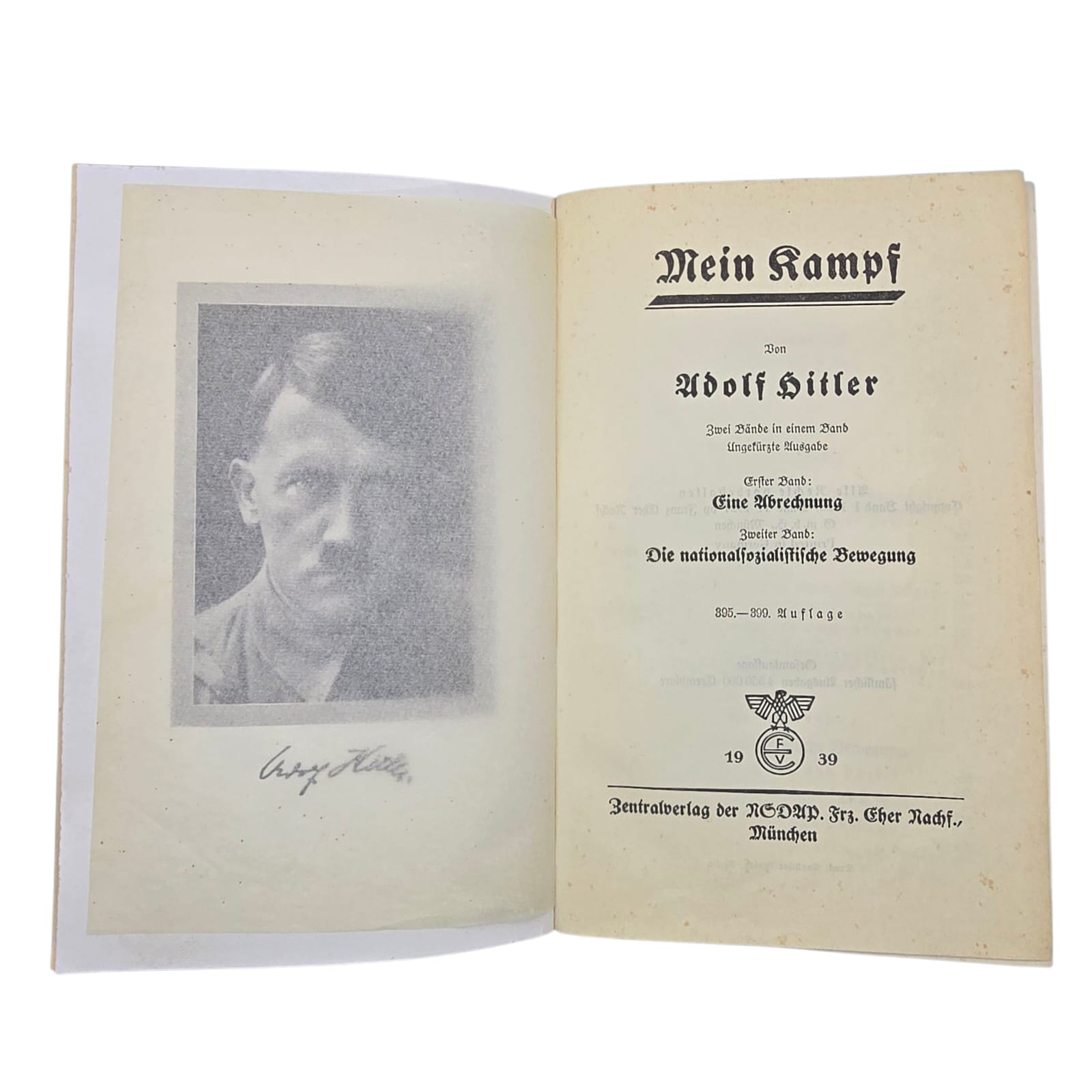 Item: Mein Kampf (“Mijn Strijd”) is een boek geschreven door Adolf Hitler, voor het eerst gepubliceerd in 1925. Het is een mix van autobiografie en politieke ideologie, waarin Hitler zijn antisemitische overtuigingen, Duits nationalisme en expansieplannen uiteenzet. Het boek kreeg grote betekenis nadat Hitler in 1933 aan de macht kwam en werd verplichte lectuur in nazi-Duitsland. Na de Tweede Wereldoorlog werd het in veel landen verboden. Het auteursrecht, dat in handen was van Beieren, verliep in 2016, waarna nieuwe geannoteerde edities verschenen die historische context bieden om de propaganda tegen te werken.