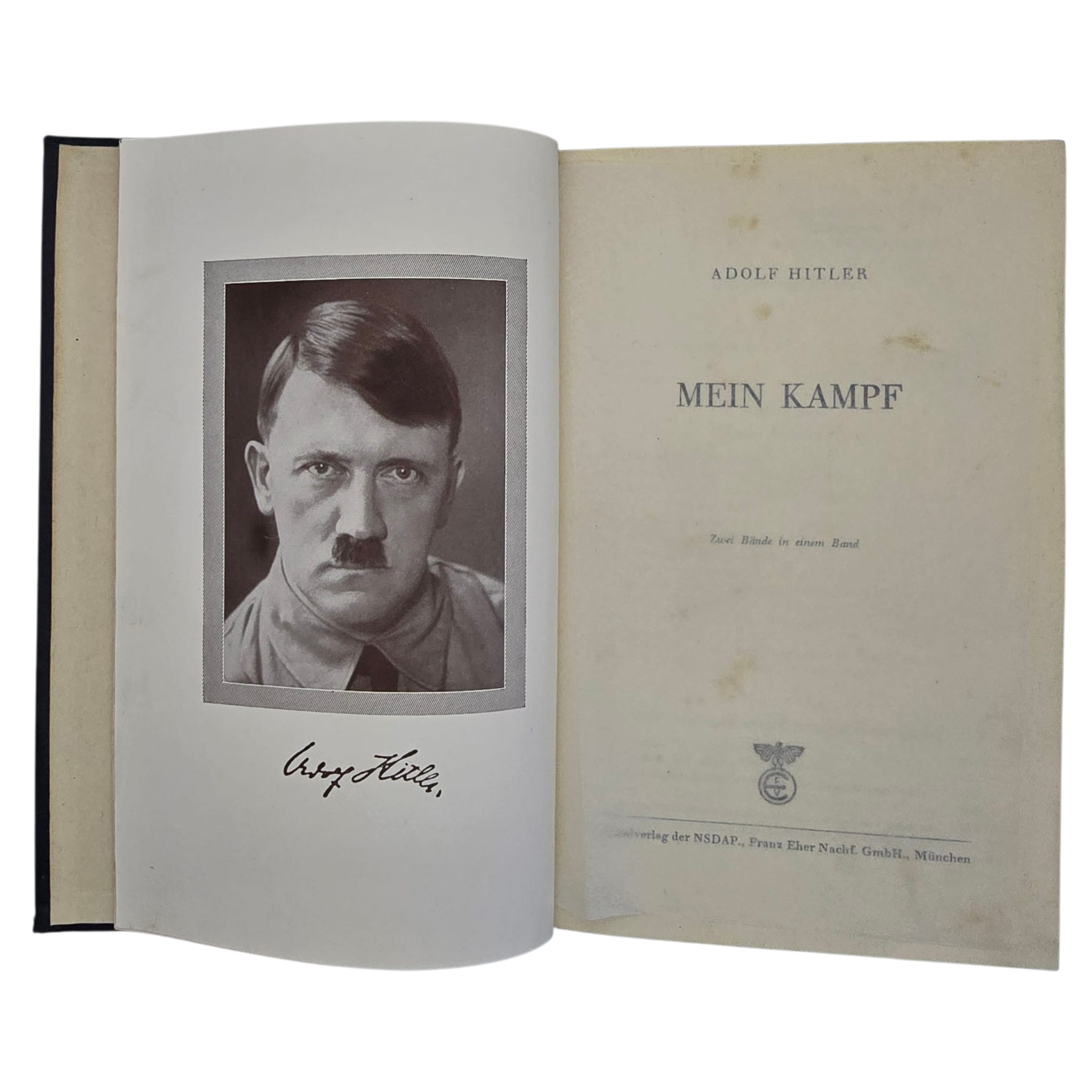 Item: Mein Kampf (“My Struggle”) is a book written by Adolf Hitler, first published in 1925. It is a mix of autobiography and political ideology, outlining Hitler’s anti-Semitic beliefs, German nationalism, and plans for expansion. The book gained significance after Hitler rose to power in 1933, becoming required reading in Nazi Germany. After World War II, it was banned in many countries. The copyright, held by Bavaria, expired in 2016, leading to new annotated editions that provide historical context to counter its propaganda.