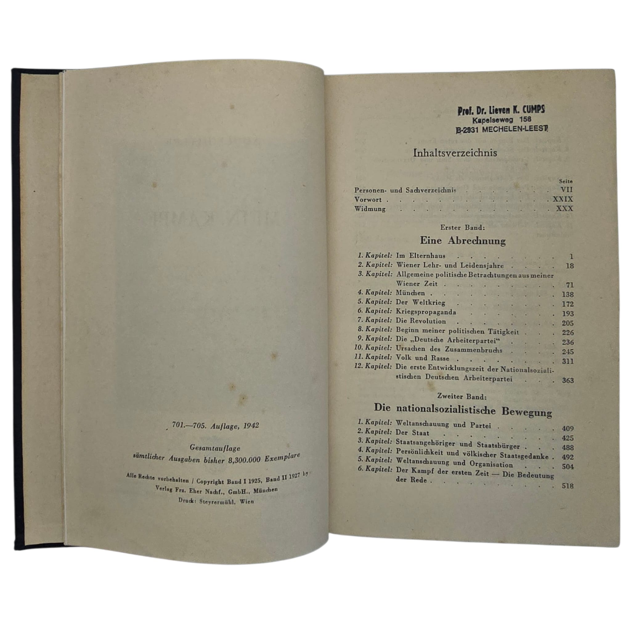 This book dates from 1942 and is in good condition. Unlike the standard Gothic typeface, this edition features a rare, more readable typeface, making it easier to read.