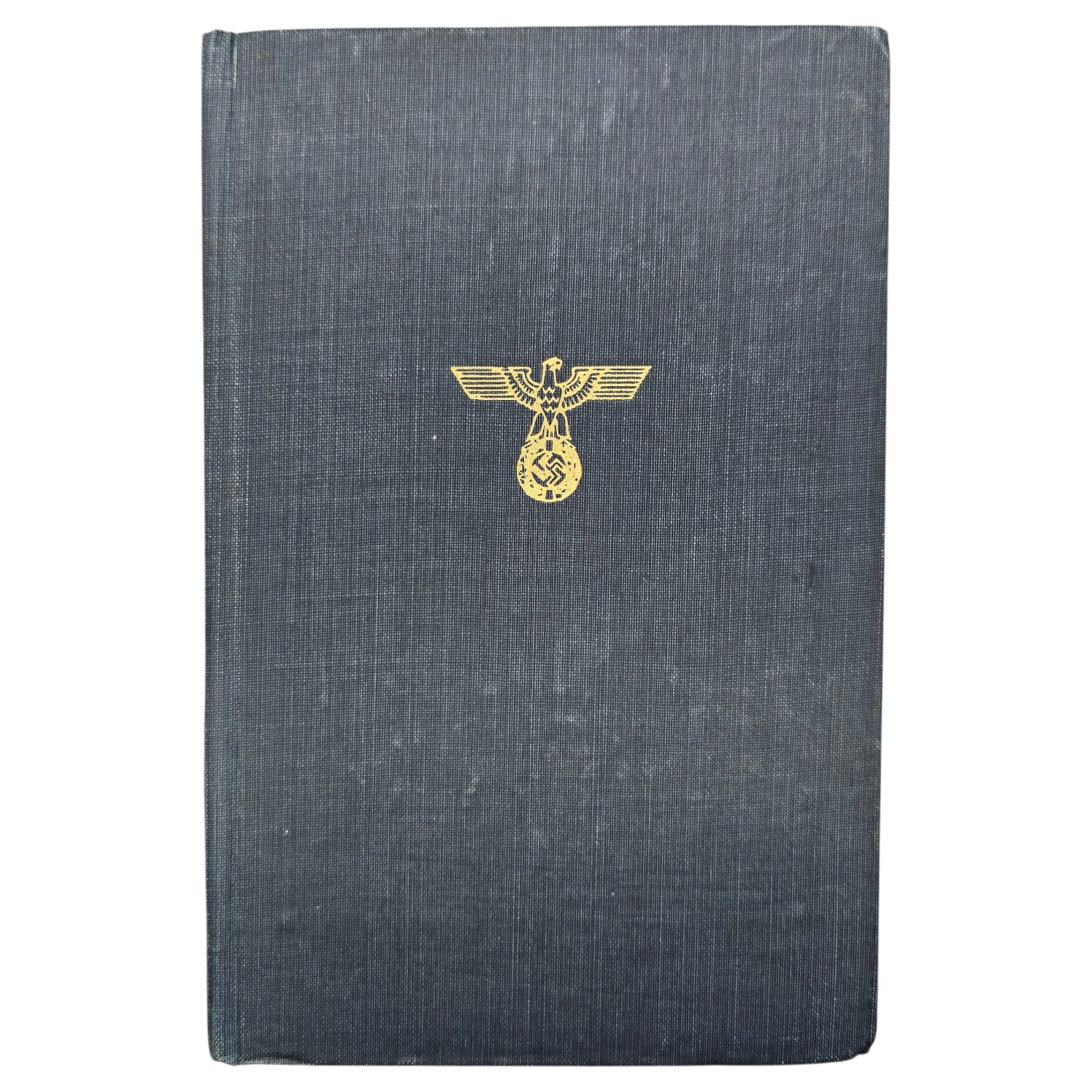 The cover is in good condition and still shows a large part of the gold-colored eagle on the front. On the spine, the title appears in clear gold lettering: Adolf Hitler – Mein Kampf.