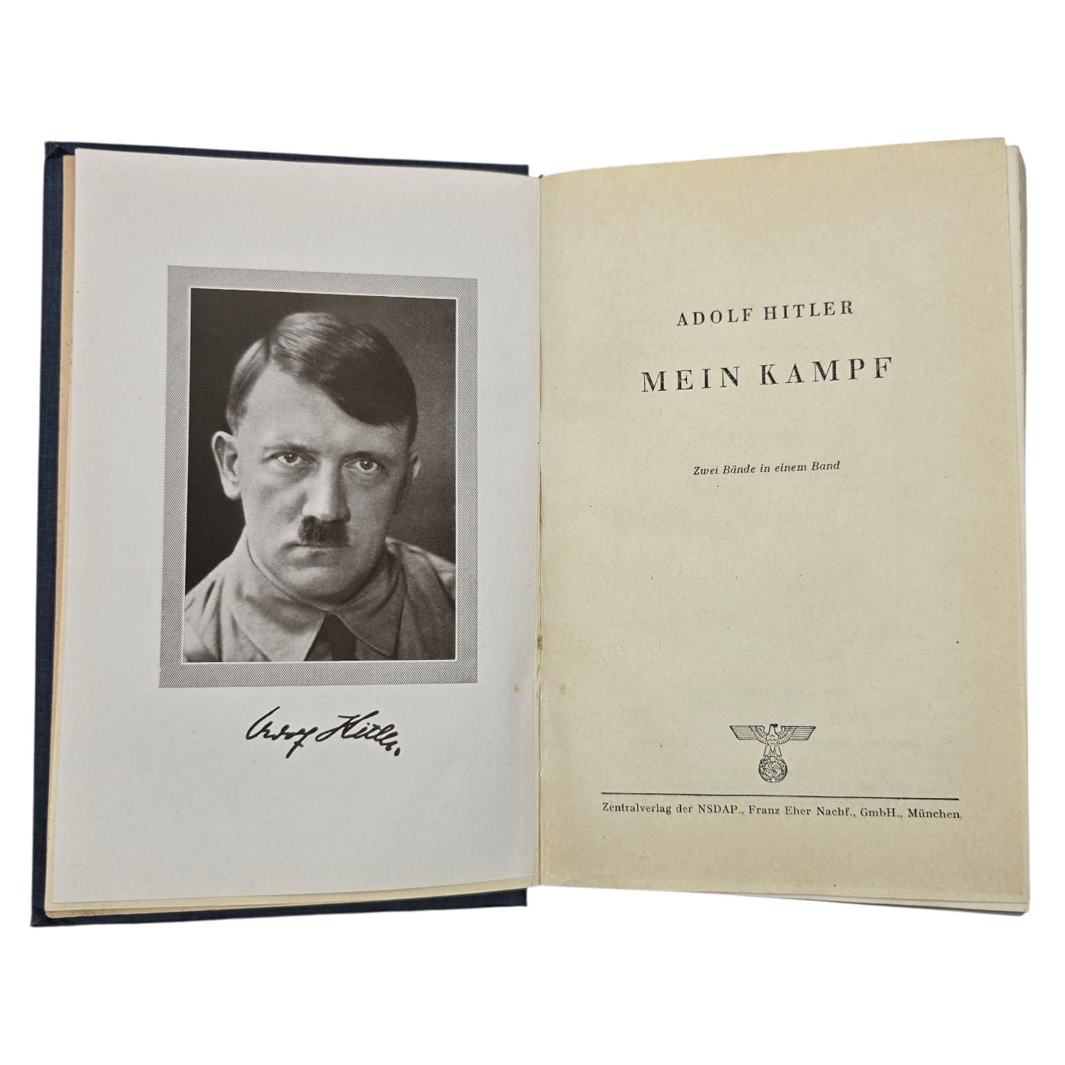 Item: Mein Kampf (“My Struggle”) is a book written by Adolf Hitler, first published in 1925. It is a mix of autobiography and political ideology, outlining Hitler’s anti-Semitic beliefs, German nationalism, and plans for expansion. The book gained significance after Hitler rose to power in 1933, becoming required reading in Nazi Germany. After World War II, it was banned in many countries. The copyright, held by Bavaria, expired in 2016, leading to new annotated editions that provide historical context to counter its propaganda.