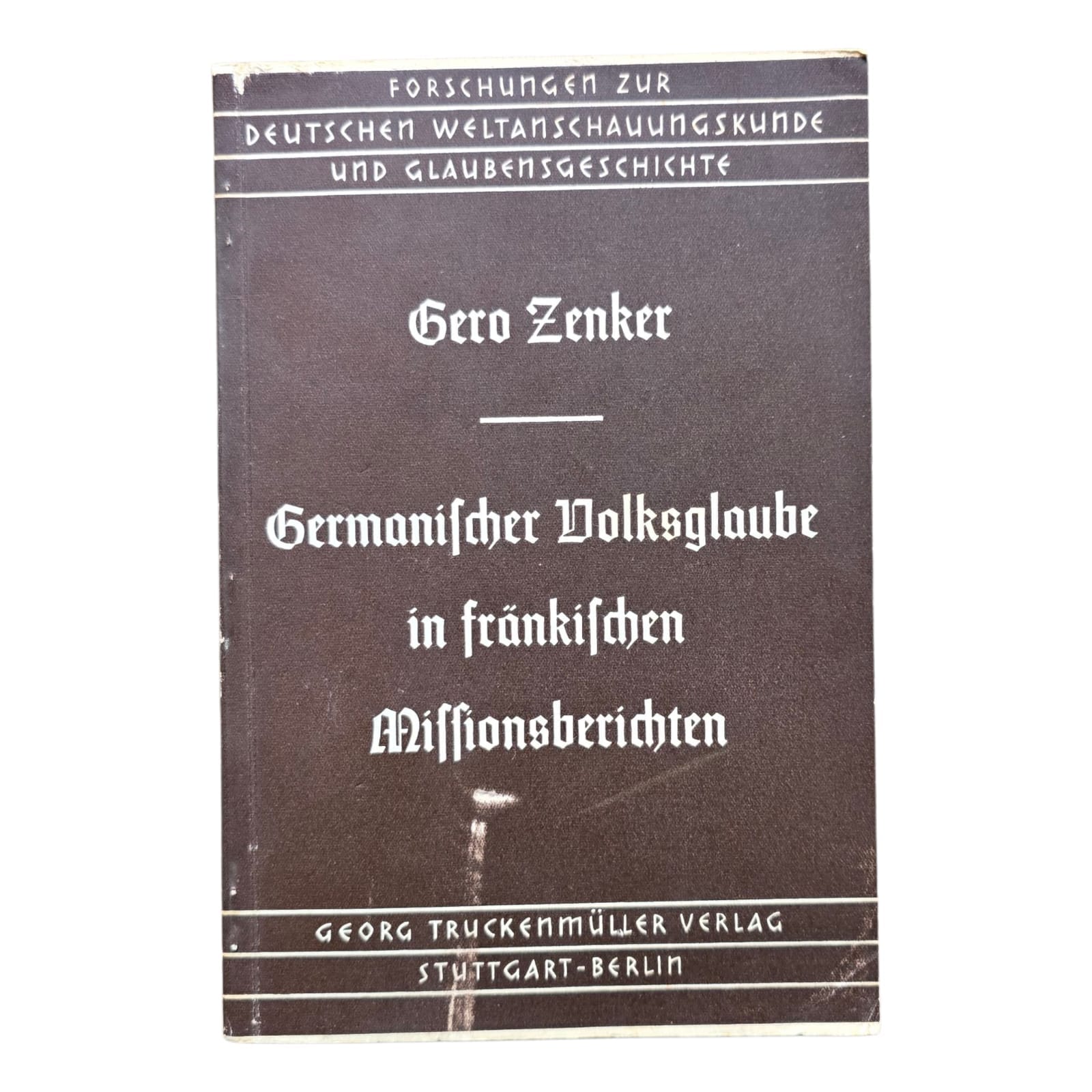 Item: “Germanischer Volksglaube in Fränkischen Missionsberichten” (1939) examines how the old Germanic folk beliefs are reflected in the reports of Frankish missionaries. The book shows which pagan customs, rituals, and ideas were preserved in these Christian sources, and how the clash between Christianity and Germanic traditions was described.