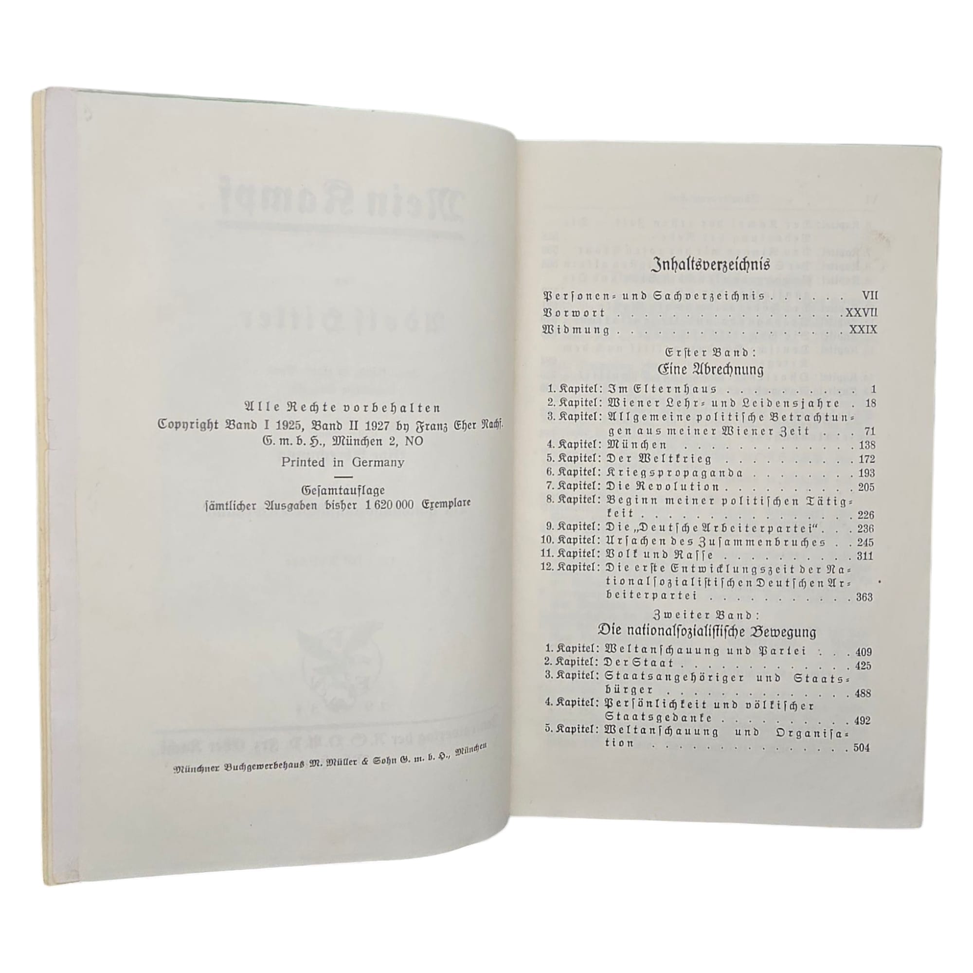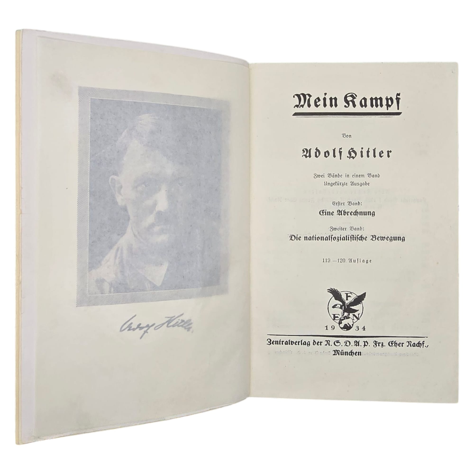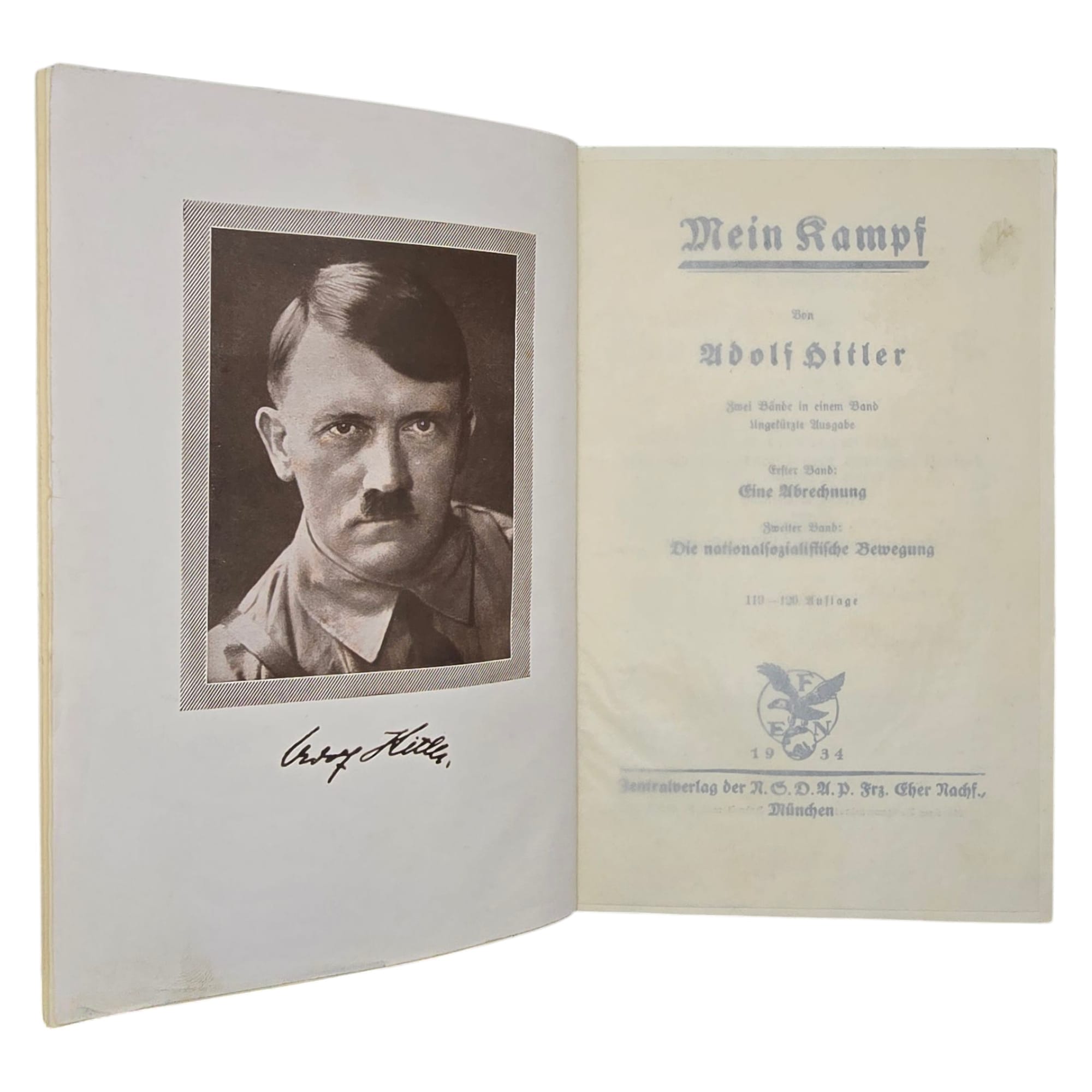 Item: Mein Kampf (“My Struggle”) is a book written by Adolf Hitler, first published in 1925. It is a mix of autobiography and political ideology, outlining Hitler’s anti-Semitic beliefs, German nationalism, and plans for expansion. The book gained significance after Hitler rose to power in 1933, becoming required reading in Nazi Germany. After World War II, it was banned in many countries. The copyright, held by Bavaria, expired in 2016, leading to new annotated editions that provide historical context to counter its propaganda.