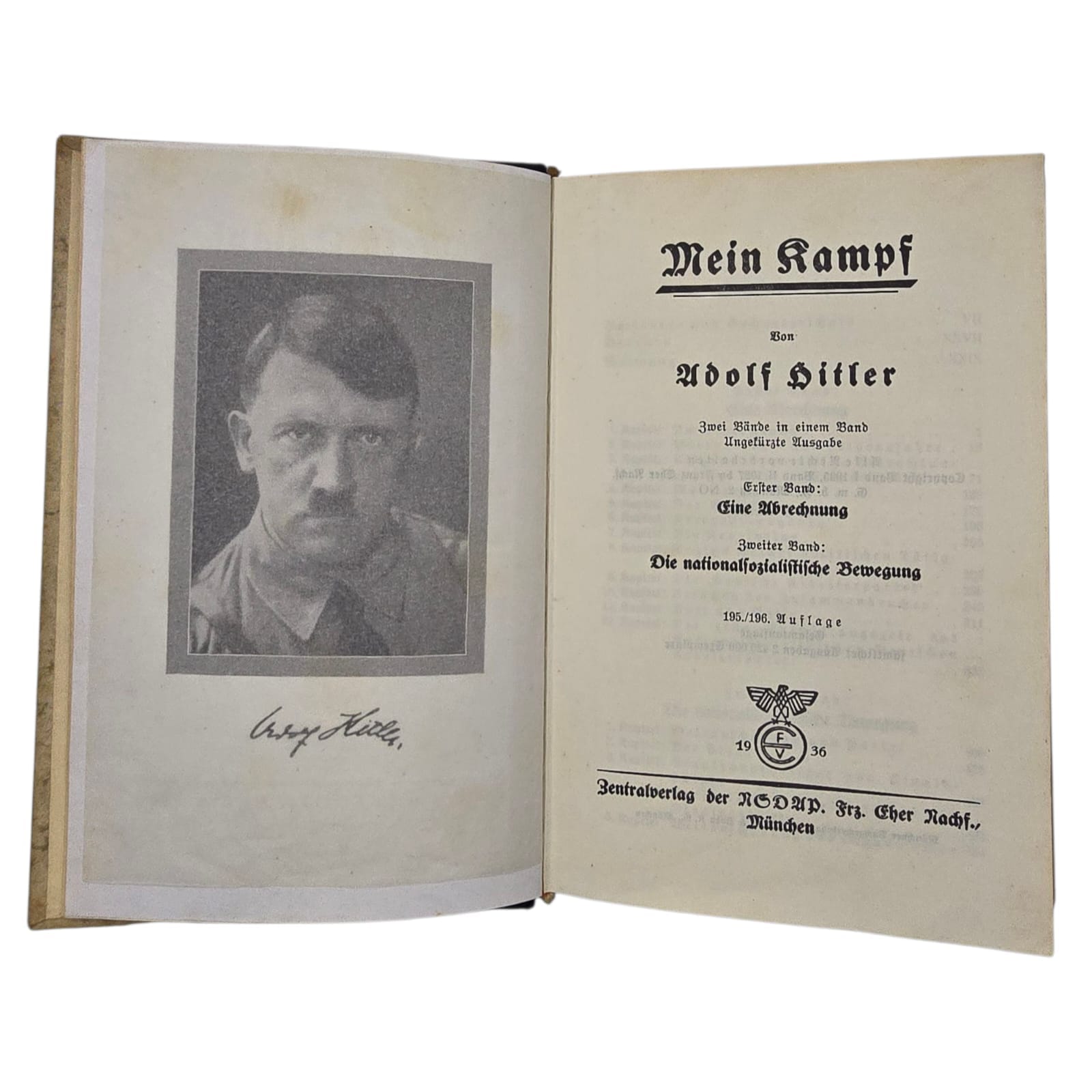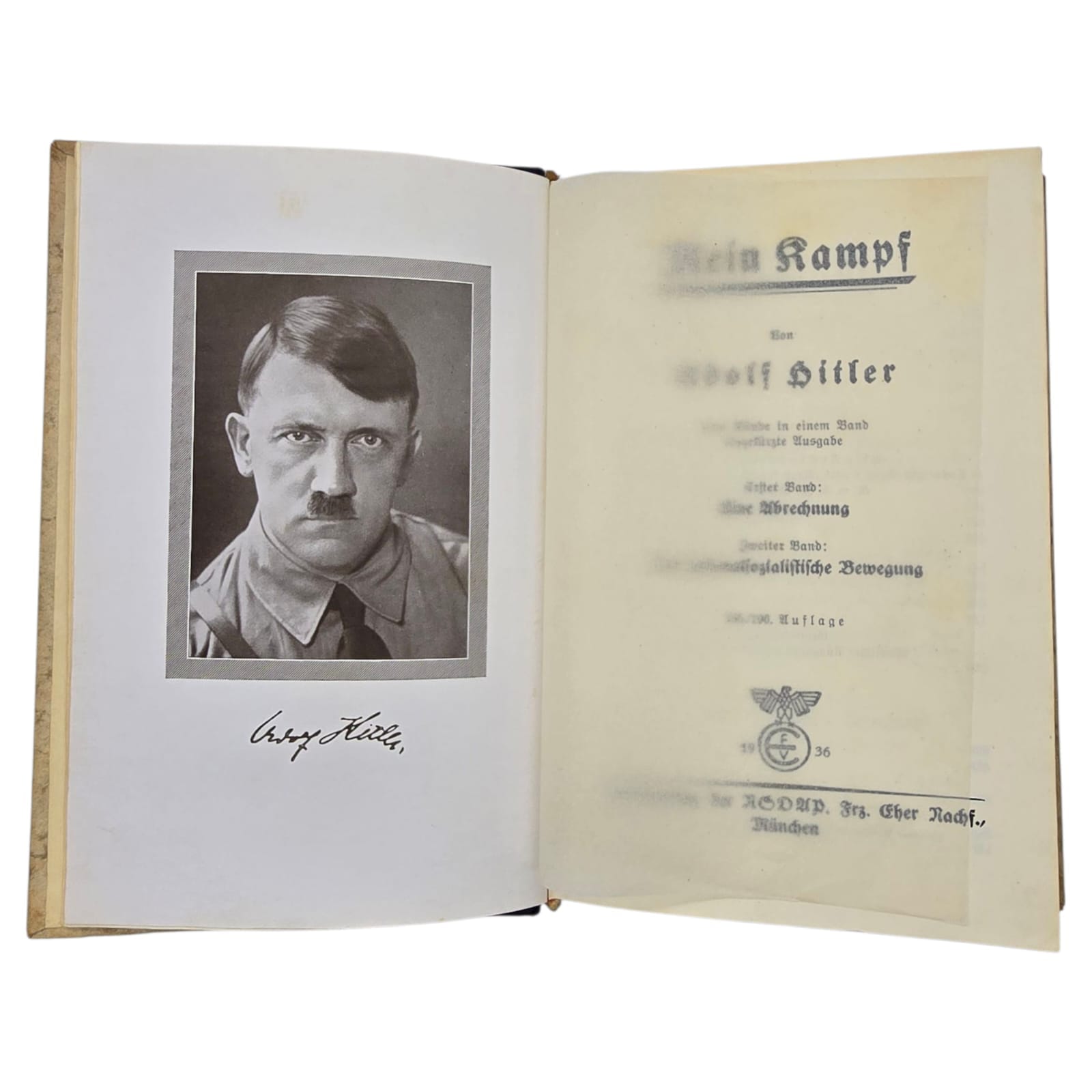 Item: Duitse Mein kampf Wedding-editie. Citaat staat voorin het boek met familienamen en een handtekening van de burgemeester van de stad. zeer speciale trouwuitgave die in de jaren van het Derde Rijk aan pasgetrouwde stellen is gegeven. Dit boek komt uit Boek komt uit 1937