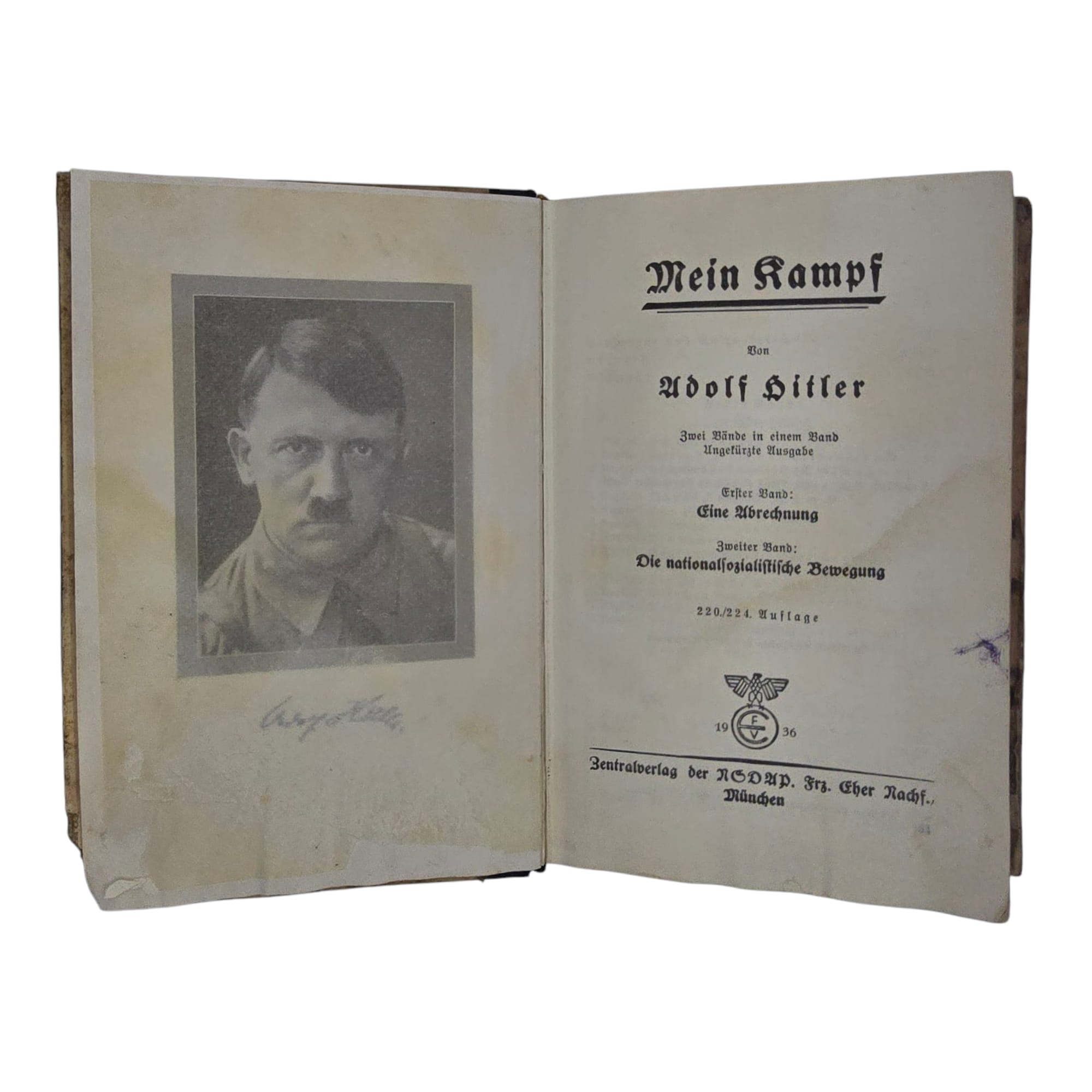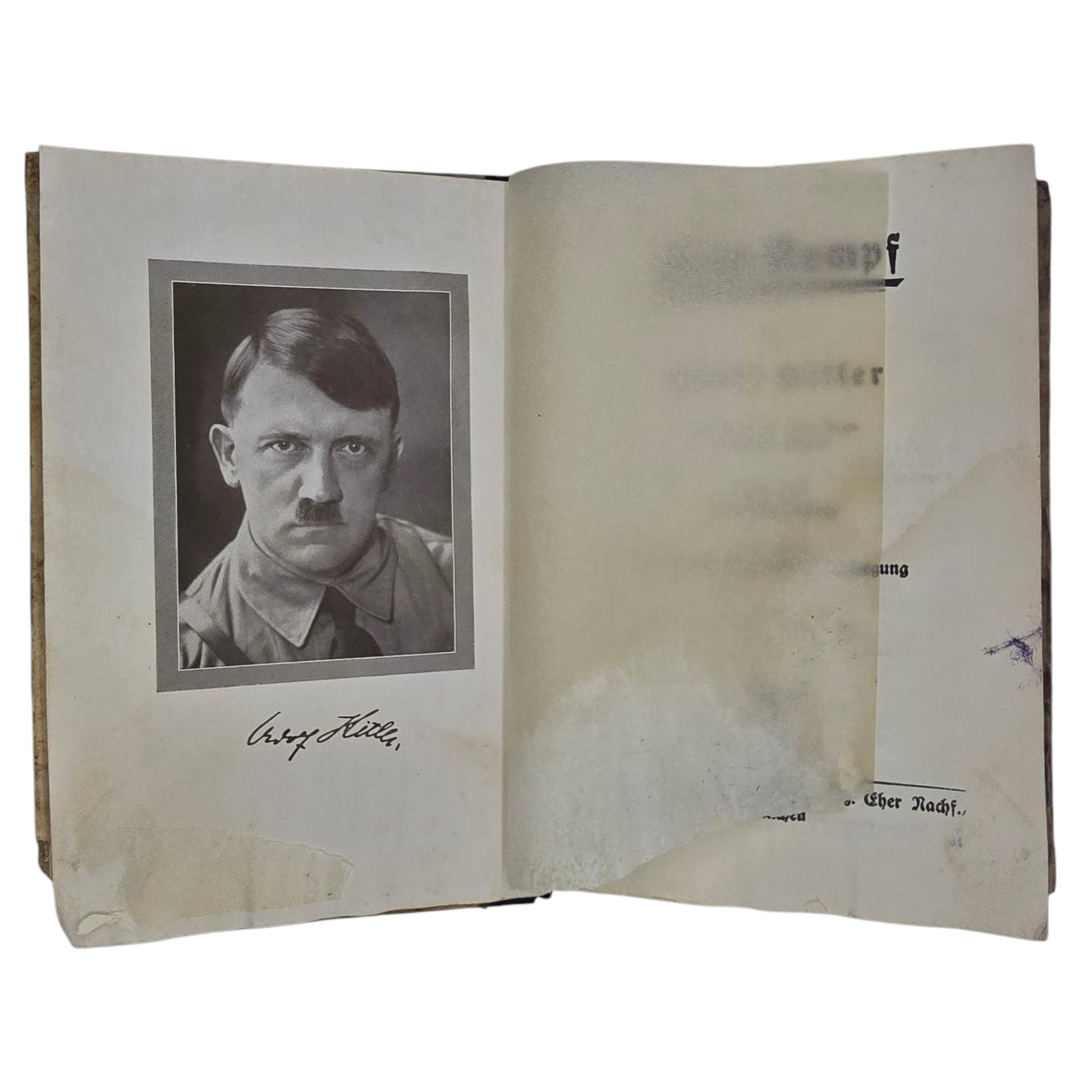 Item: Duitse Mein kampf Wedding-editie. Citaat staat voorin het boek met familienamen en een handtekening van de burgemeester van de stad. zeer speciale trouwuitgave die in de jaren van het Derde Rijk aan pasgetrouwde stellen is gegeven. Dit boek komt uit Boek komt uit 1937