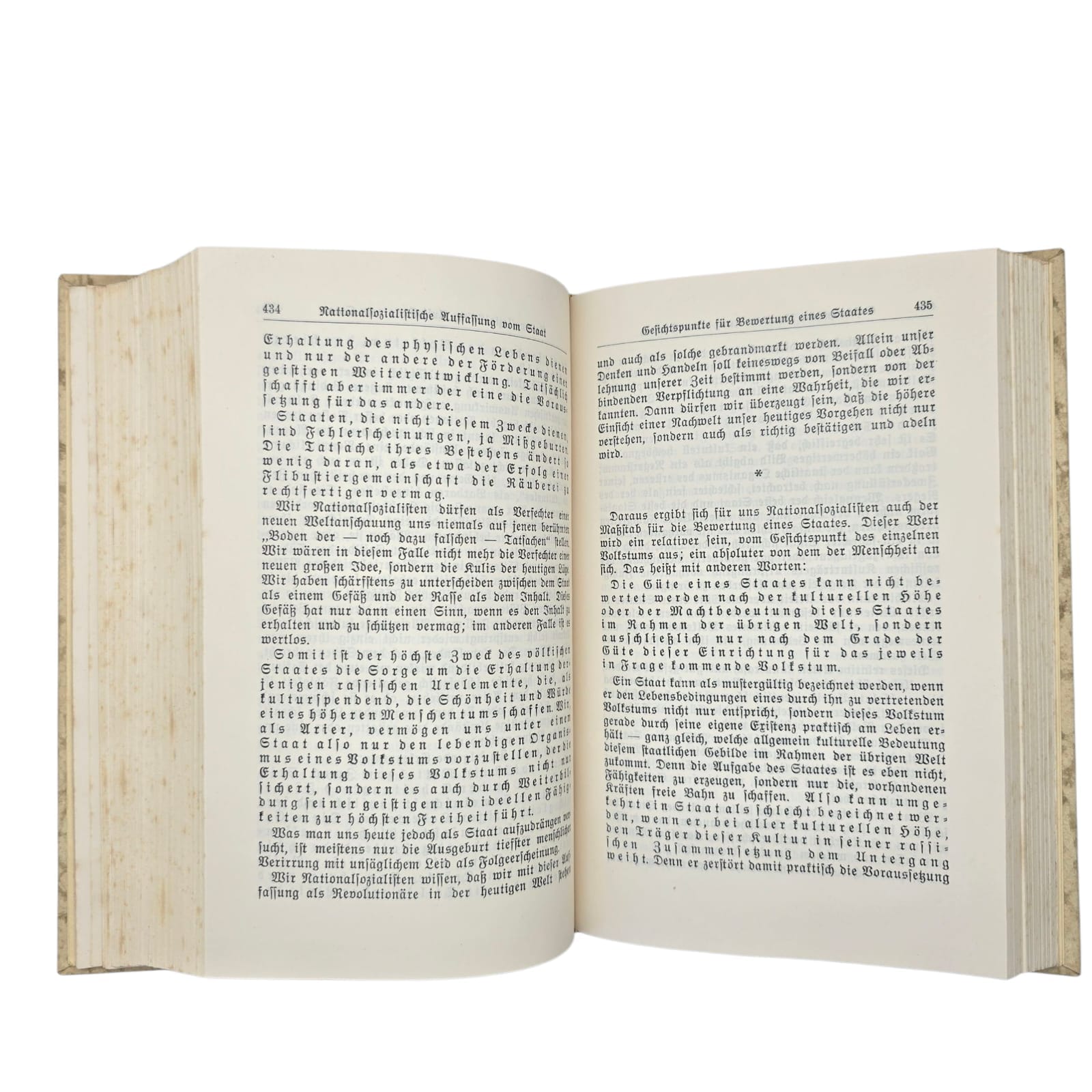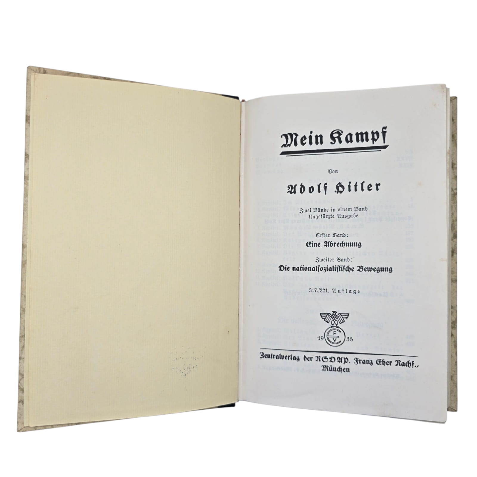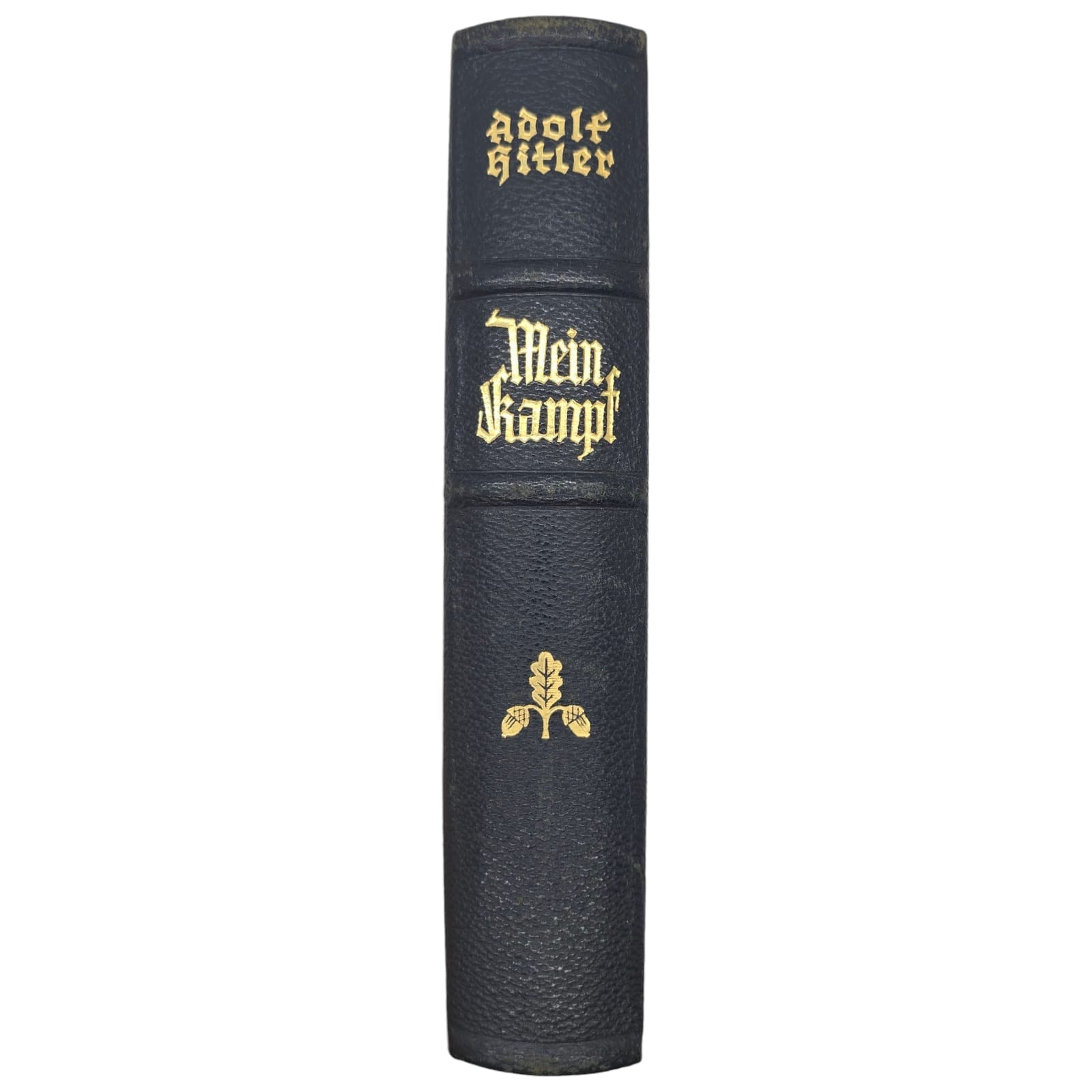 Item: Duitse Mein kampf Wedding-editie. Citaat staat voorin het boek met familienamen en een handtekening van de burgemeester van de stad. zeer speciale trouwuitgave die in de jaren van het Derde Rijk aan pasgetrouwde stellen is gegeven. Dit boek komt uit Boek komt uit 1938