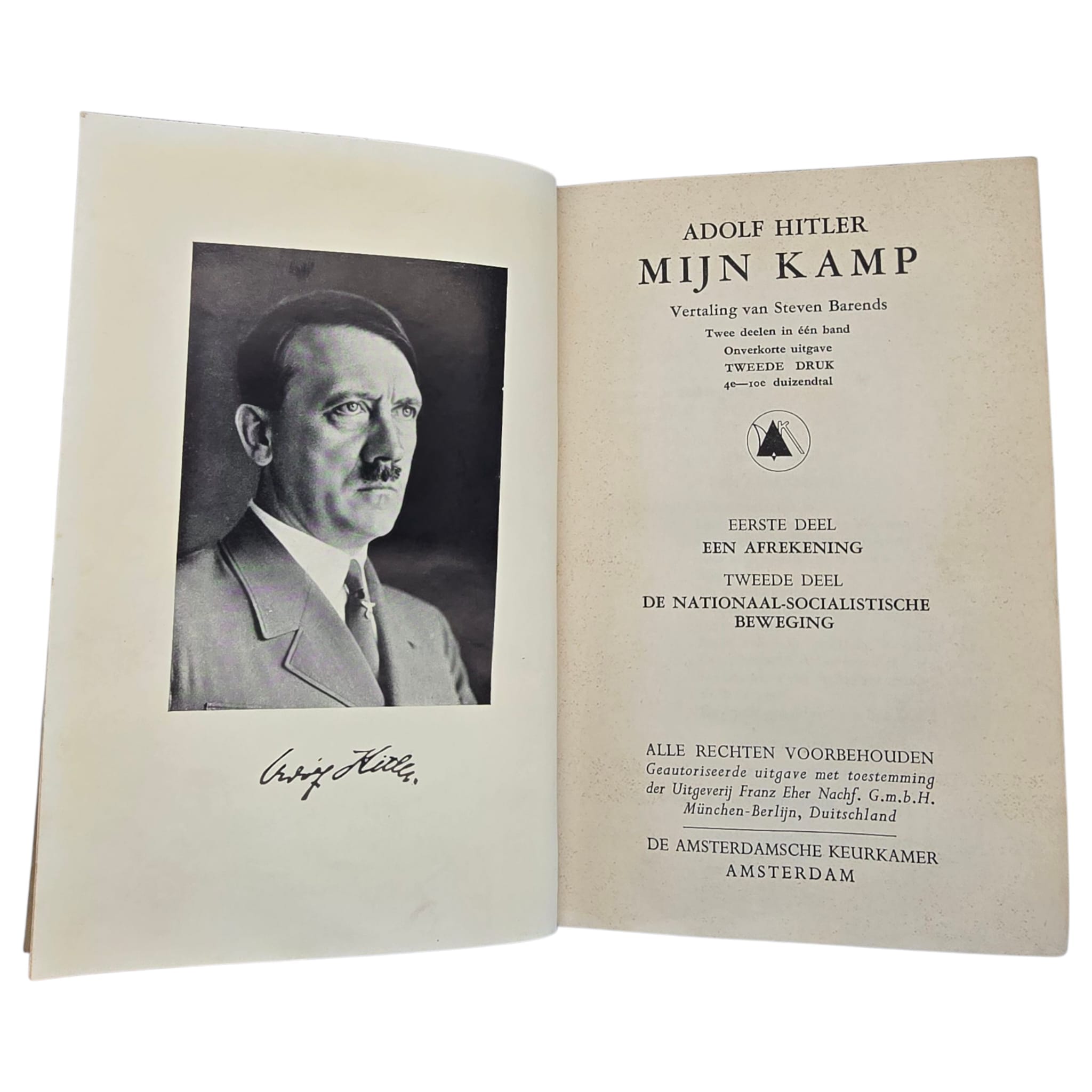 Mein Kampf, geschreven door Adolf Hitler in de jaren 1920, werd in de jaren dertig ook in Nederland uitgegeven, ondanks de groeiende maatschappelijke en politieke controverse rond het werk.