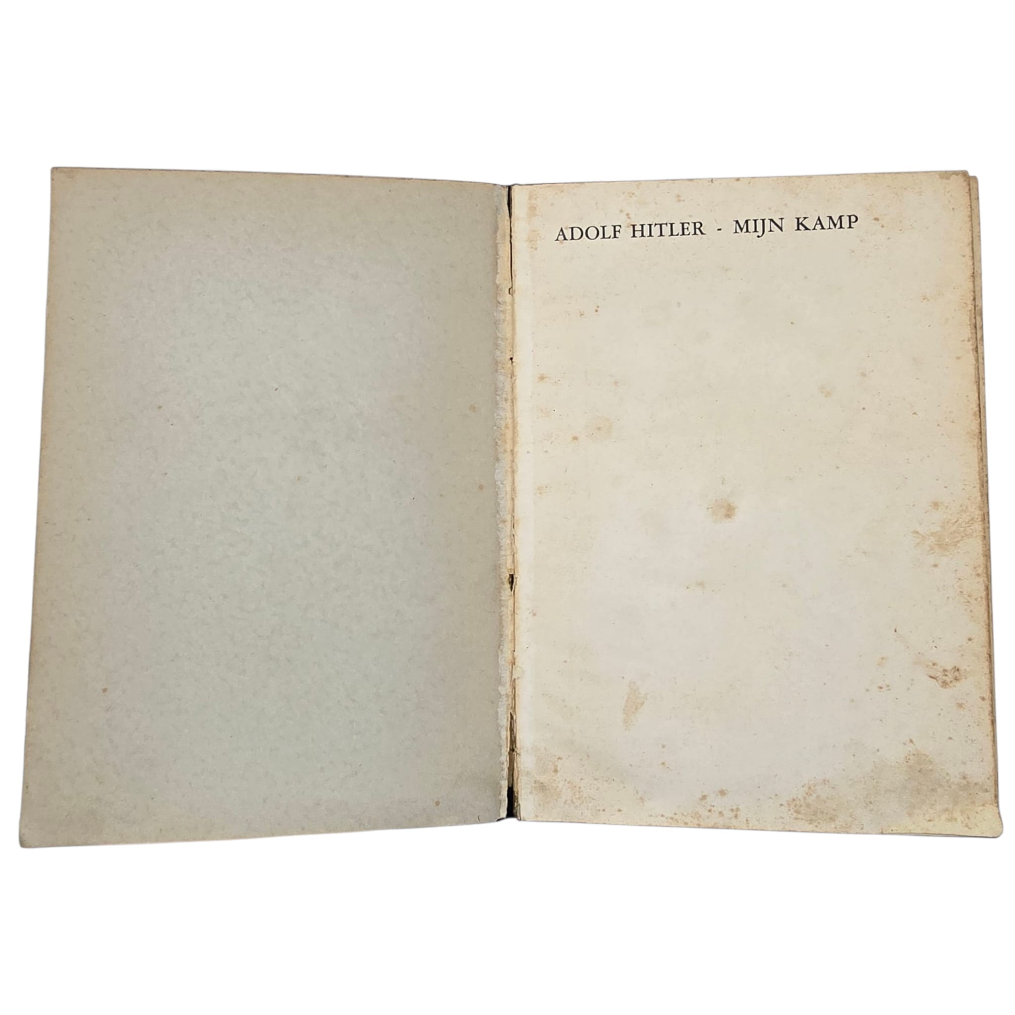 The original cover has been replaced with a plain one, lacking the swastika or Hitler’s portrait. This was commonly done by individuals who wanted to keep the book after the war but did not want it to stand out on the bookshelf. Libraries also often replaced the cover to conceal the recognizable and provocative original design, as the book was already controversial before and during World War II.