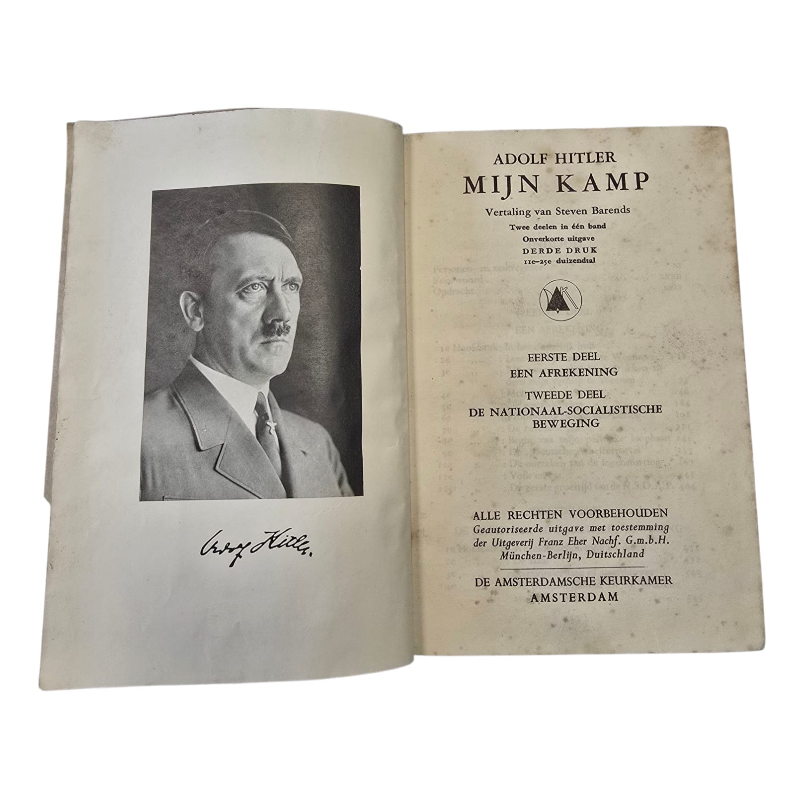 Mein Kampf, geschreven door Adolf Hitler in de jaren 1920, werd in de jaren dertig ook in Nederland uitgegeven, ondanks de groeiende maatschappelijke en politieke controverse rond het werk.