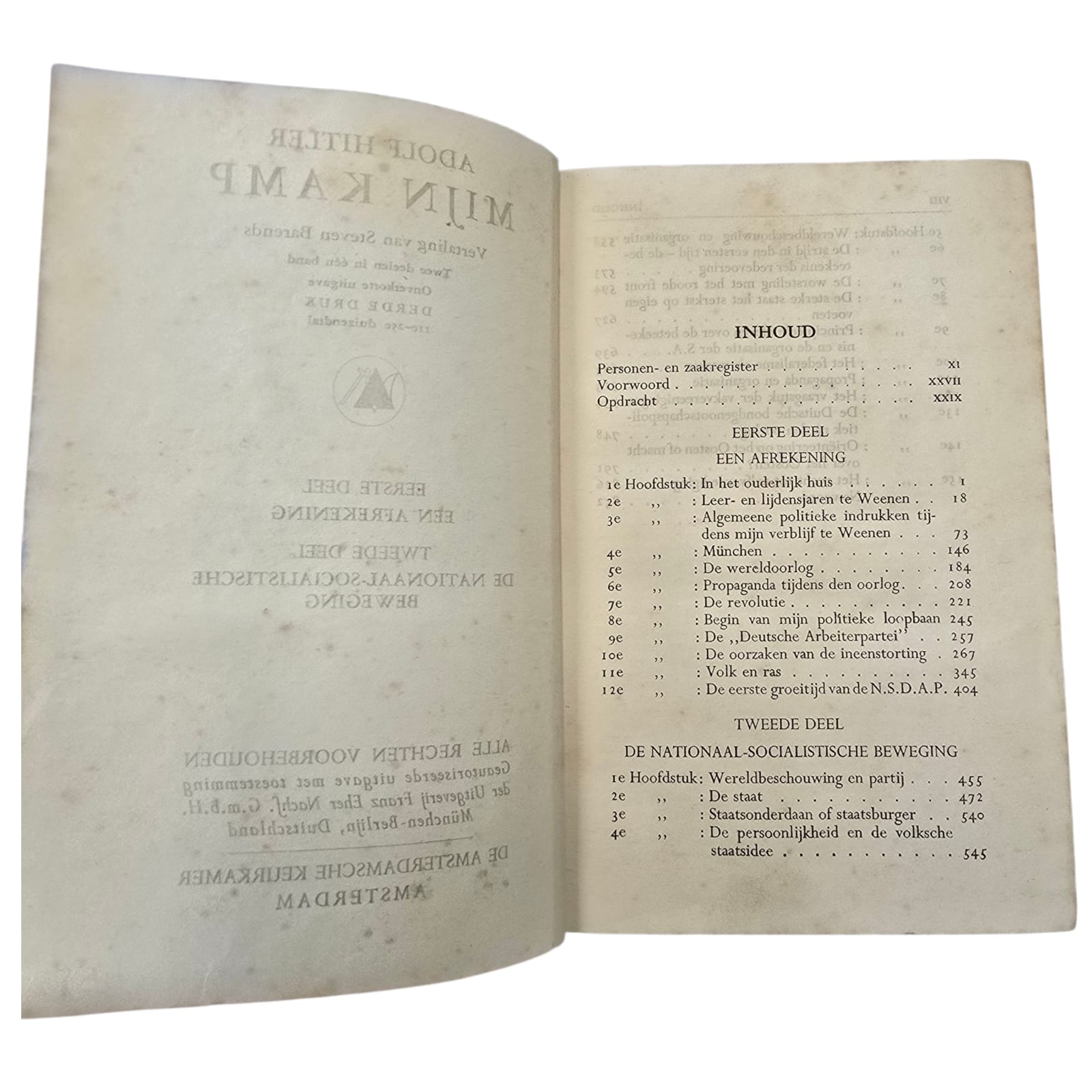 De eerste Nederlandse vertaling verscheen in 1939 en werd uitgegeven door De Amsterdamsche Keurkamer, een toenmalige uitgeverij die op commerciële basis boeken uitgaf – ook buitenlandse en politieke werken. De vertaling, gedaan door Steven Barends, was bedoeld voor een breed publiek en werd vaak gepresenteerd als “belangrijke literatuur om de vijand te begrijpen”, zeker in een tijd waarin het nationaalsocialisme in Europa opmars maakte.