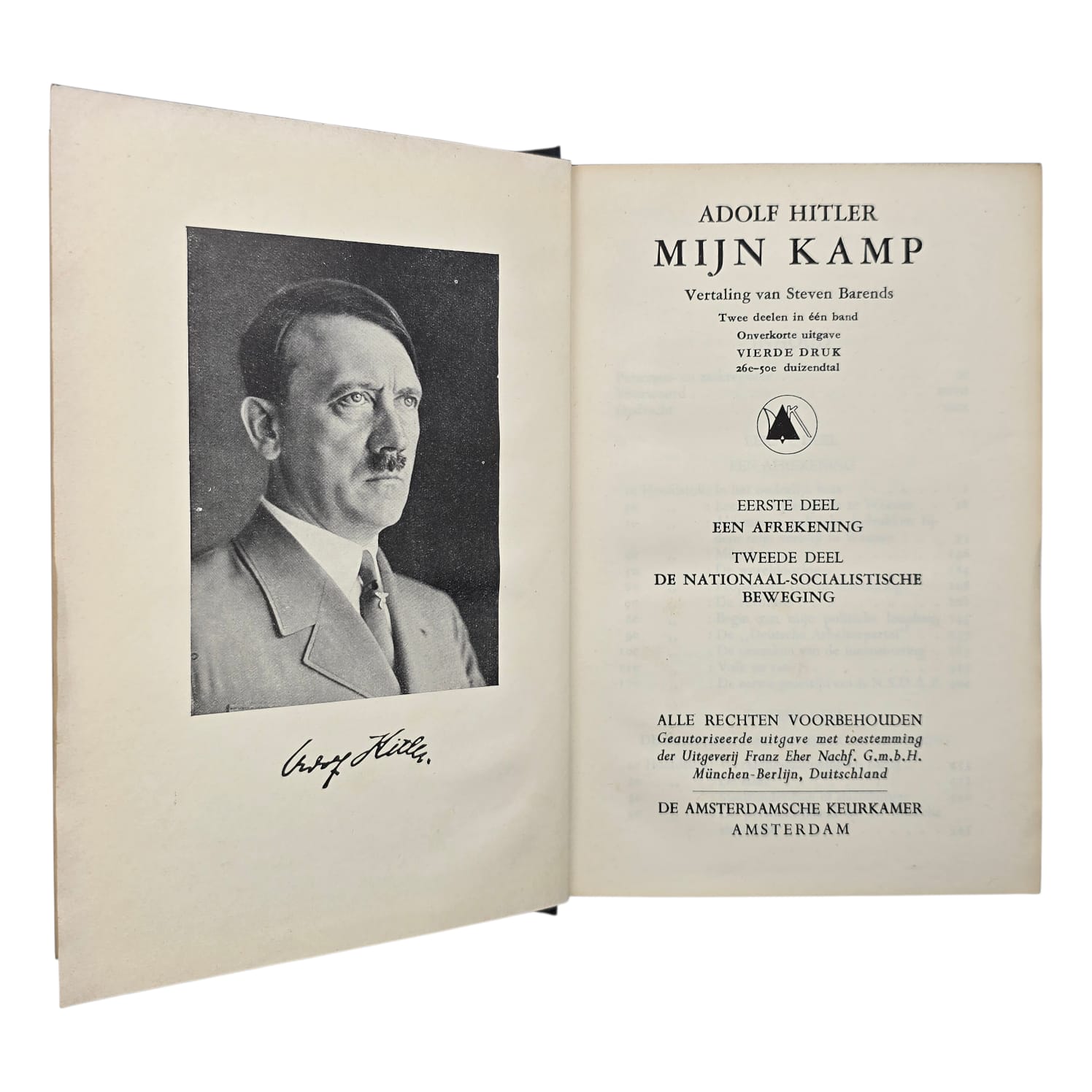 This is the fourth edition of Mein Kampf, published by the Dutch publisher De Amsterdamsche Keurkamer.