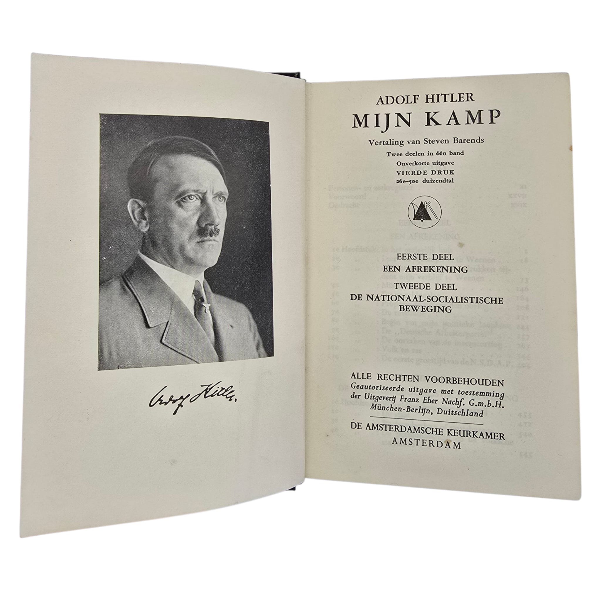 Dit betreft de vierde druk van Mein Kampf, uitgegeven door de Nederlandse uitgever De Amsterdamsche Keurkamer.