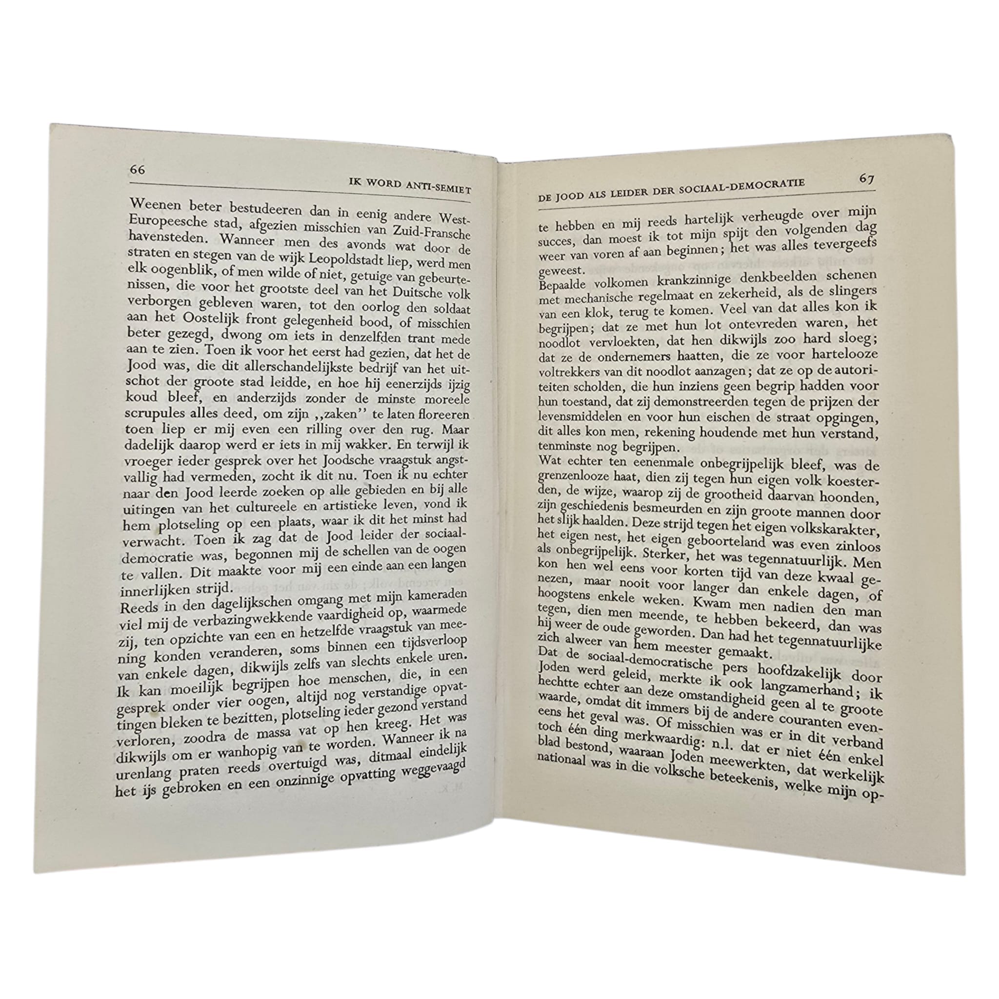 Mein Kampf, geschreven door Adolf Hitler in de jaren 1920, werd in de jaren dertig ook in Nederland uitgegeven, ondanks de groeiende maatschappelijke en politieke controverse rond het werk.