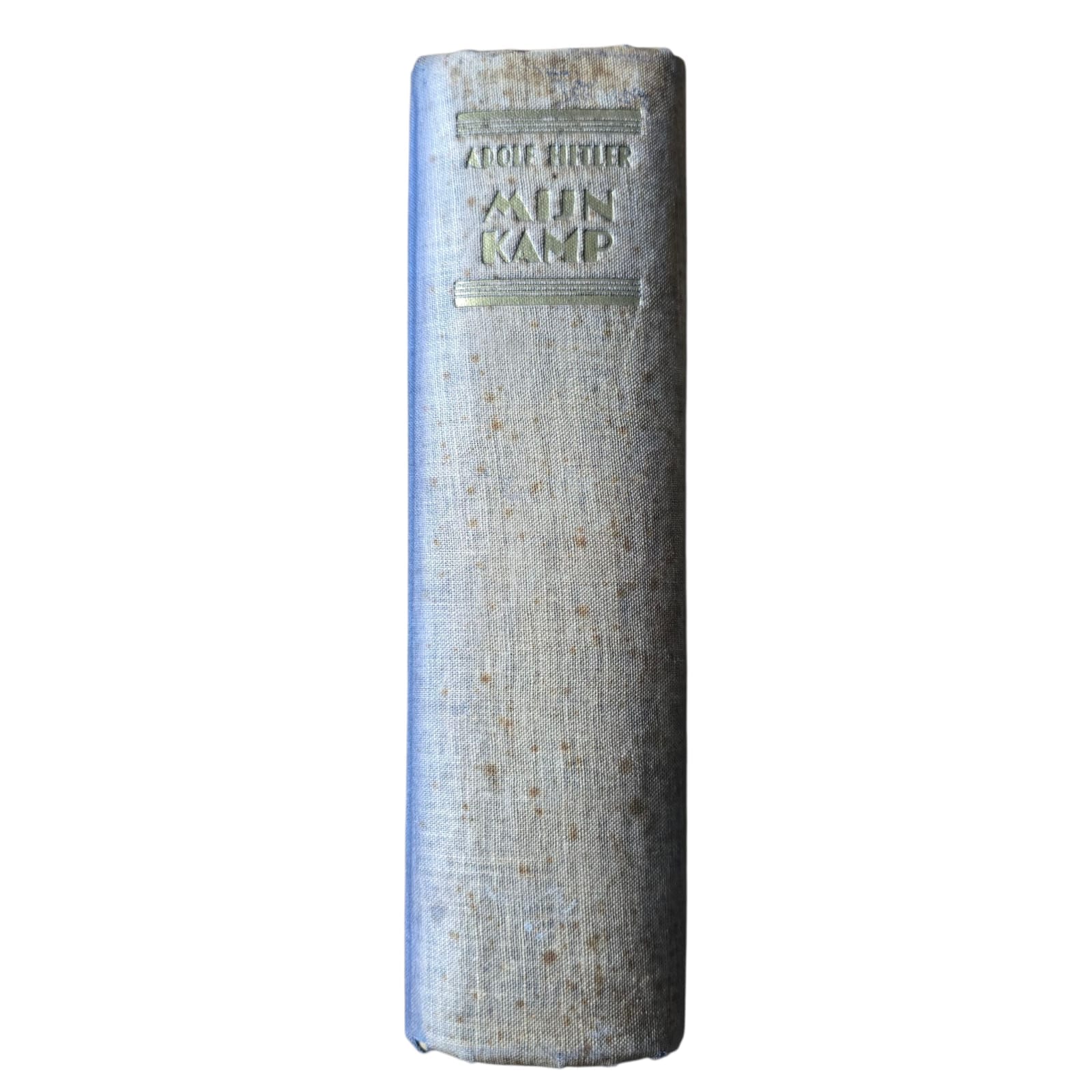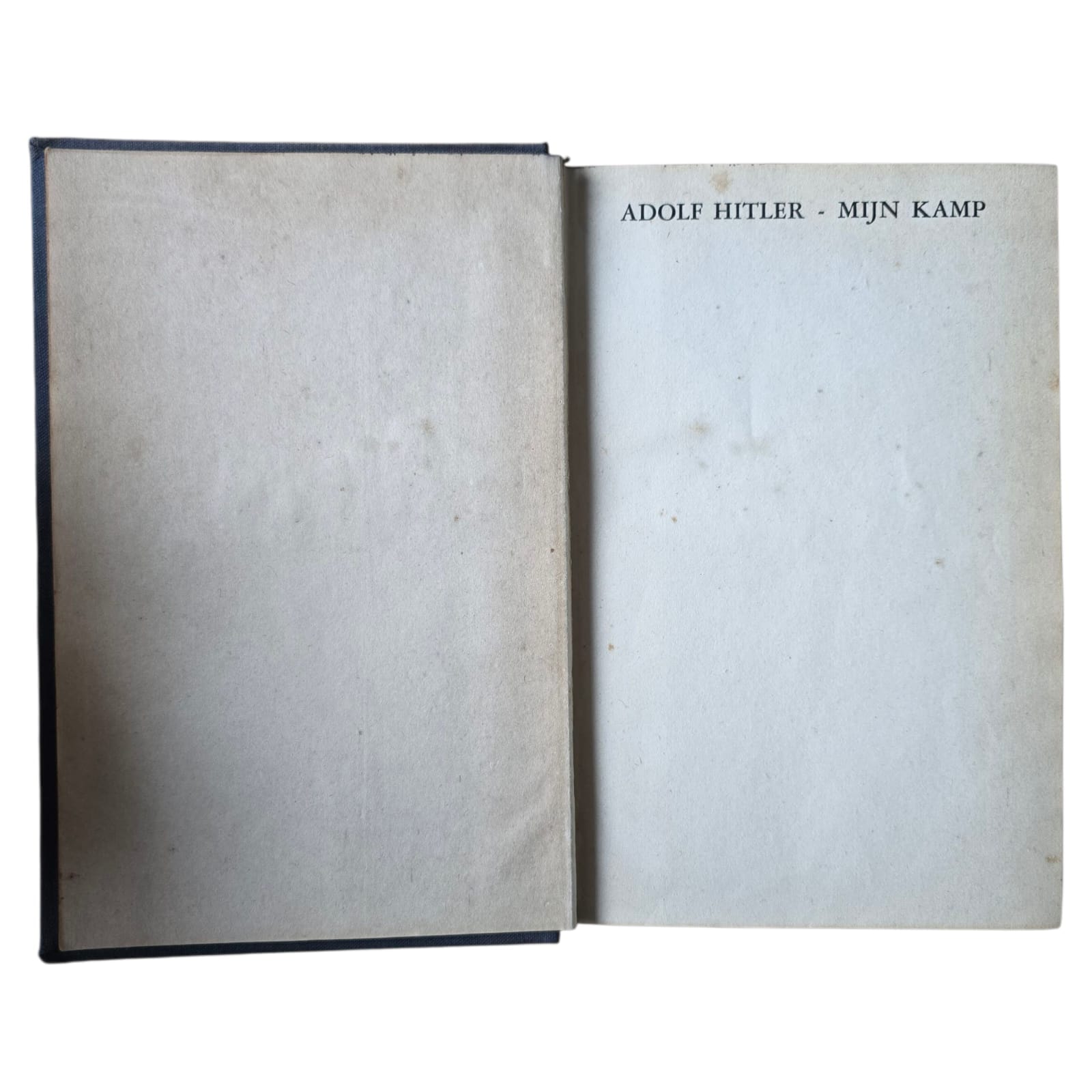 The cover shows signs of use. The golden eagle on the front is still clearly visible. The spine still features the original gold lettering with the text: Adolf Hitler – Mijn Kamp.