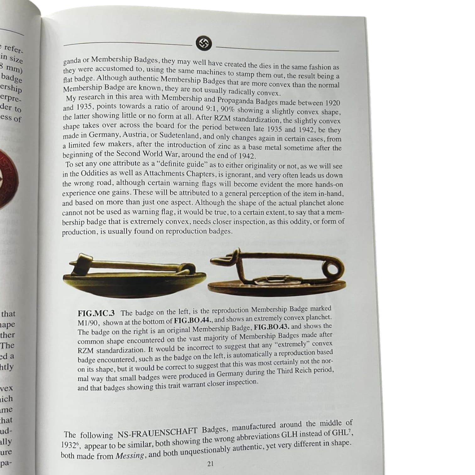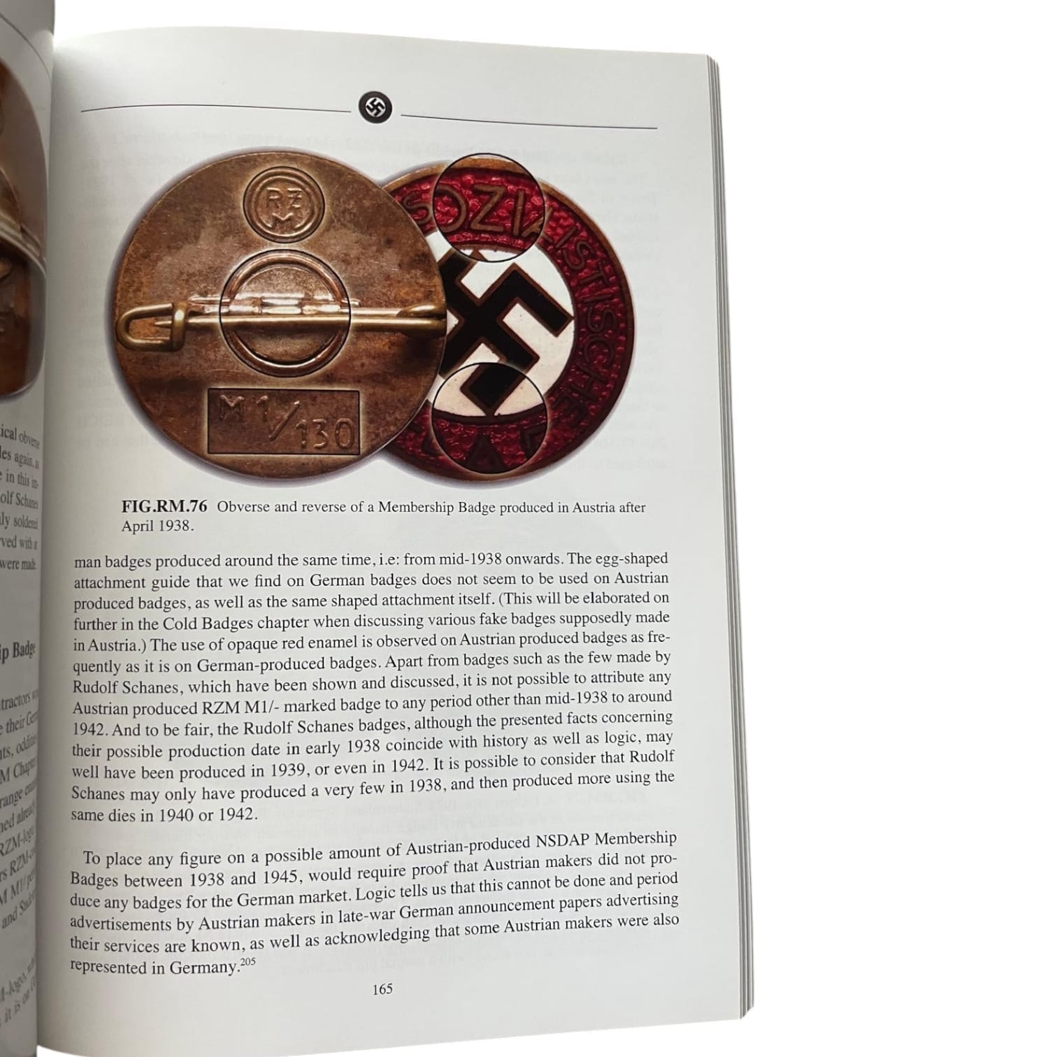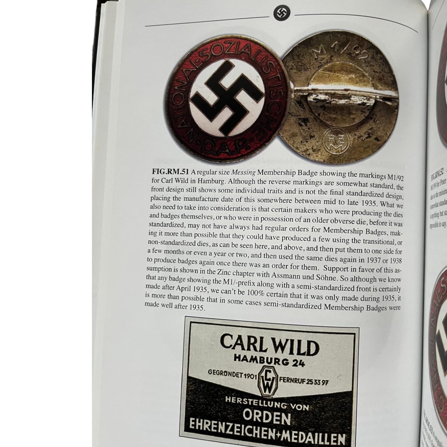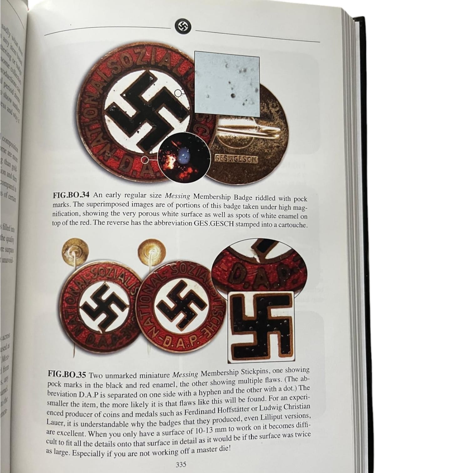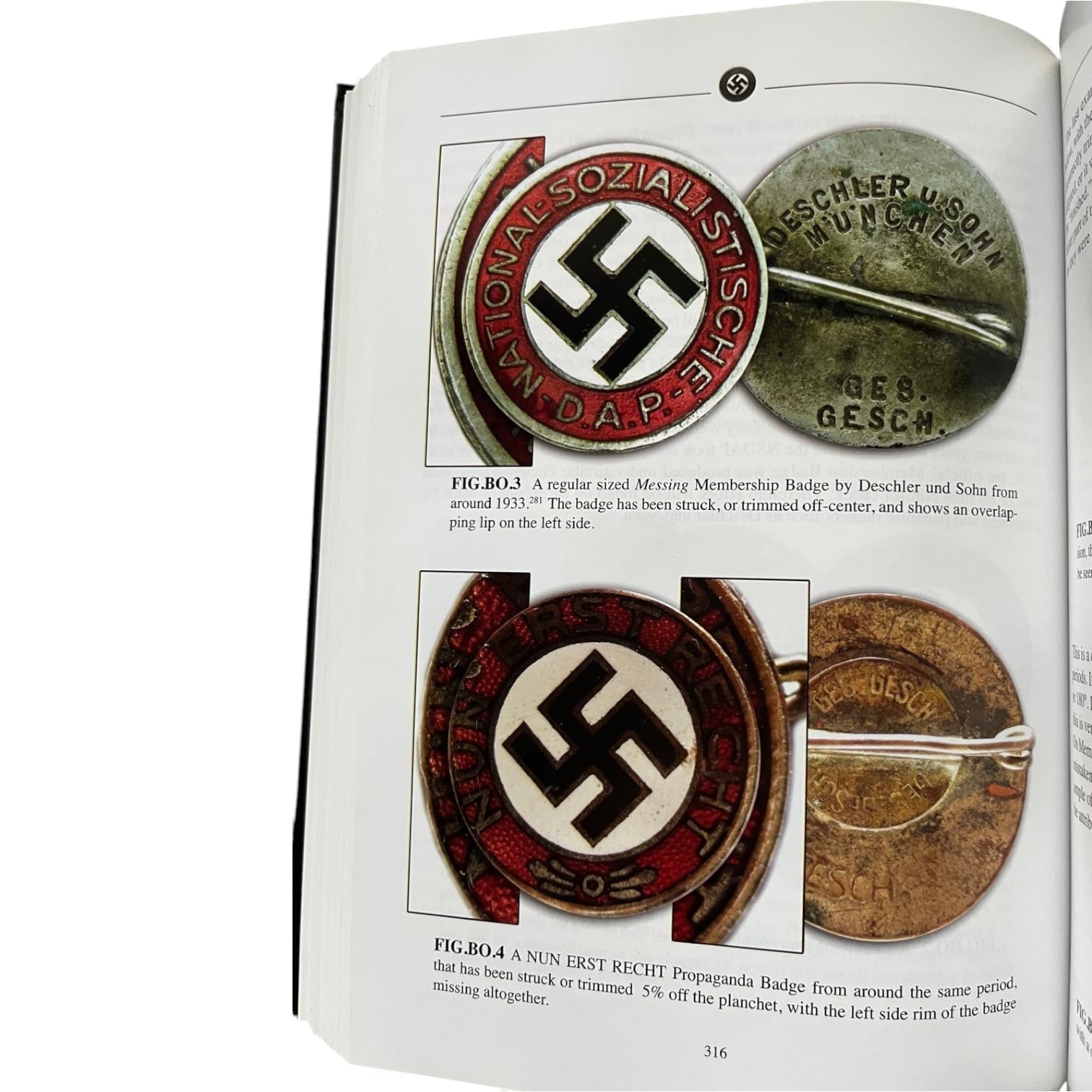Item: The Party Badge by Jo Rivett, hardcover book,. On over 500 pages and more than 2000 color photographs the author Jo Rivett presents the history, the designs, the manufacturing, and the intrinsic details of the Party Badge of the NSDAP. Never before has this topic been covered in such depth and it most likely never will be again. A chapter about the Golden Party Badge rounds off this scientific and provocative book.